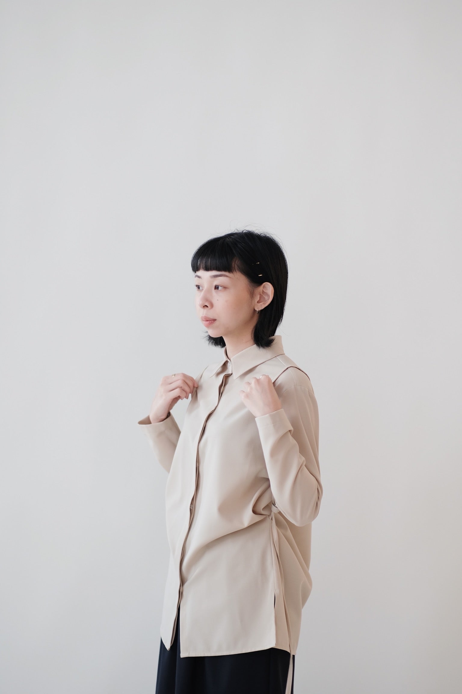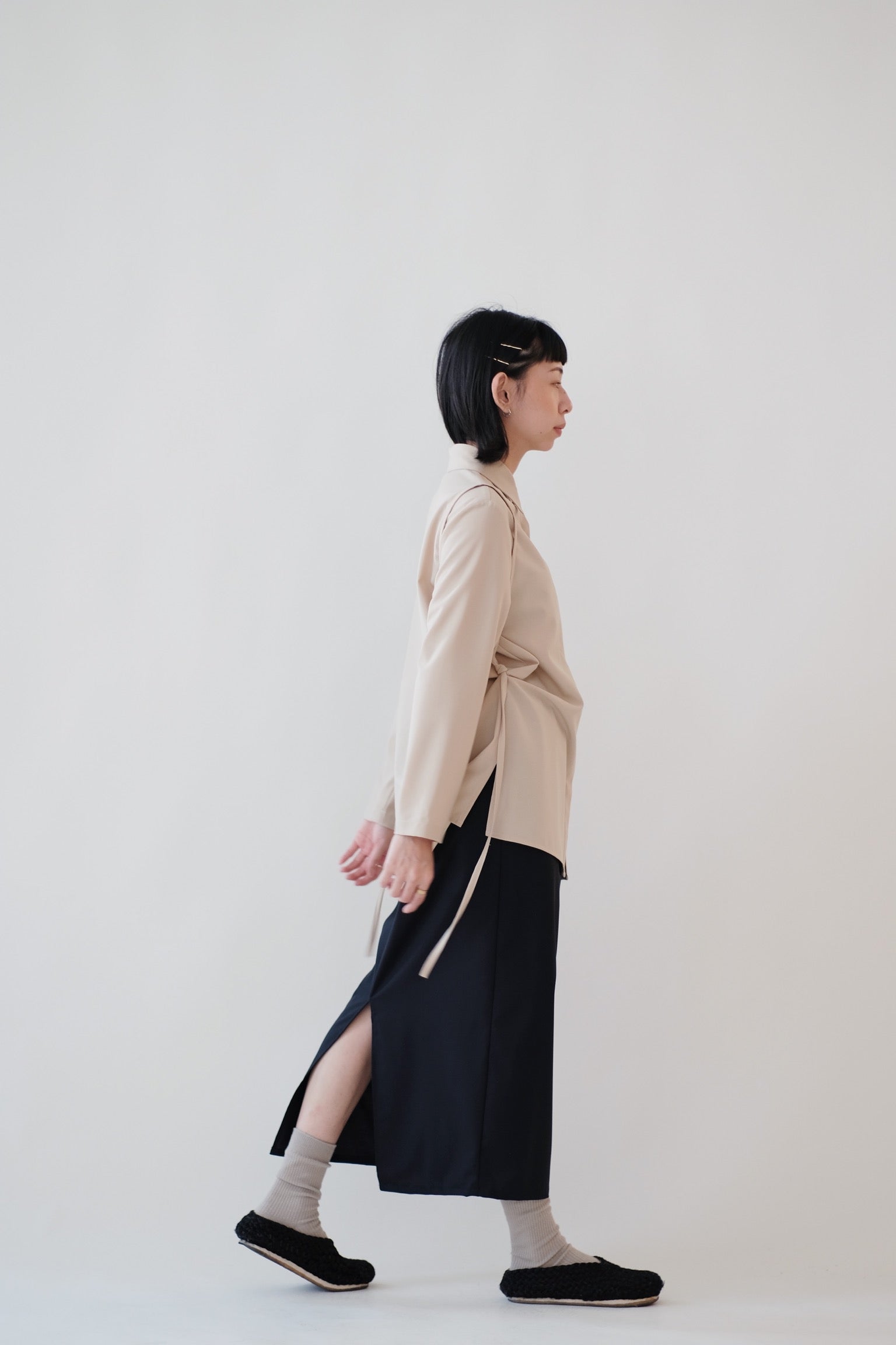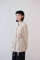 ・Cut to a straight relaxed silhouette with a pointed collar and a belted waist