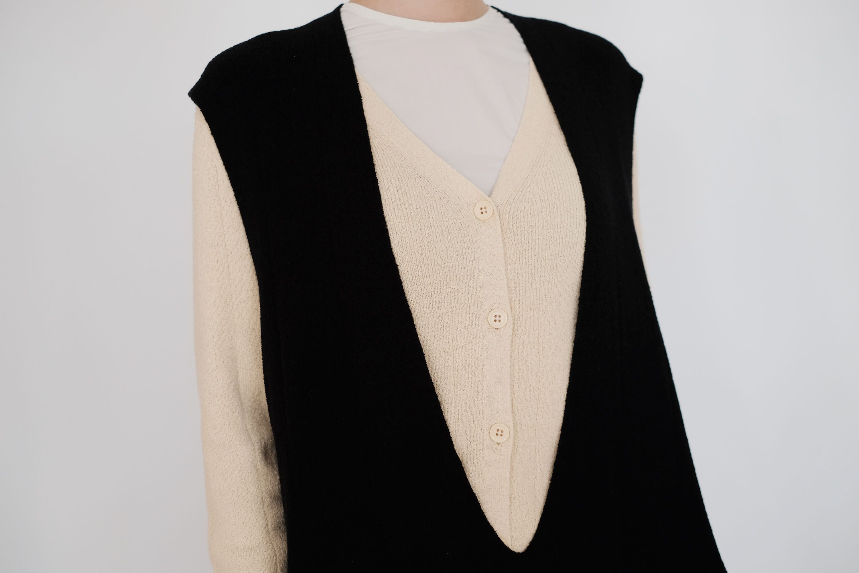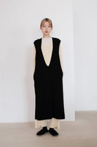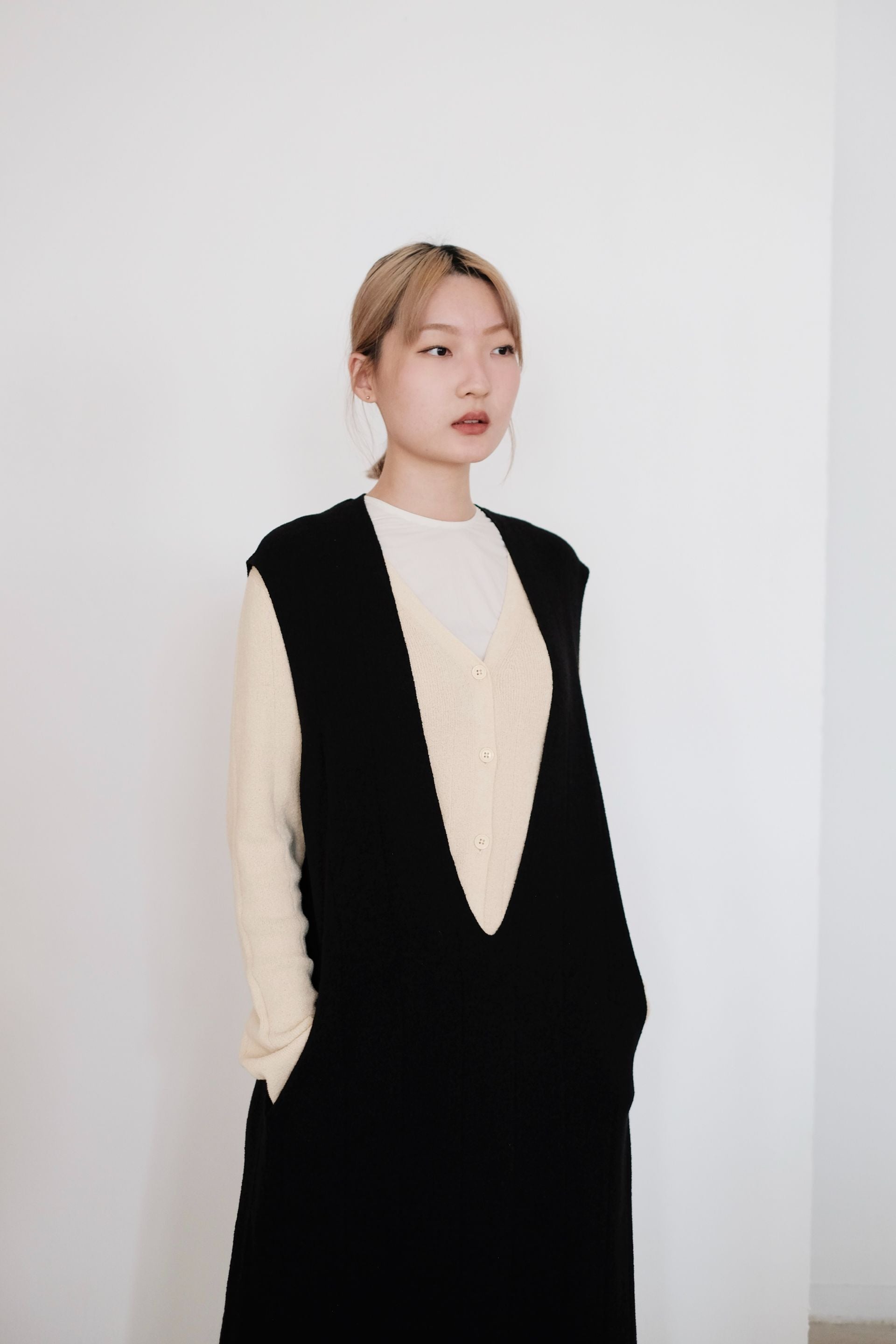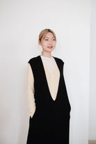 ・Shaped to a loose and straight silhouette features a plunging neckline