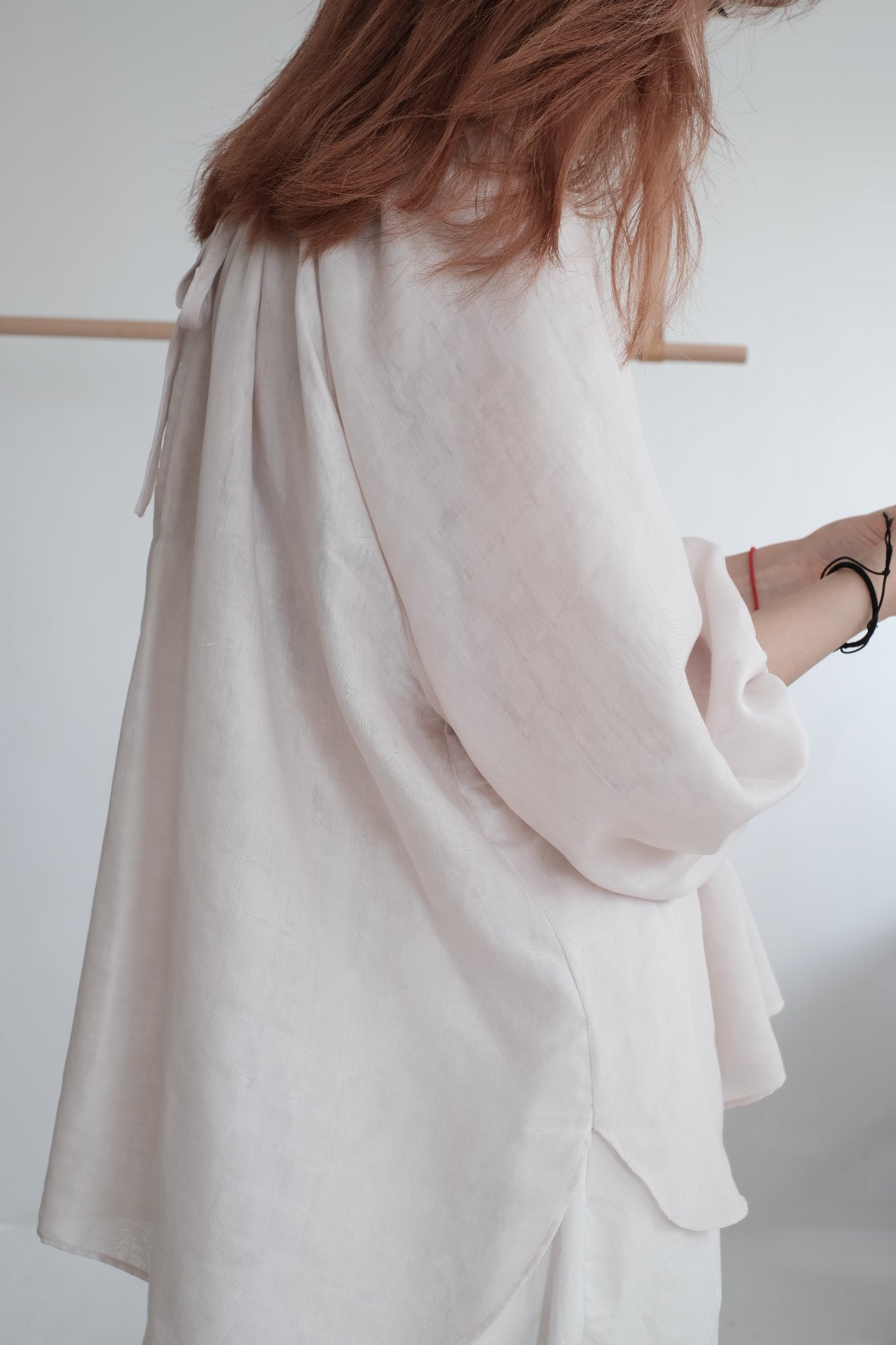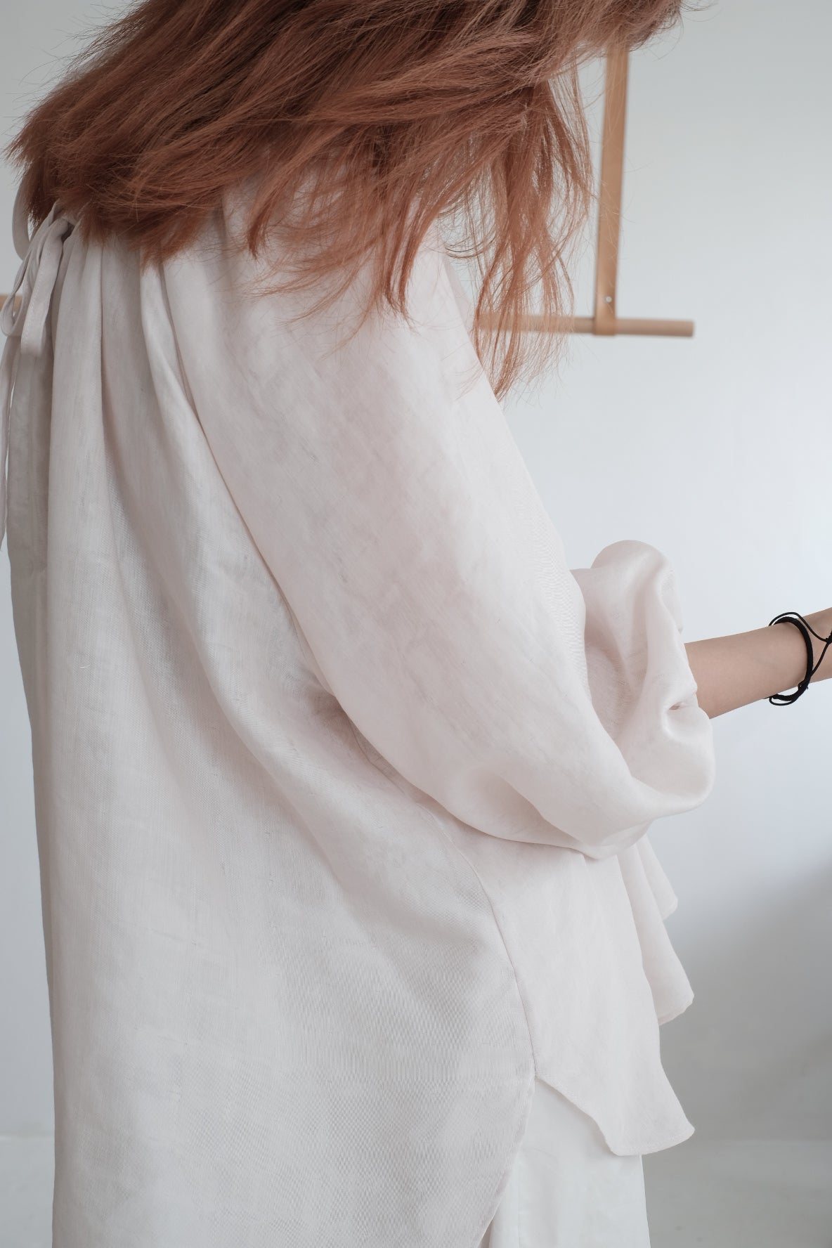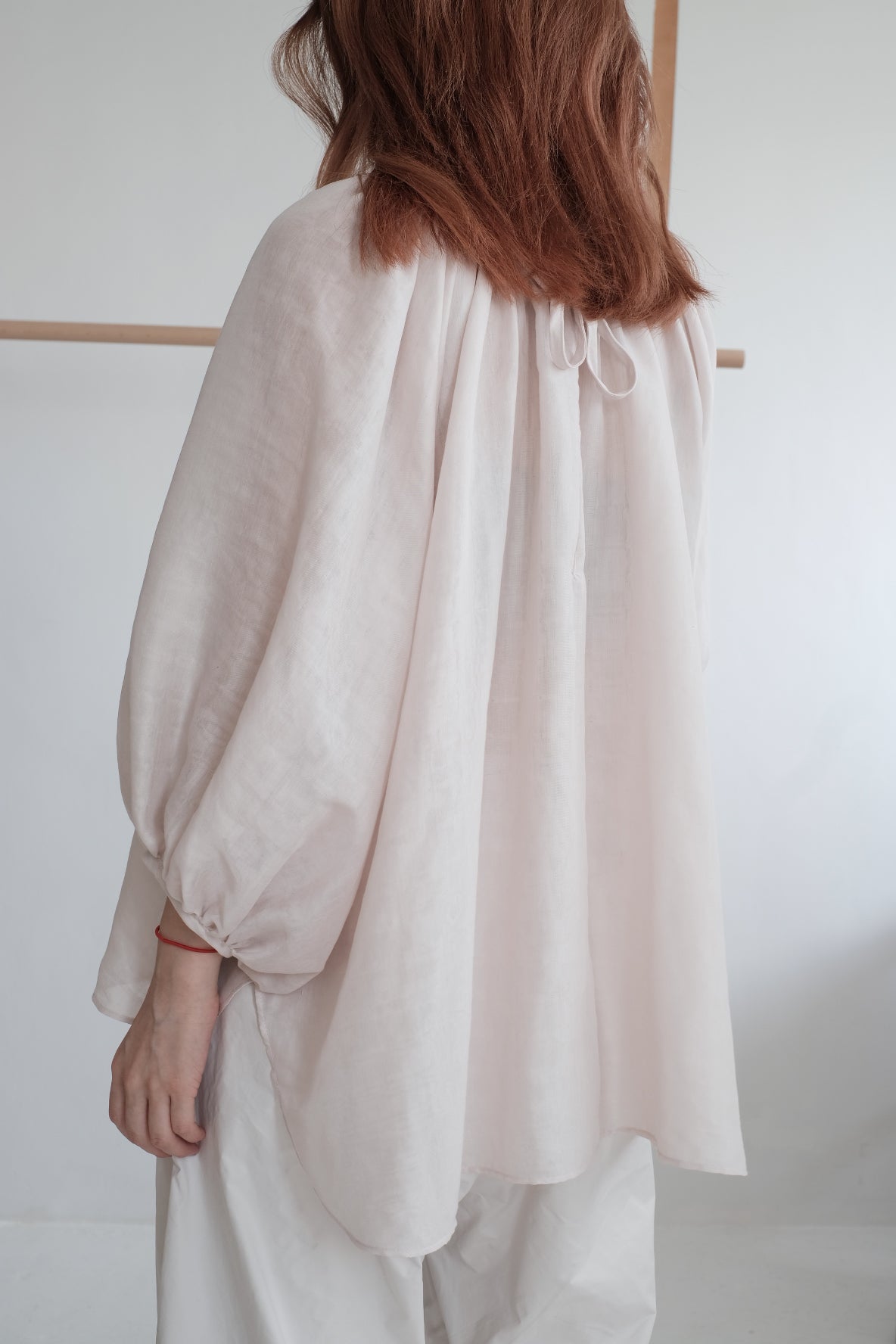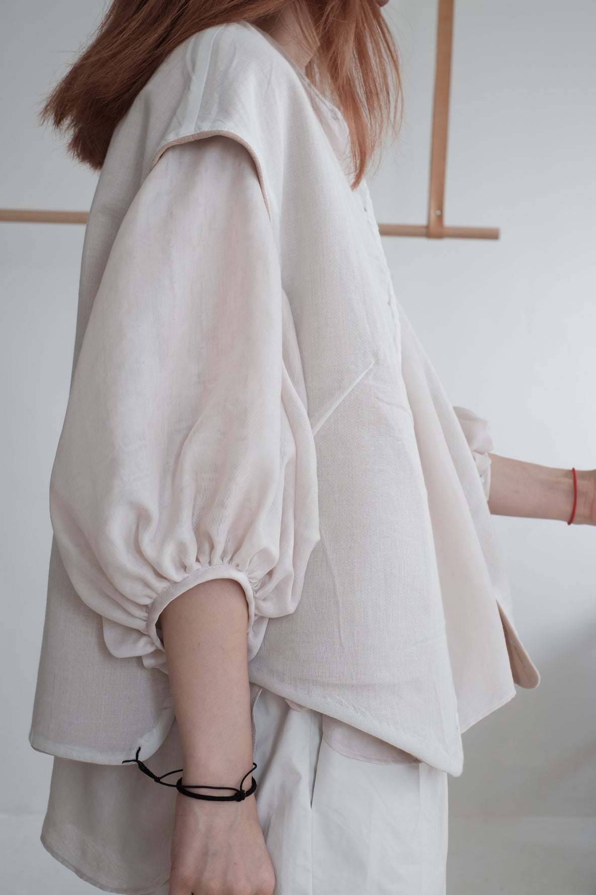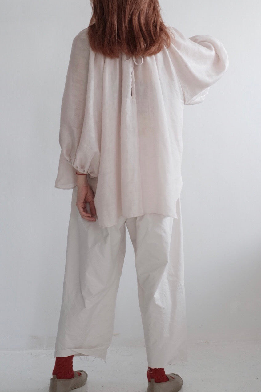 GAUZE GATHERED SLEEVES TOP