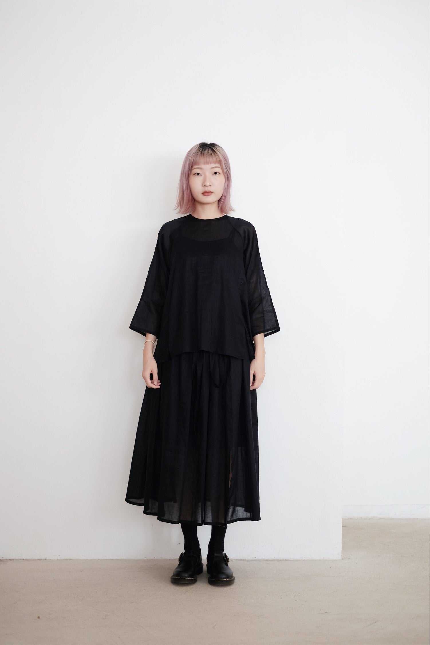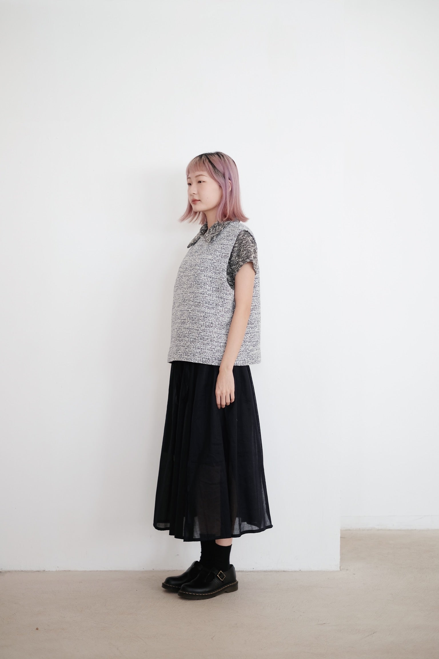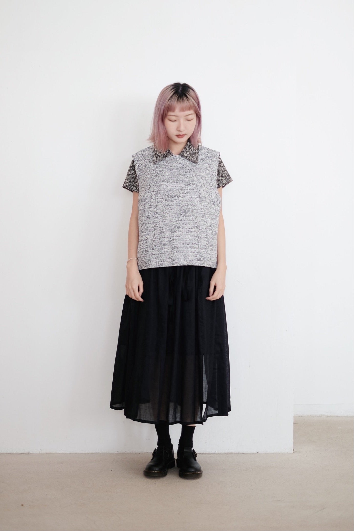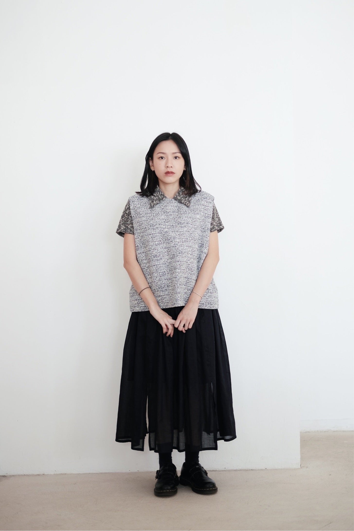 以四塊布料拼接而成的裙子