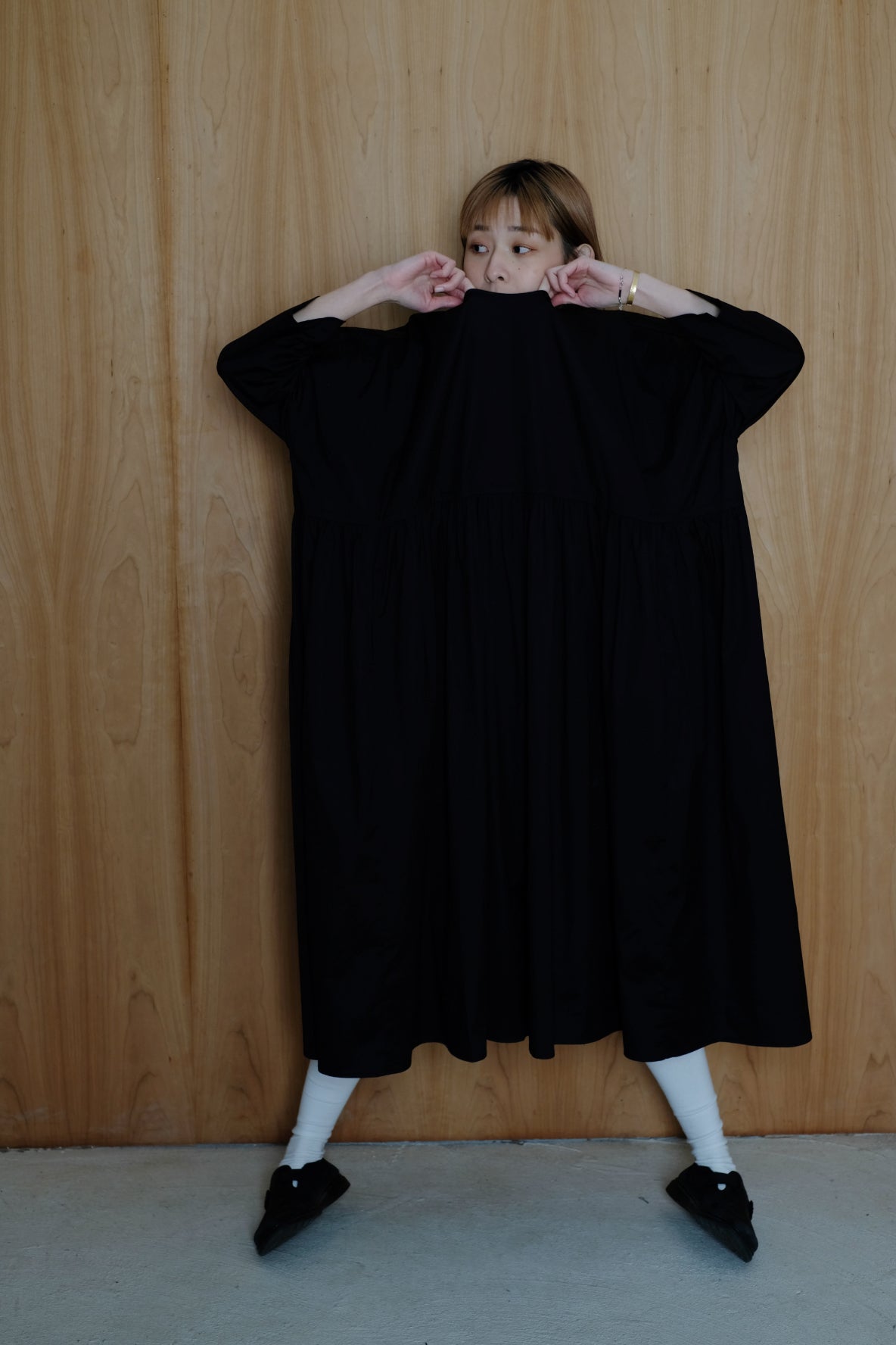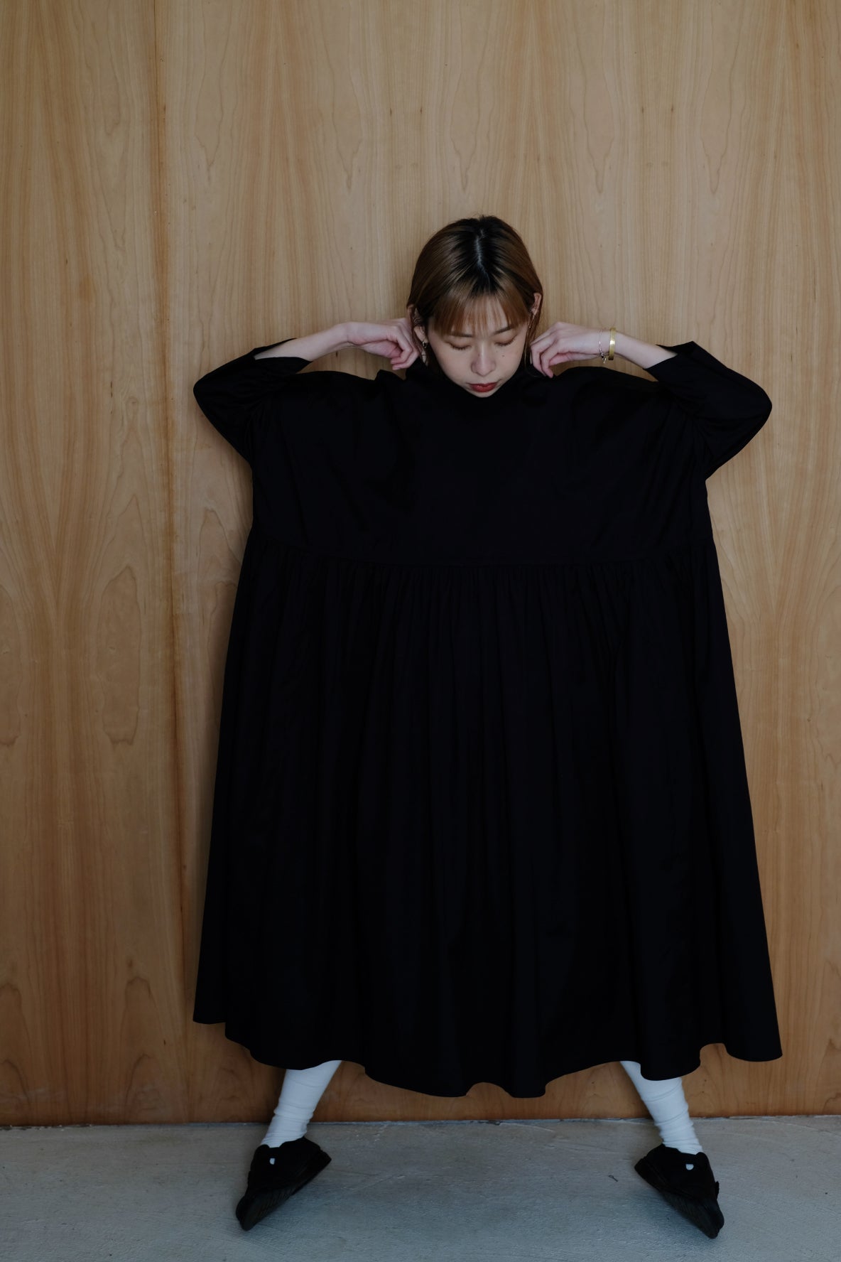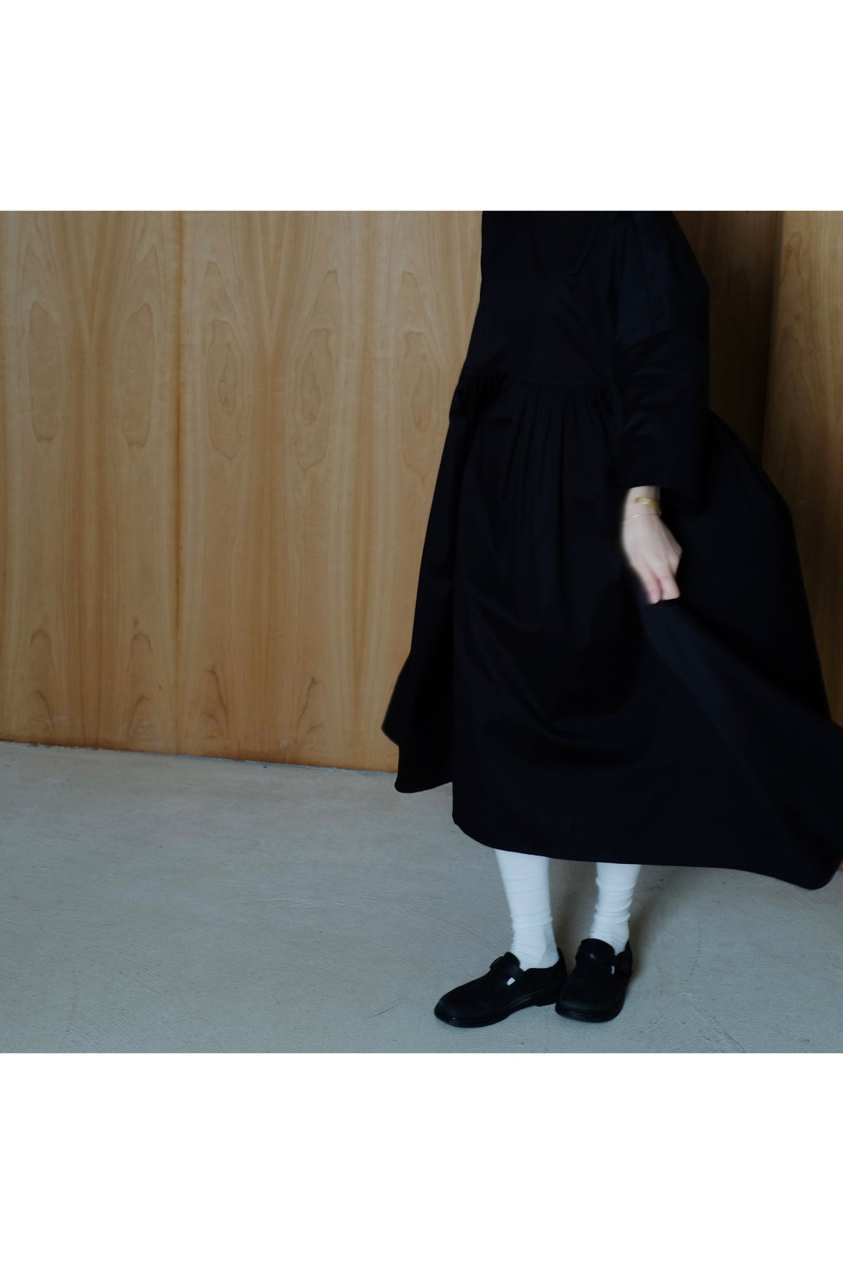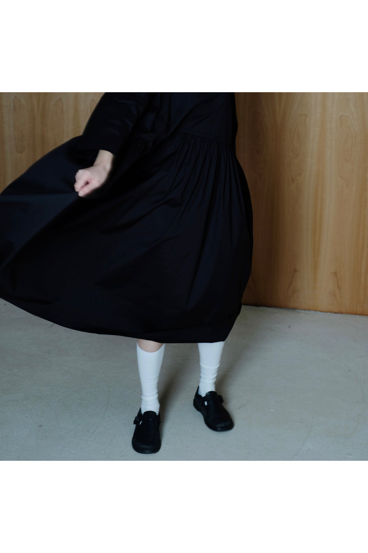 裙子的傘形剪裁和中長寬闊的下擺設計
