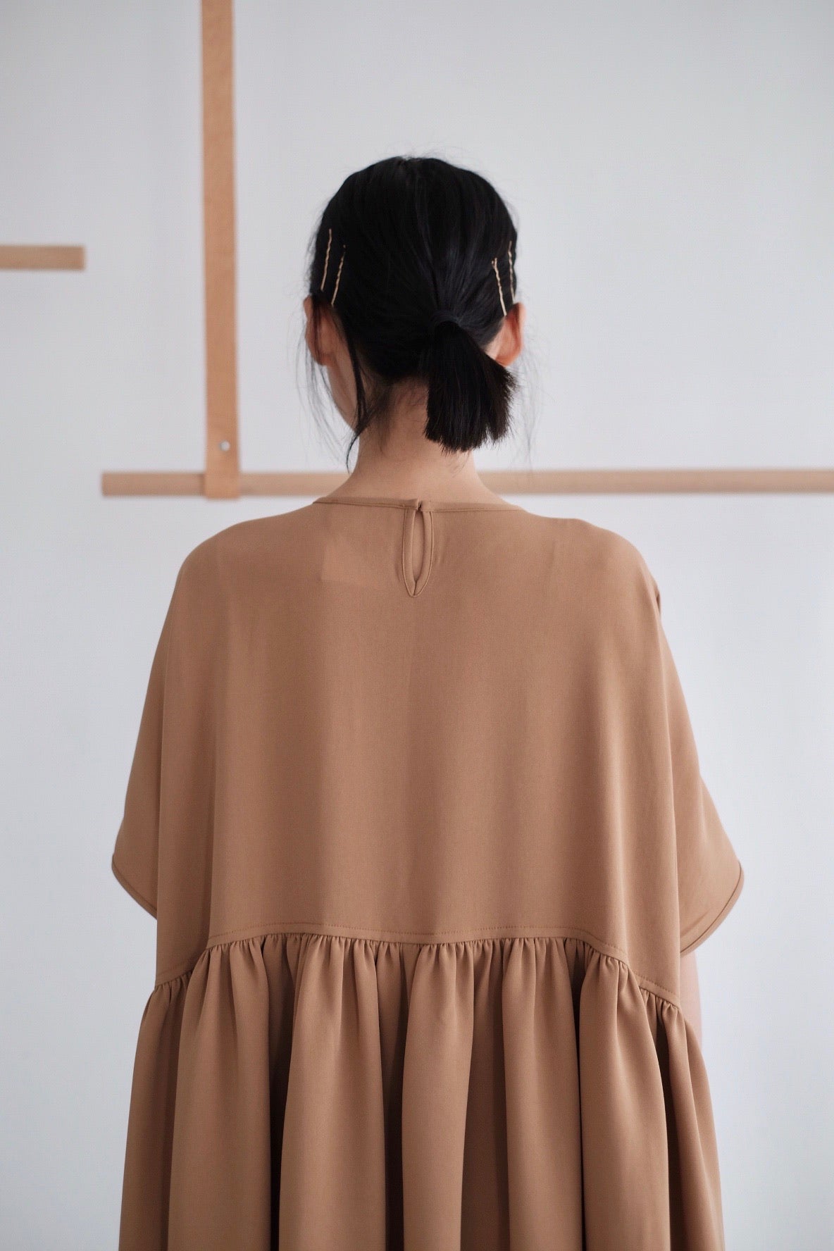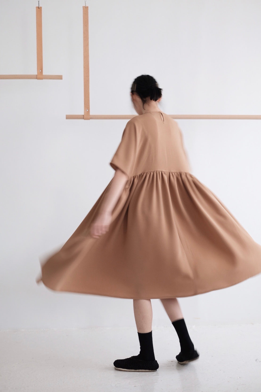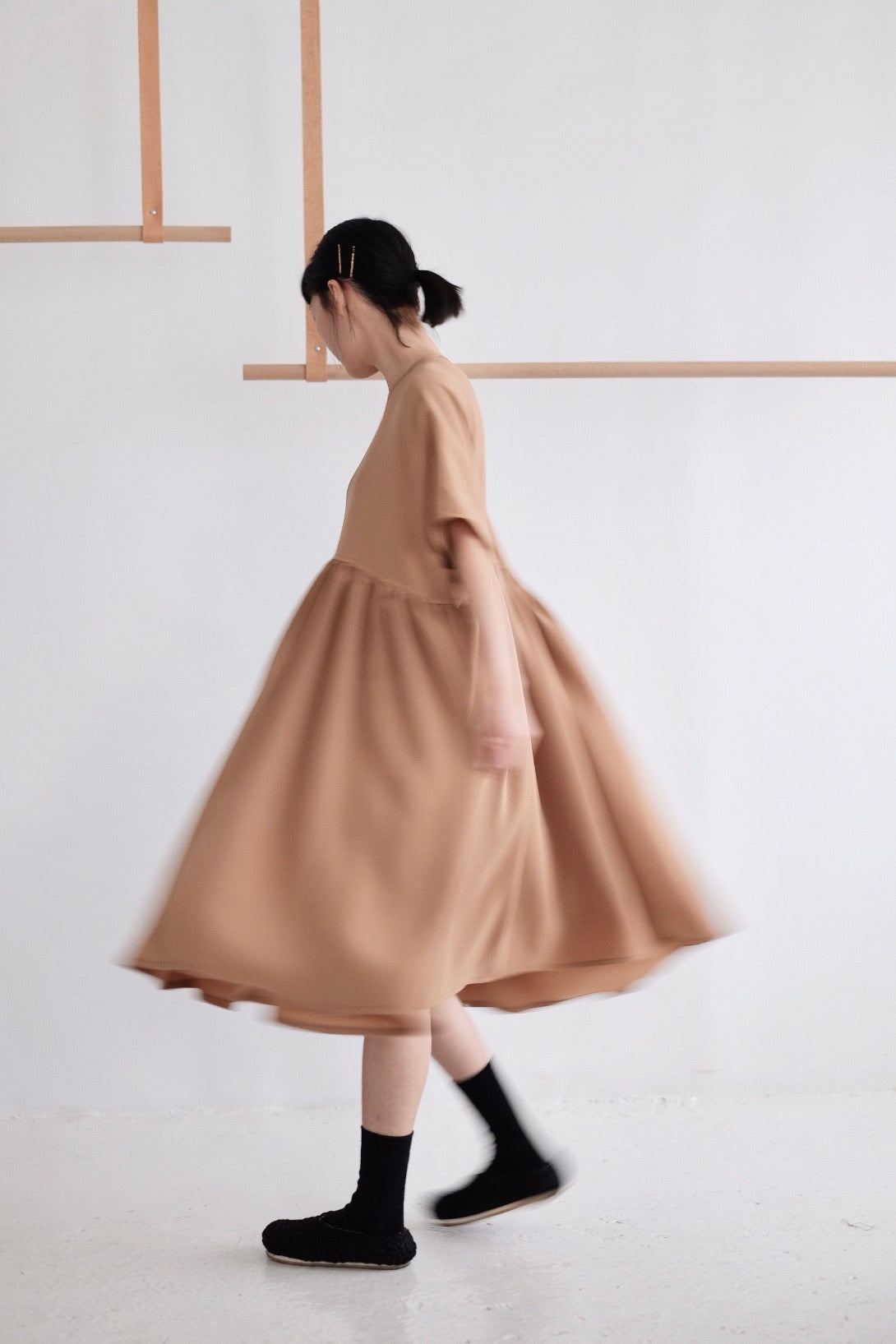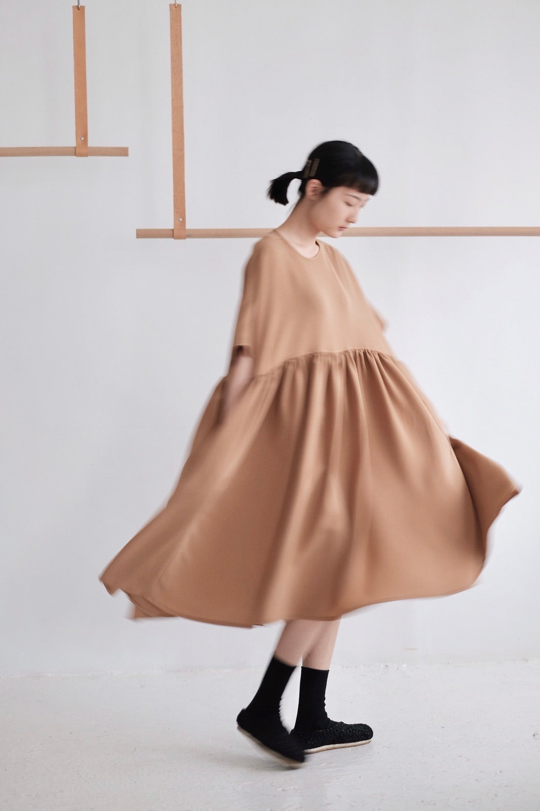裙子選用較厚身的雪仿質地布料 具垂墜感
