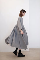 裙子的傘形剪裁和中長寬闊的下擺設計