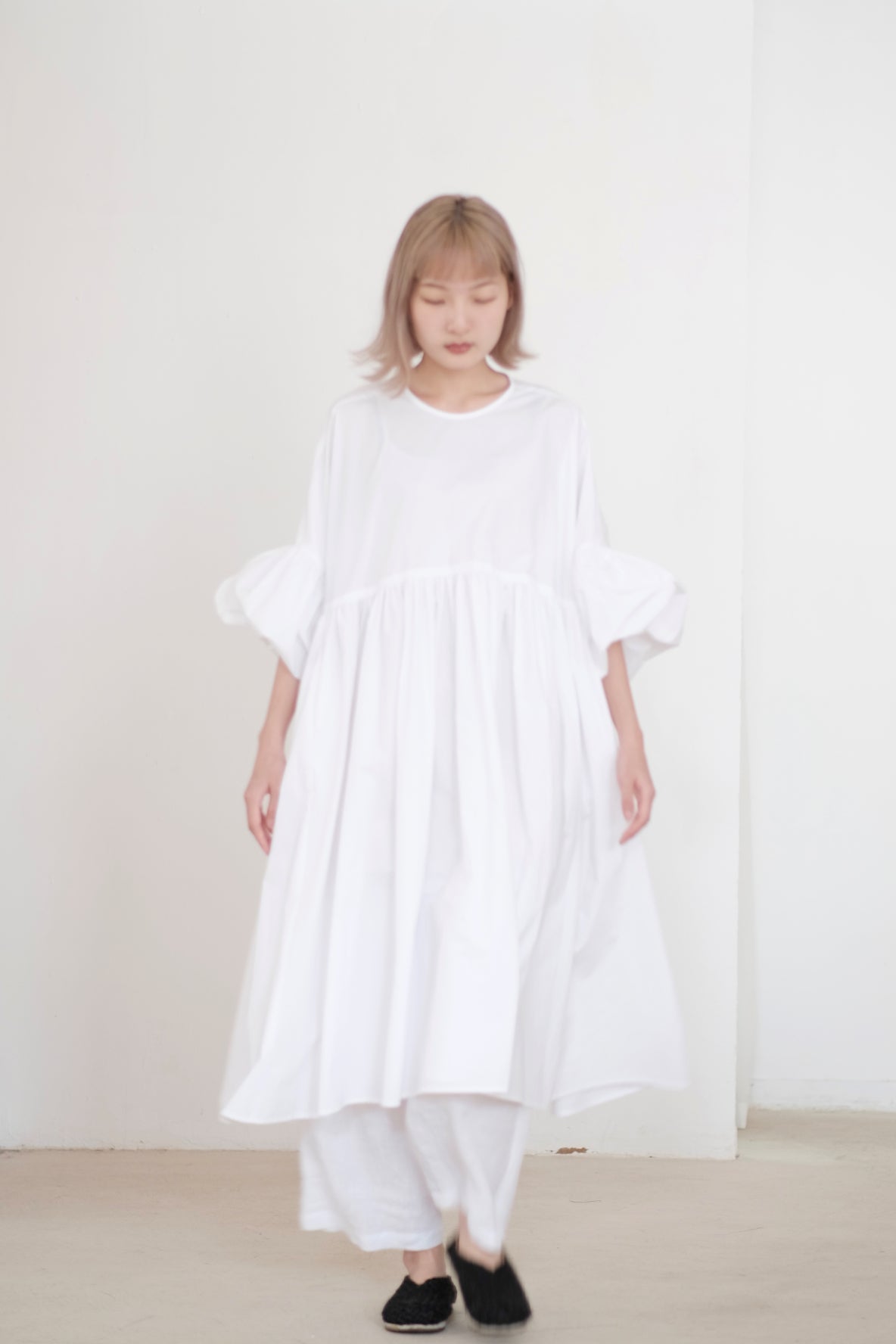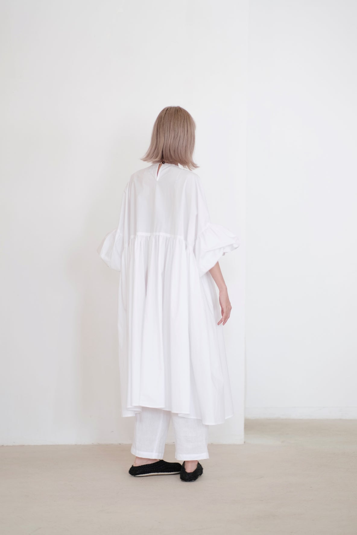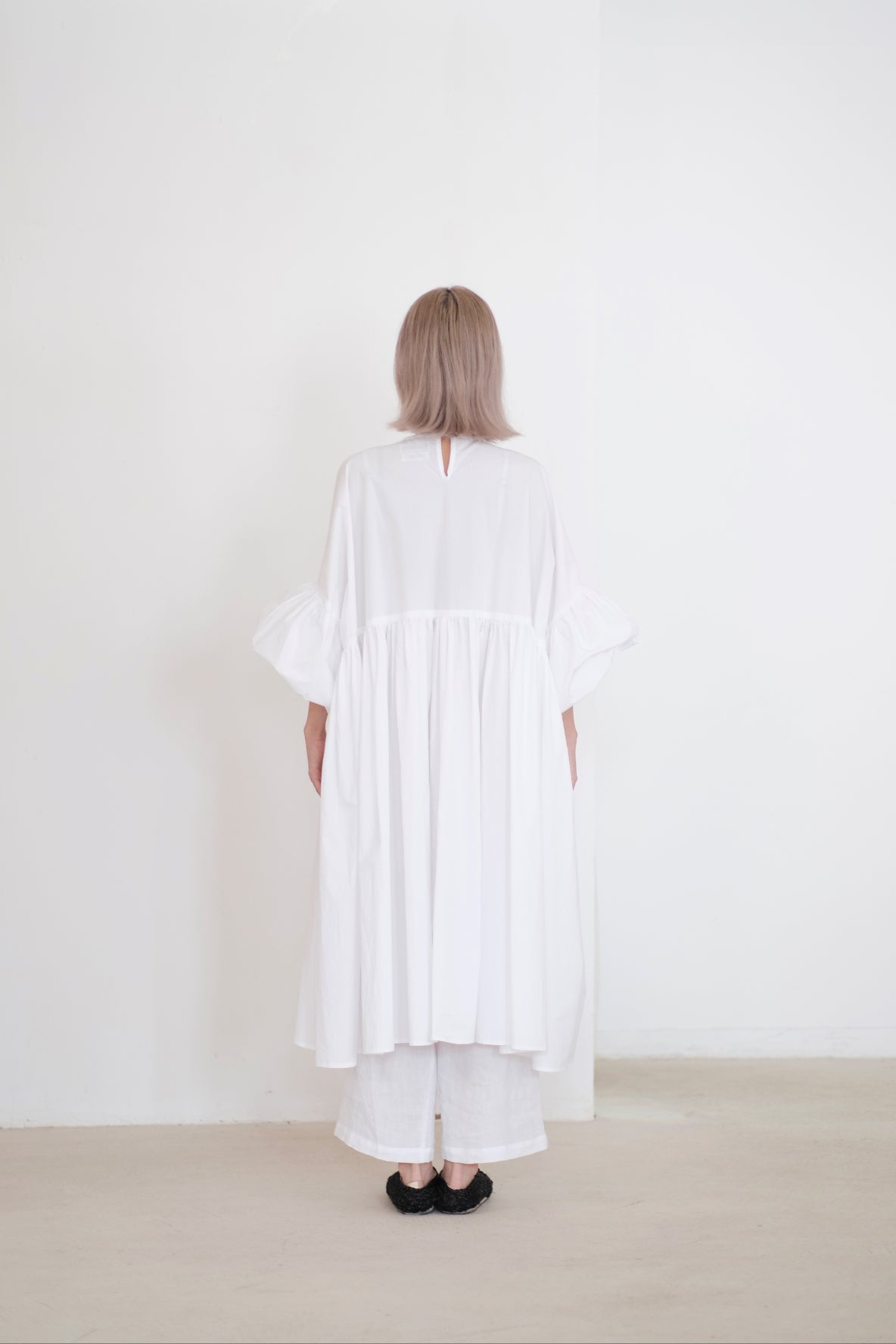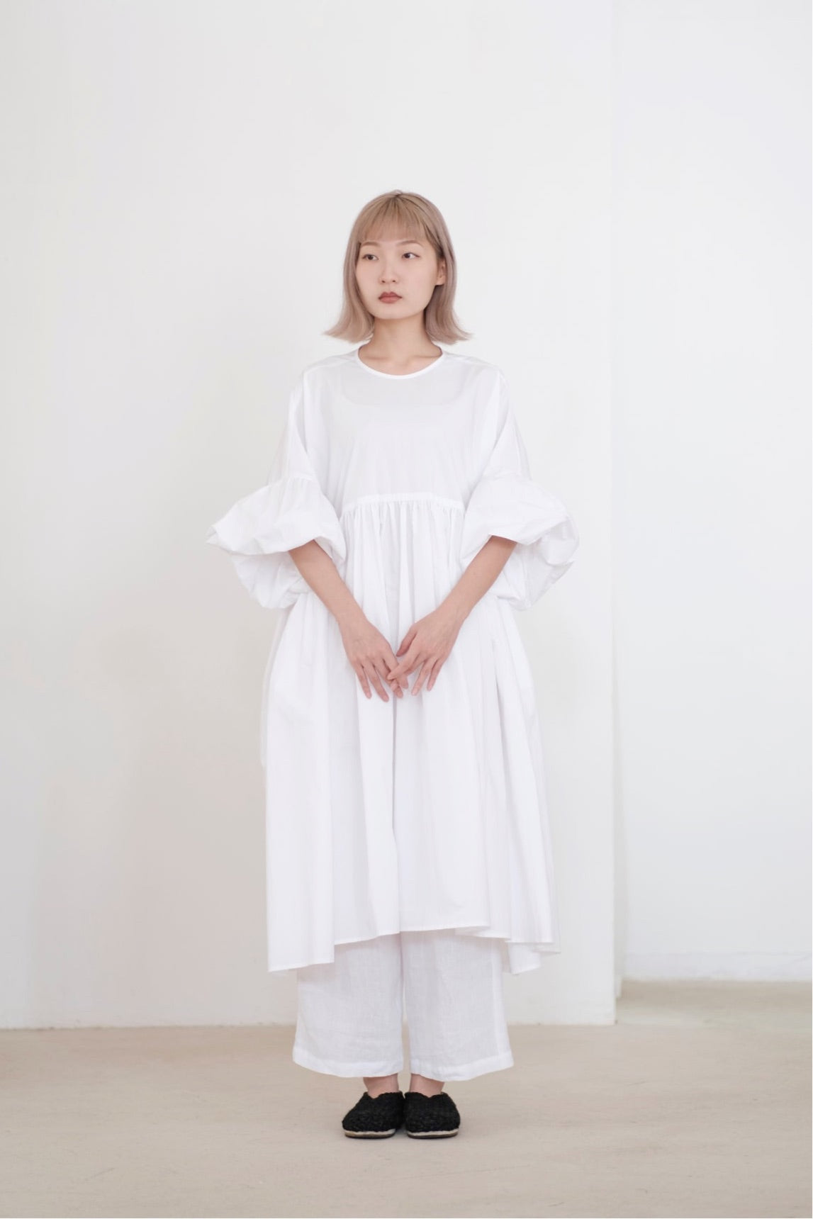 ・Complete with balloon sleeves, this romantic style is detailed with a crewneck line.