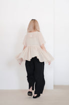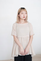 方形領口及闊肩帶亦有修飾手臂線條效果