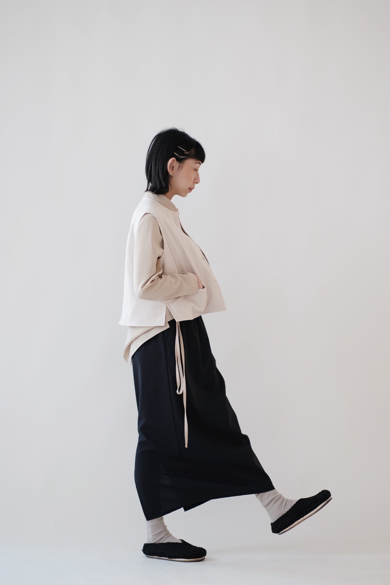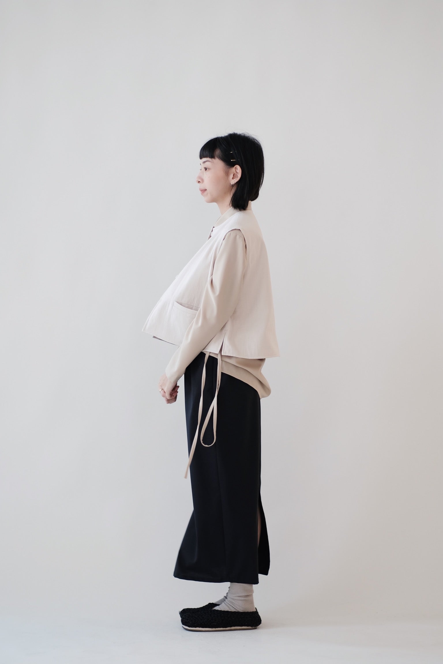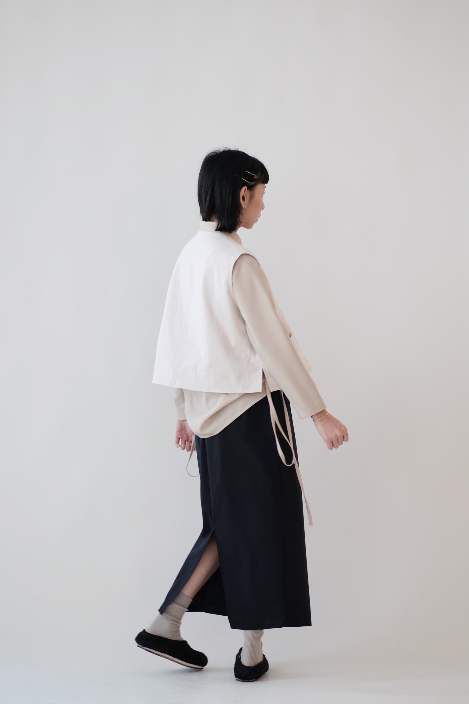 直筒型裙身加上後方開叉設計