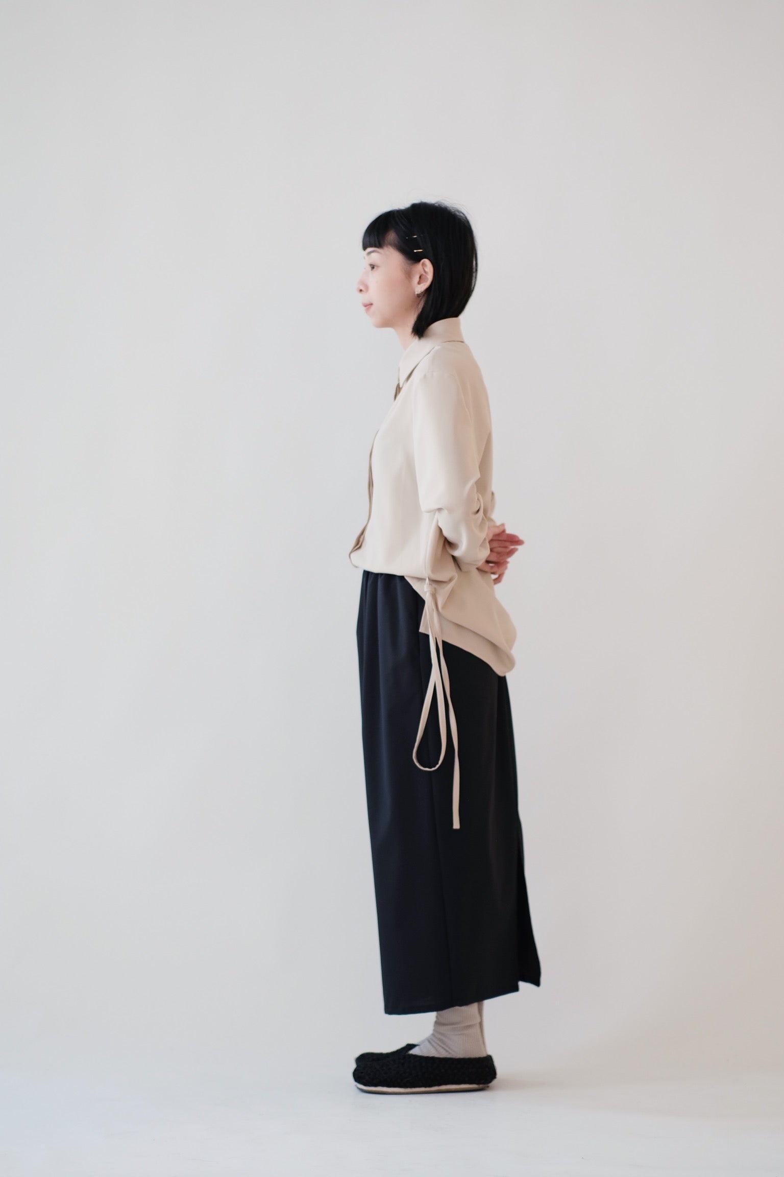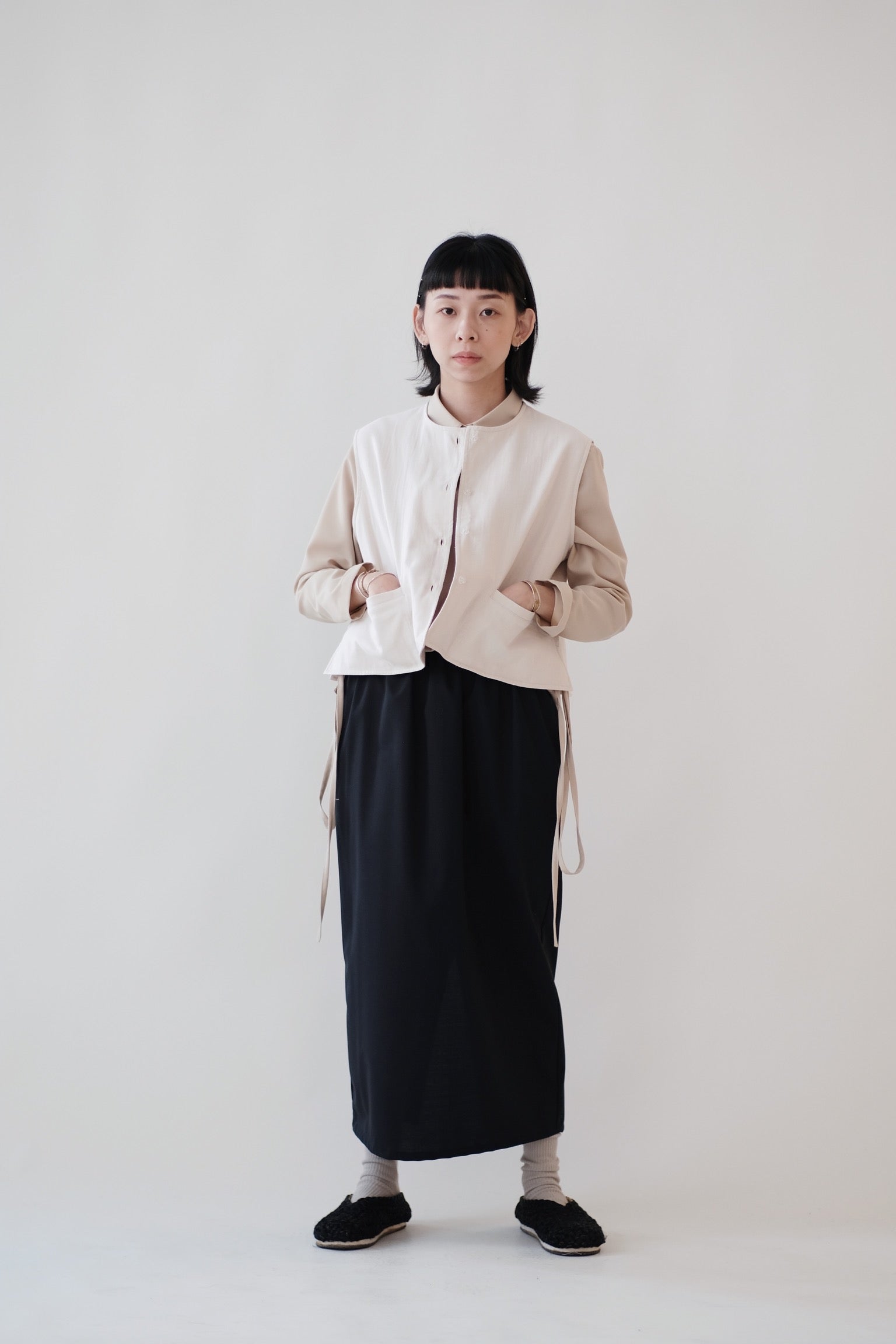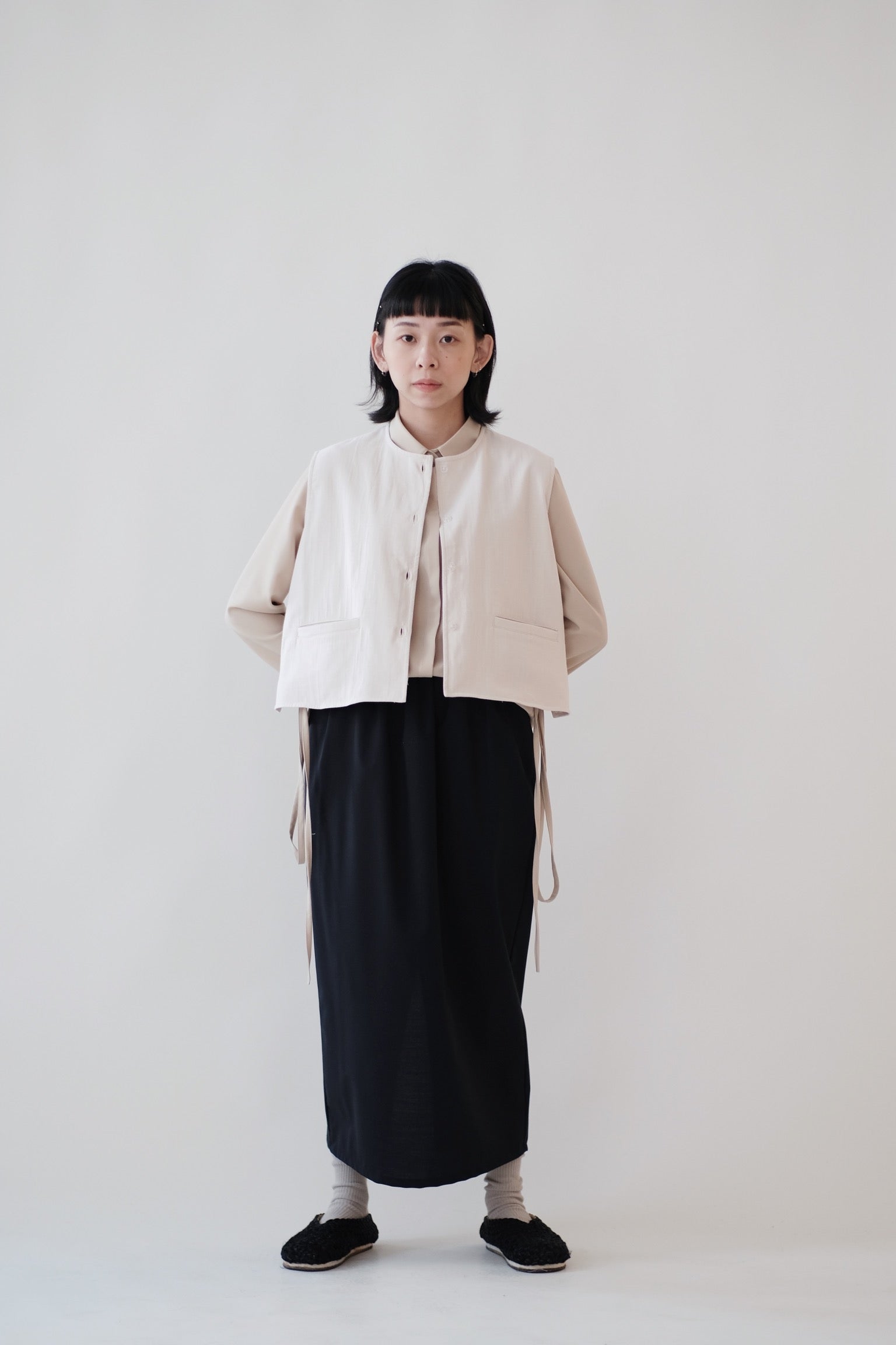 直筒型裙身加上後方開叉設計