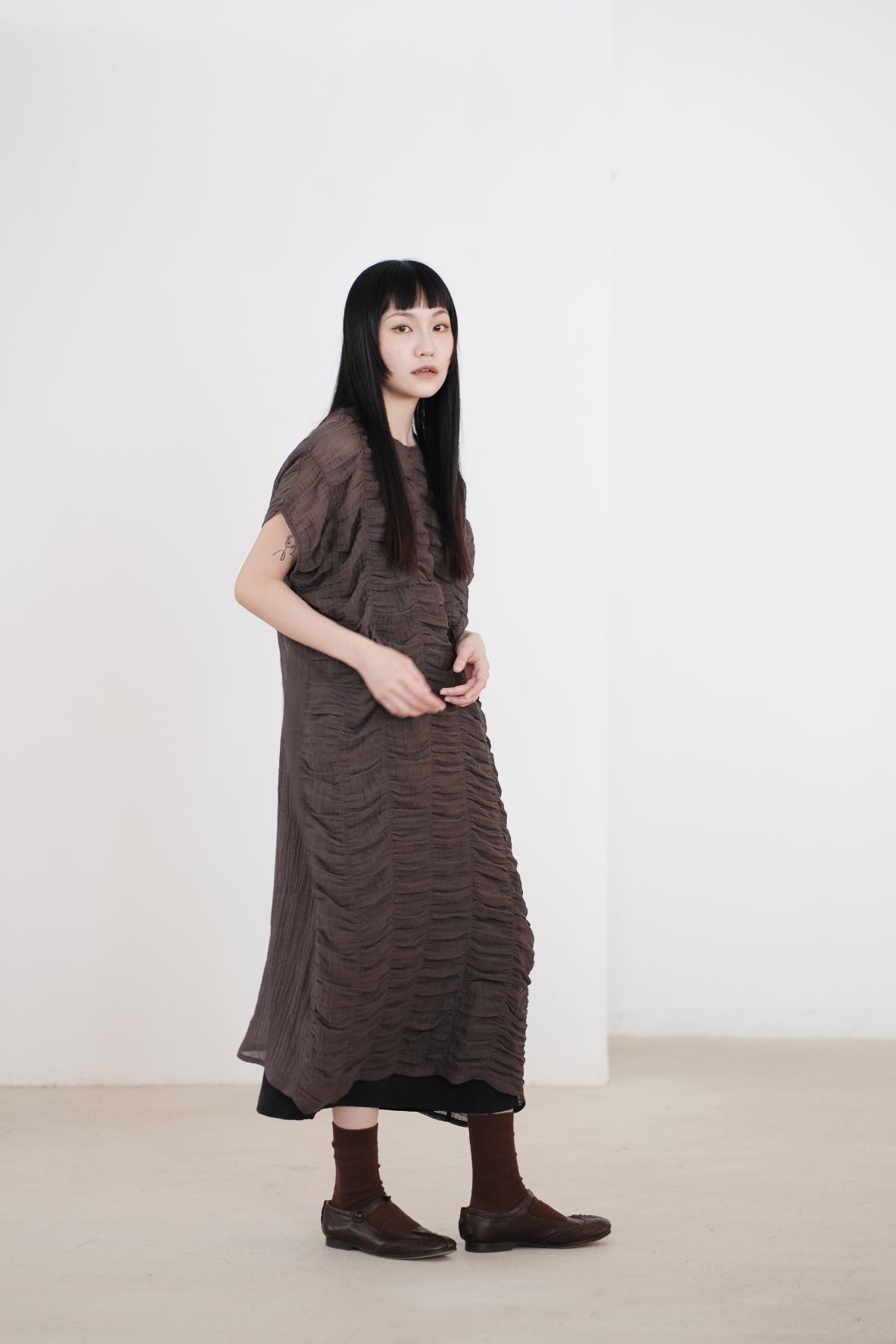 衣服正面運用小碎褶皺設計