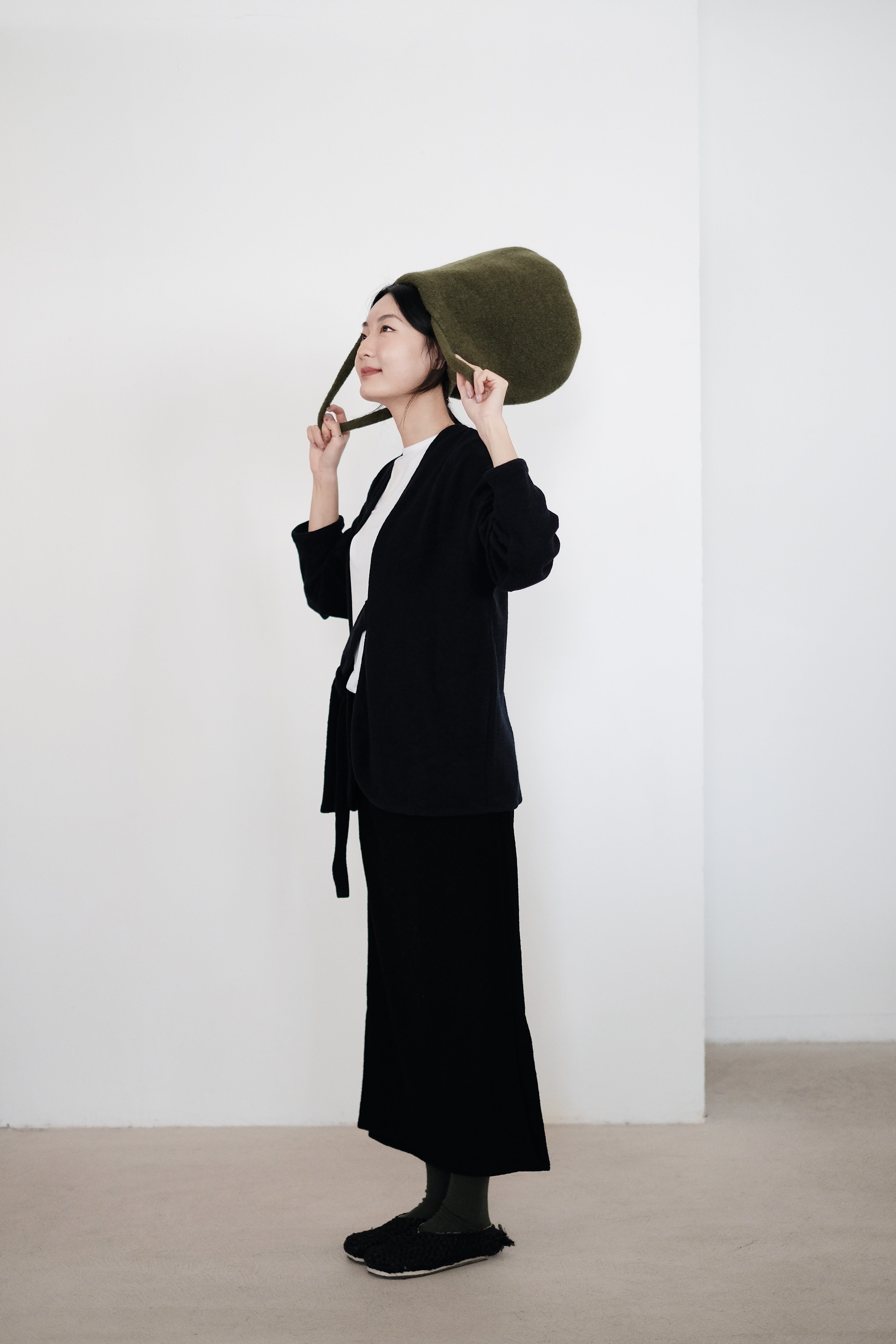 Wool 68% PA 32%(Japan). Made in Hong Kong