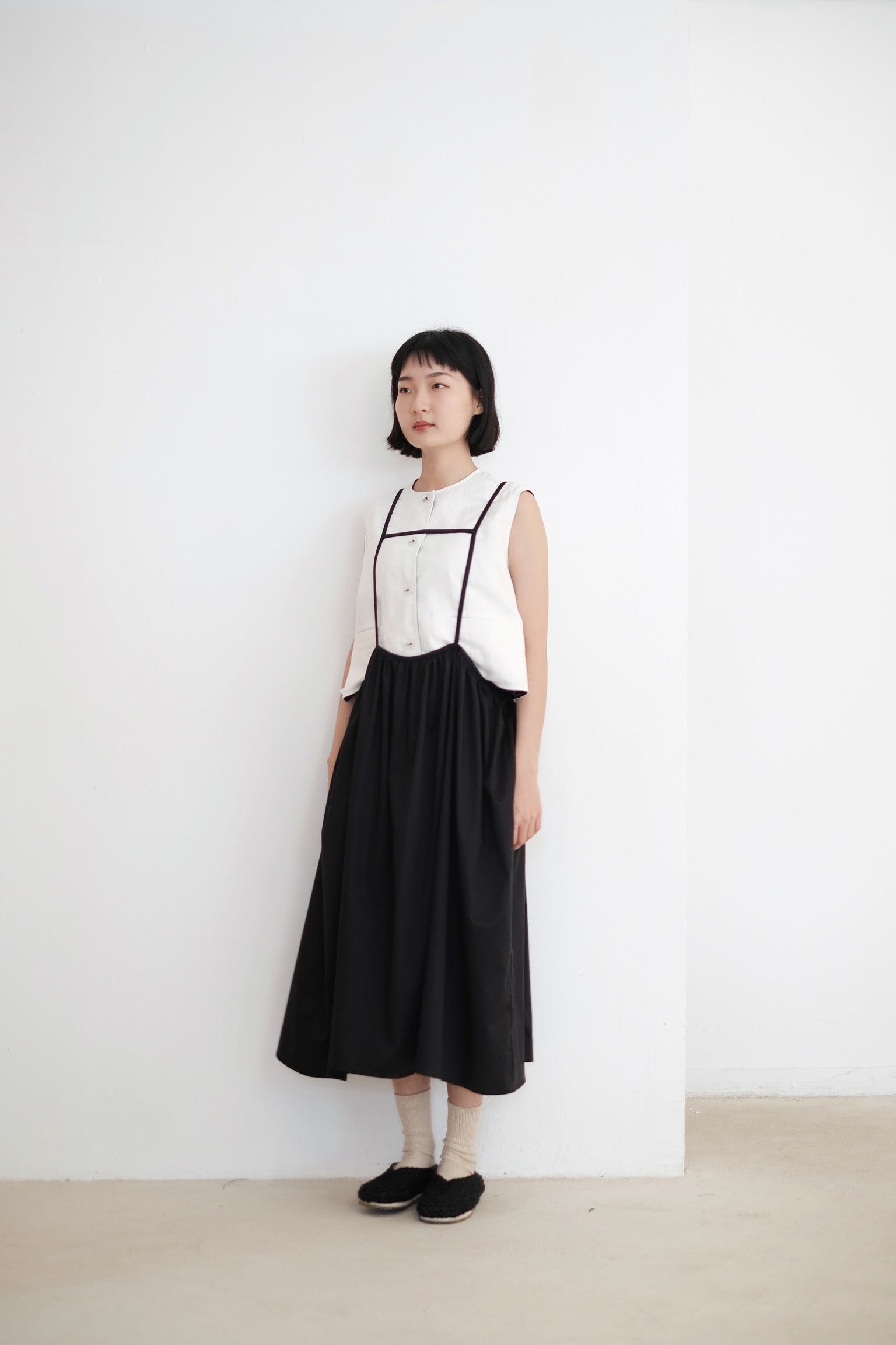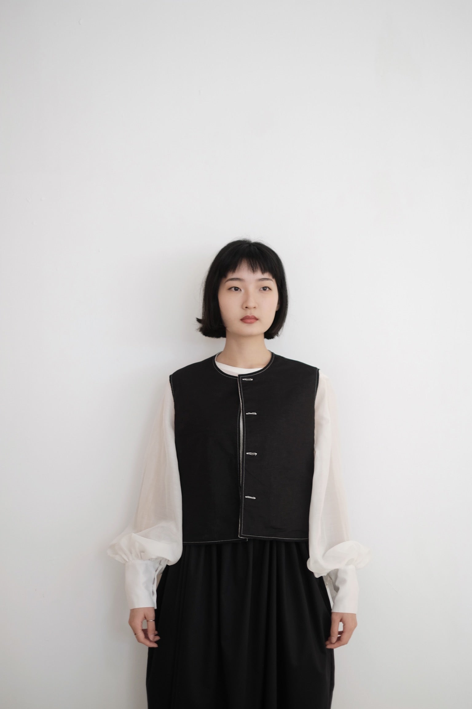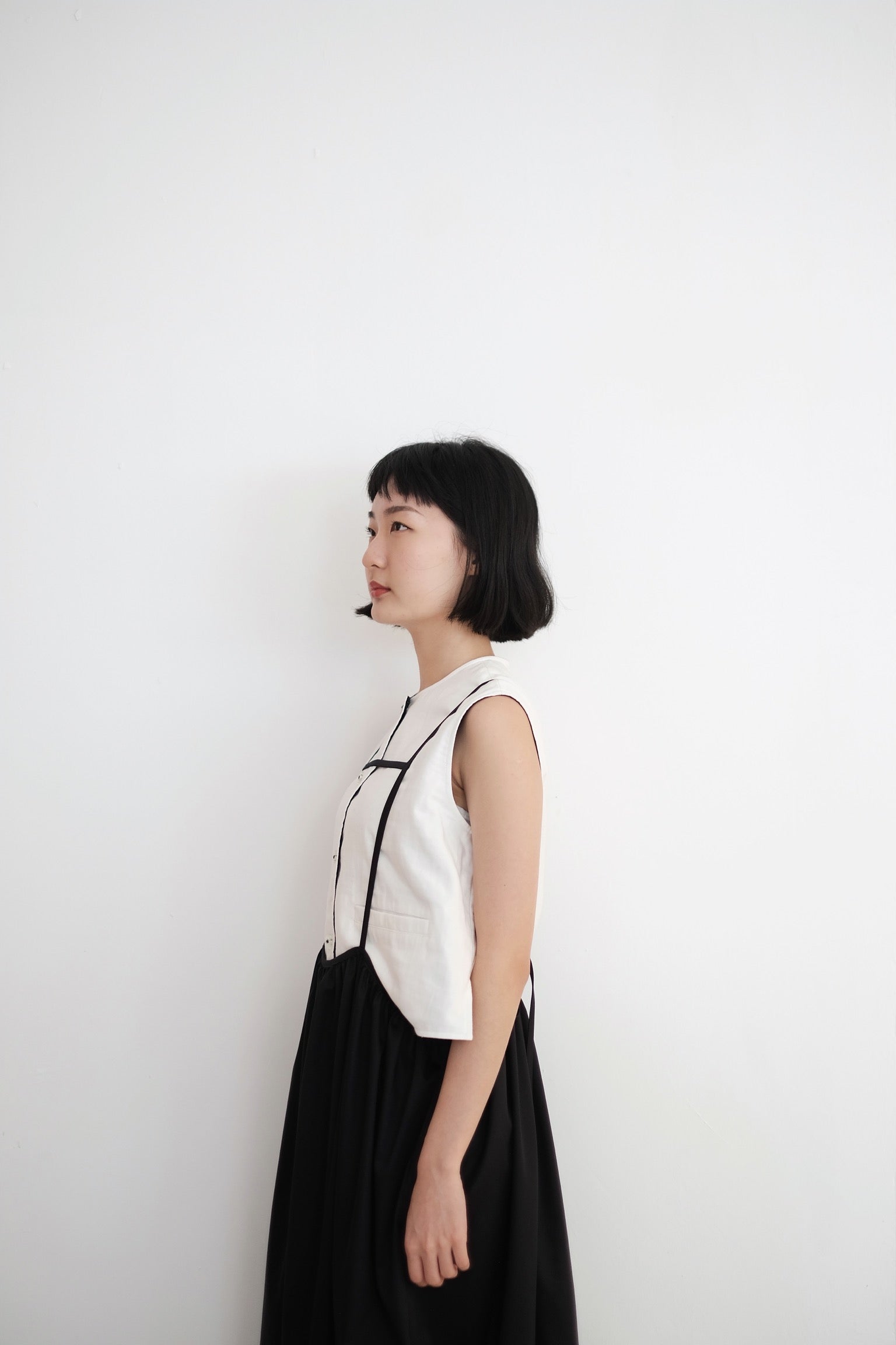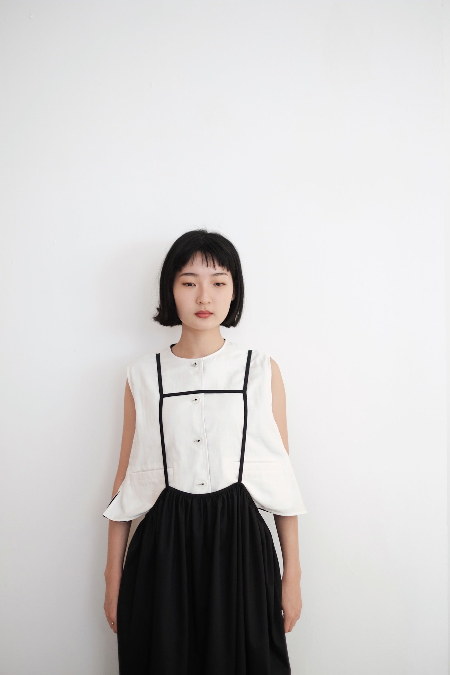 背心的內裡選用輕薄的黑色紗質布料配以白色棉線