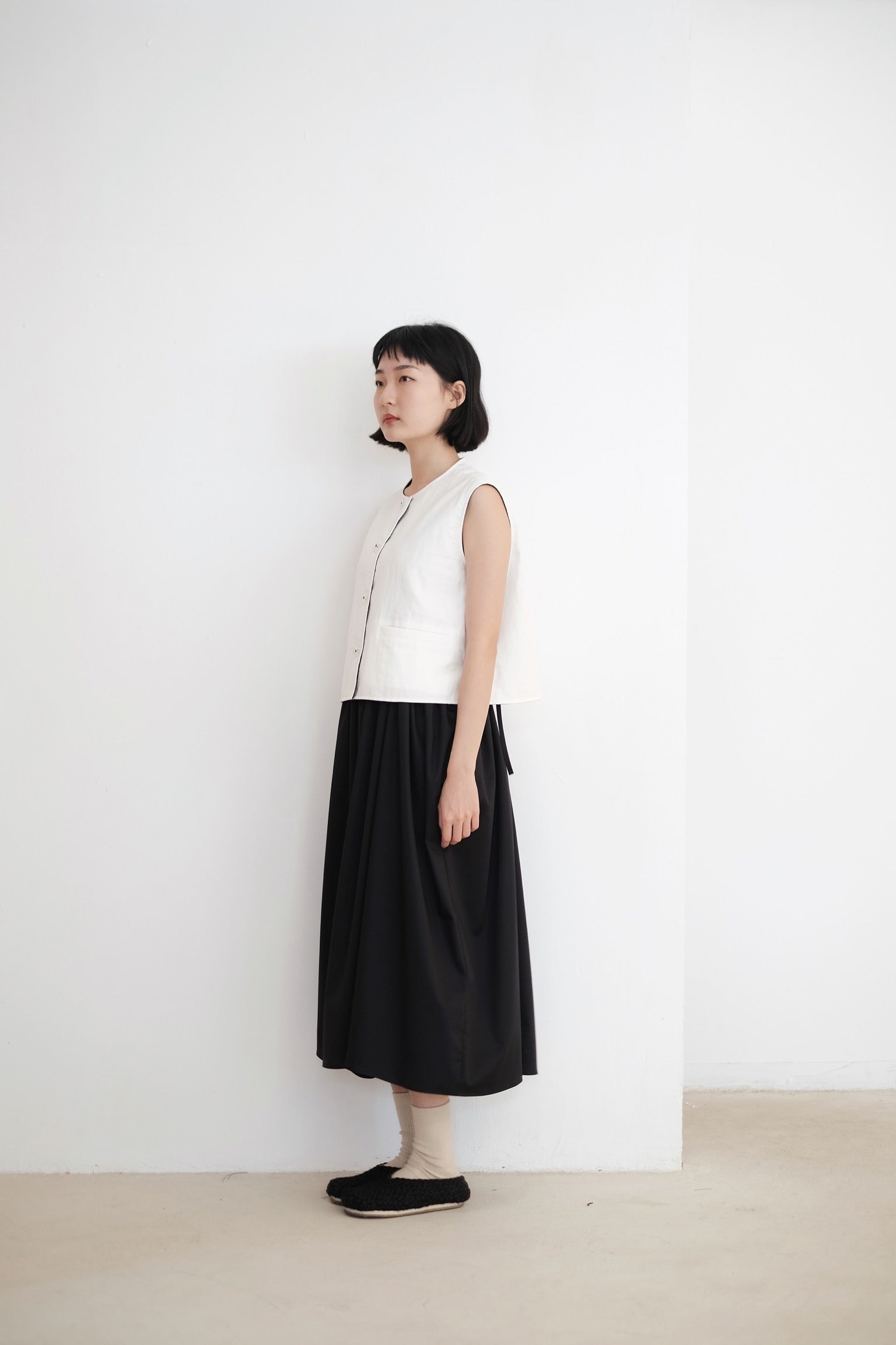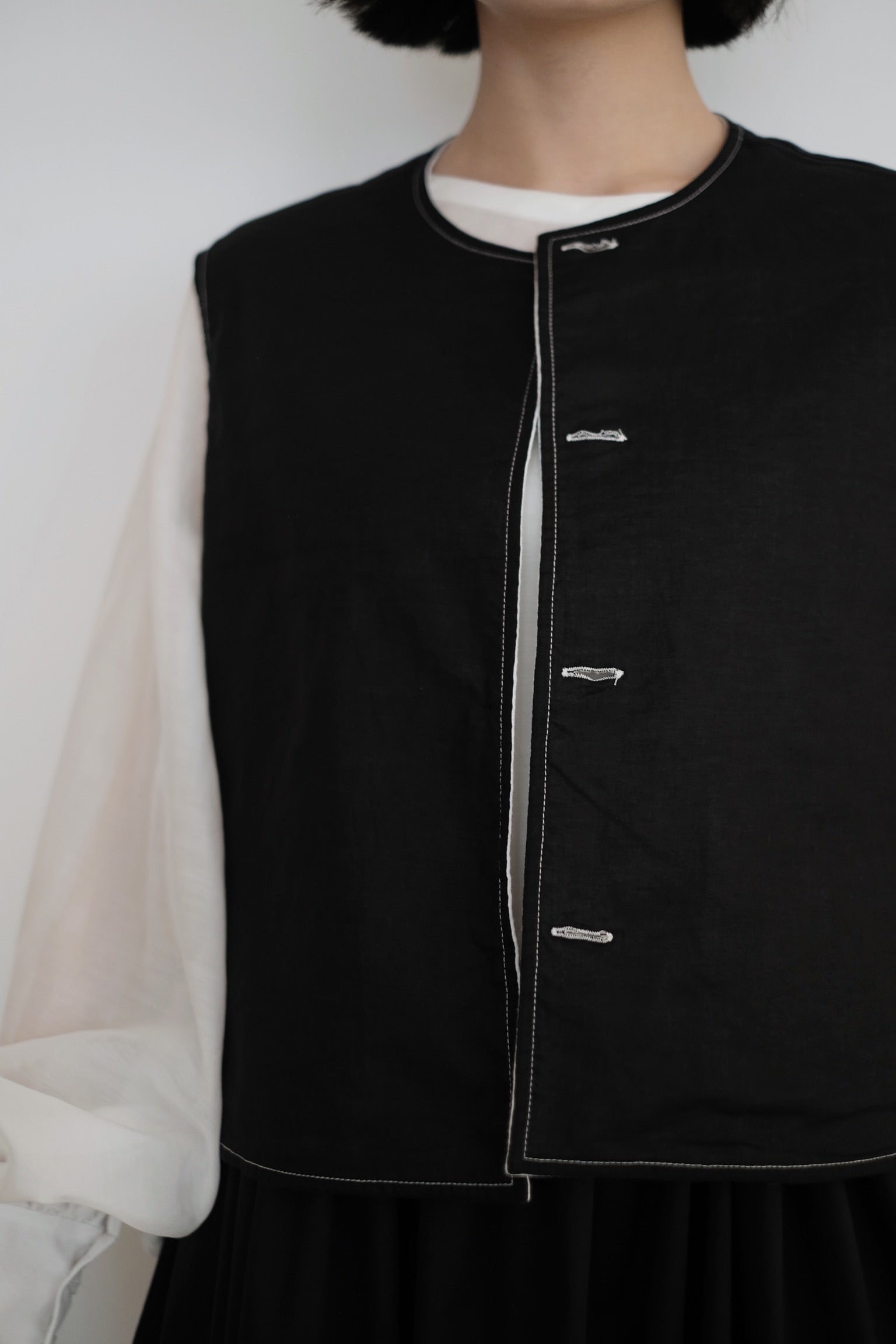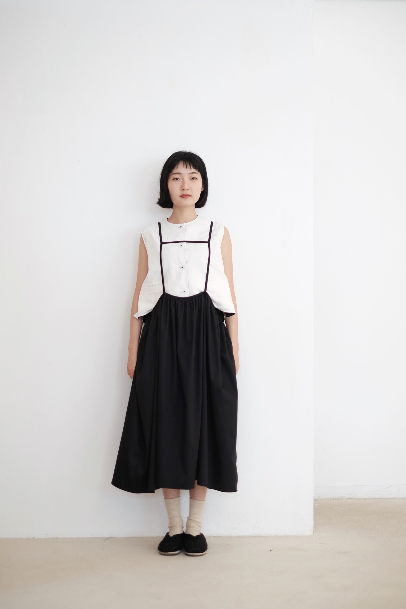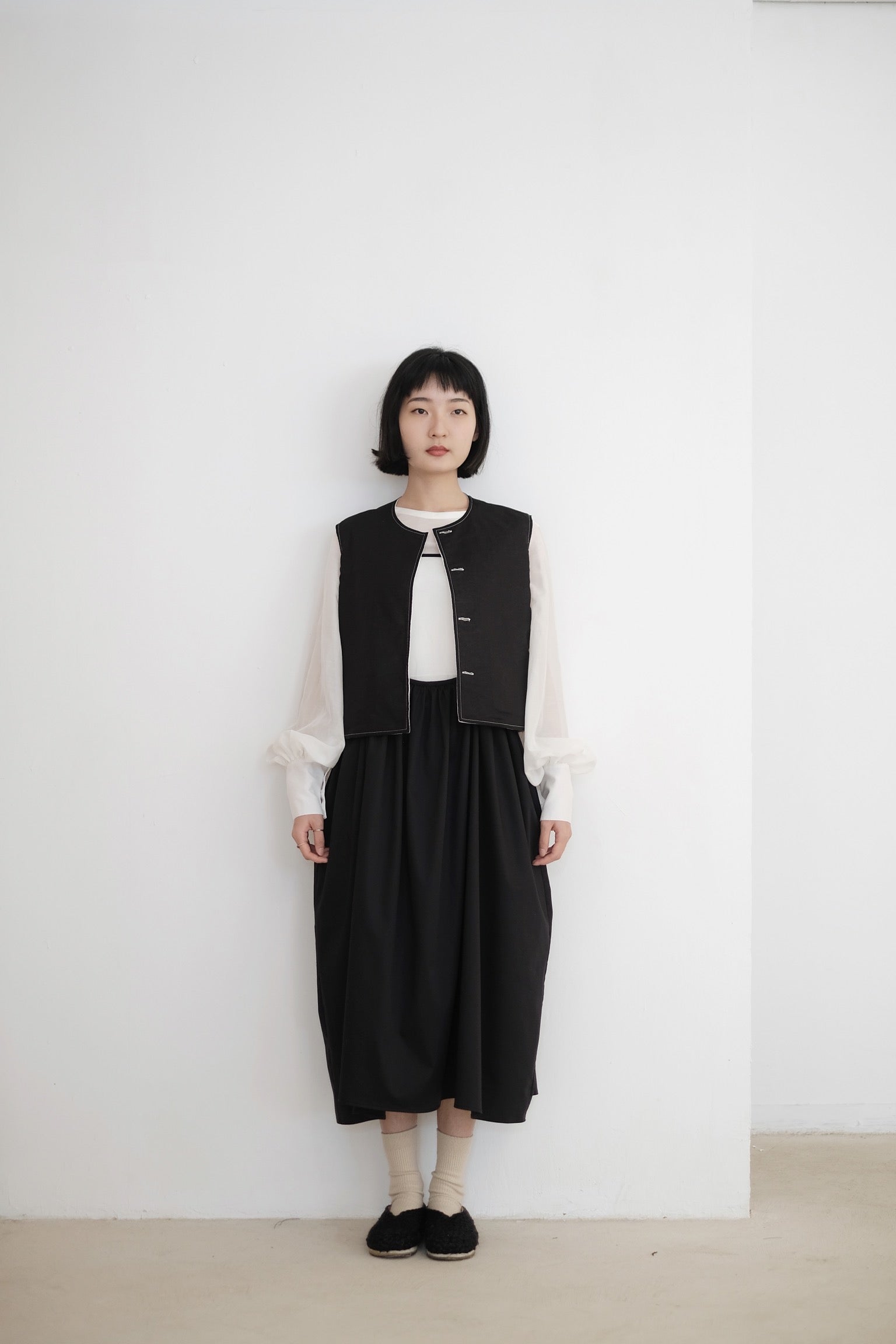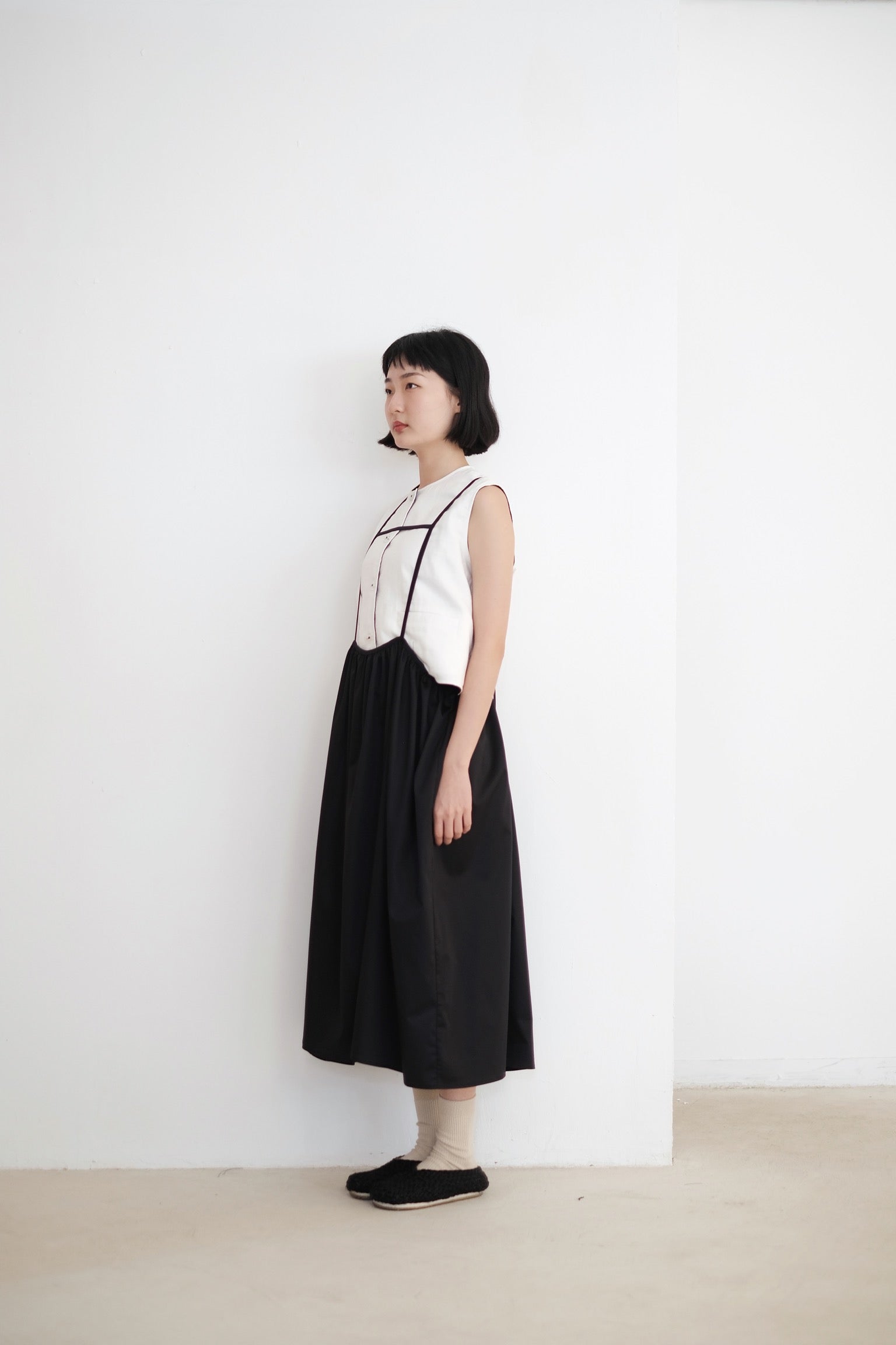 背心的內裡選用輕薄的黑色紗質布料配以白色棉線