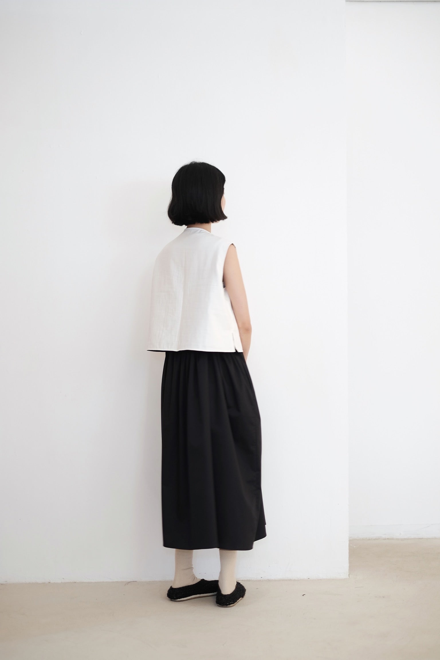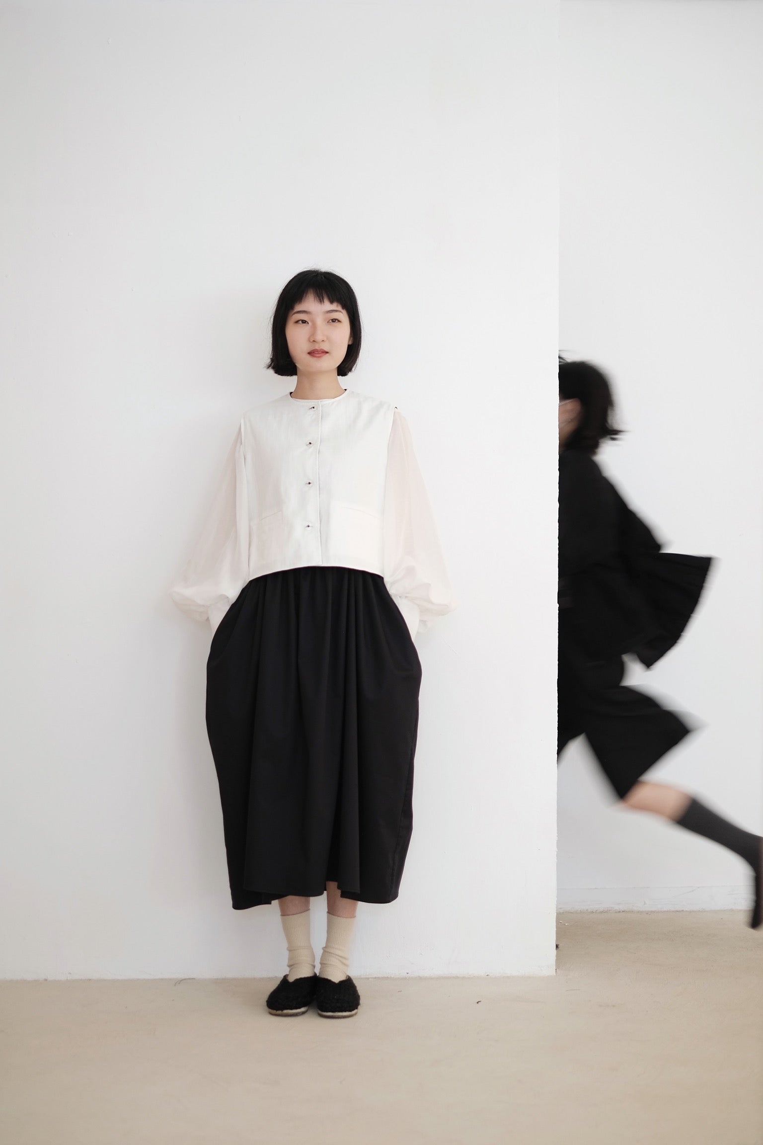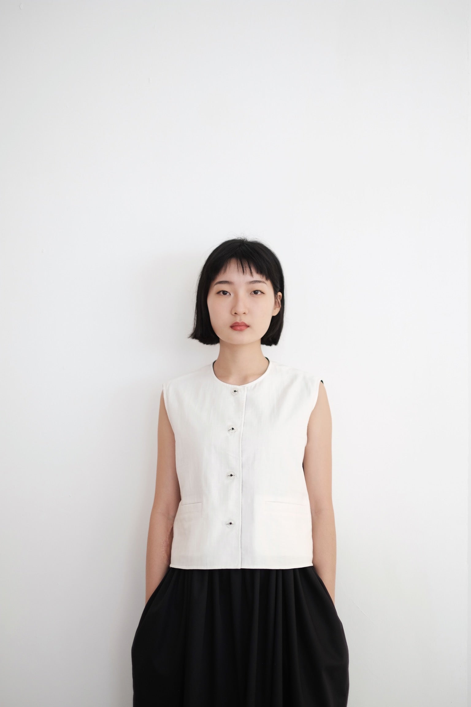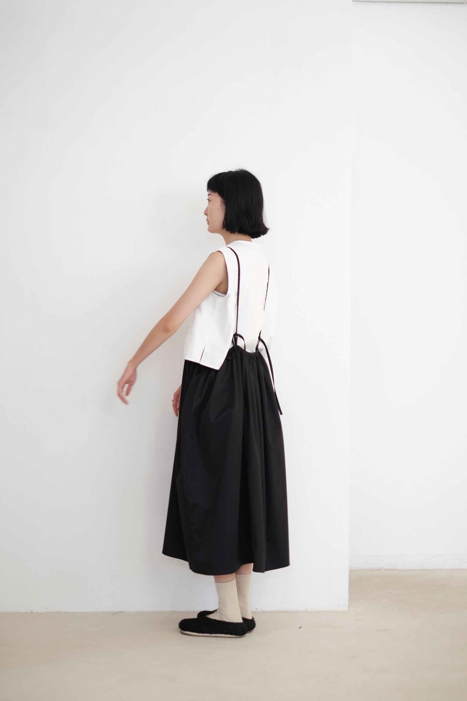 背心的內裡選用輕薄的黑色紗質布料配以白色棉線