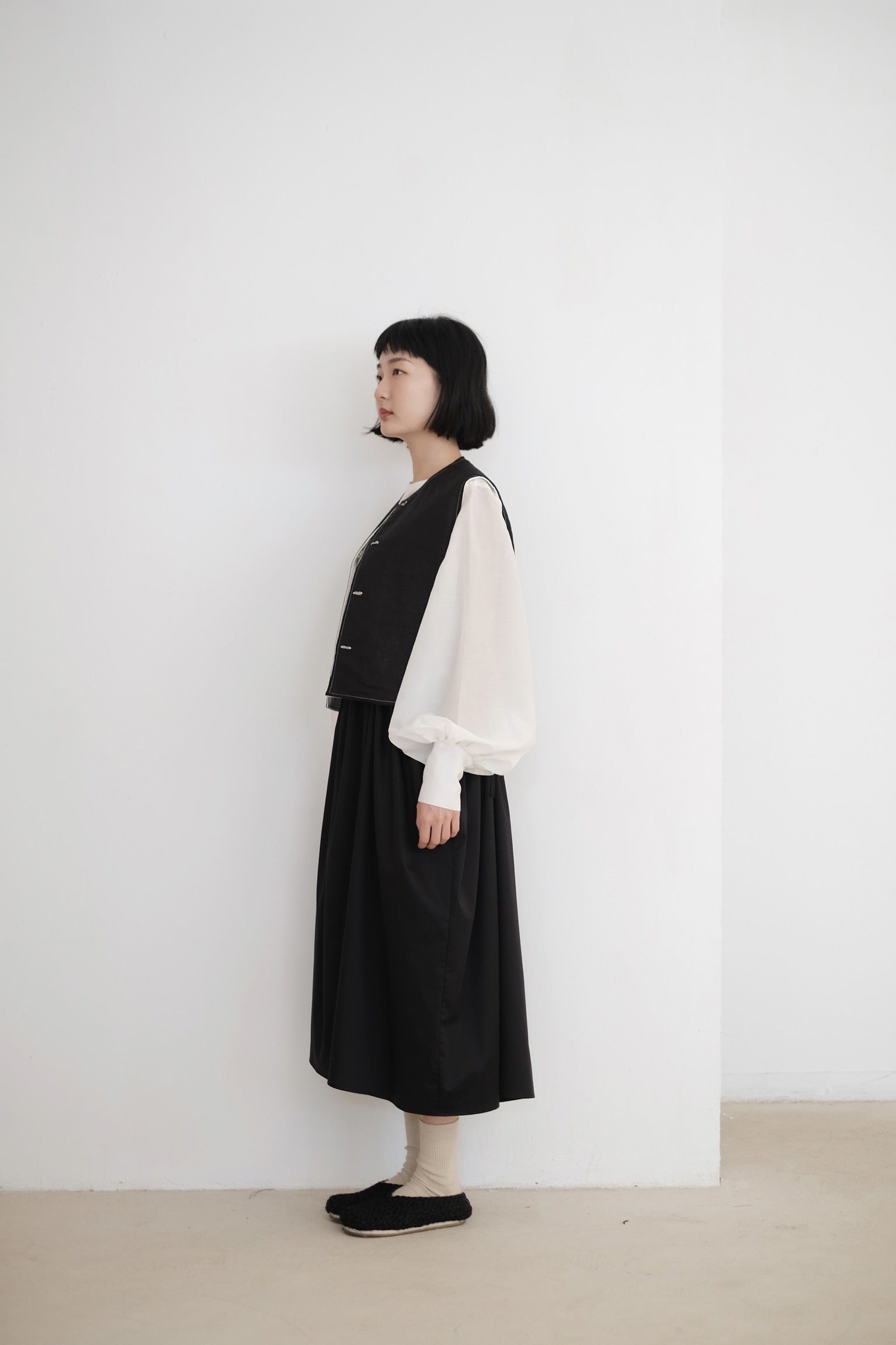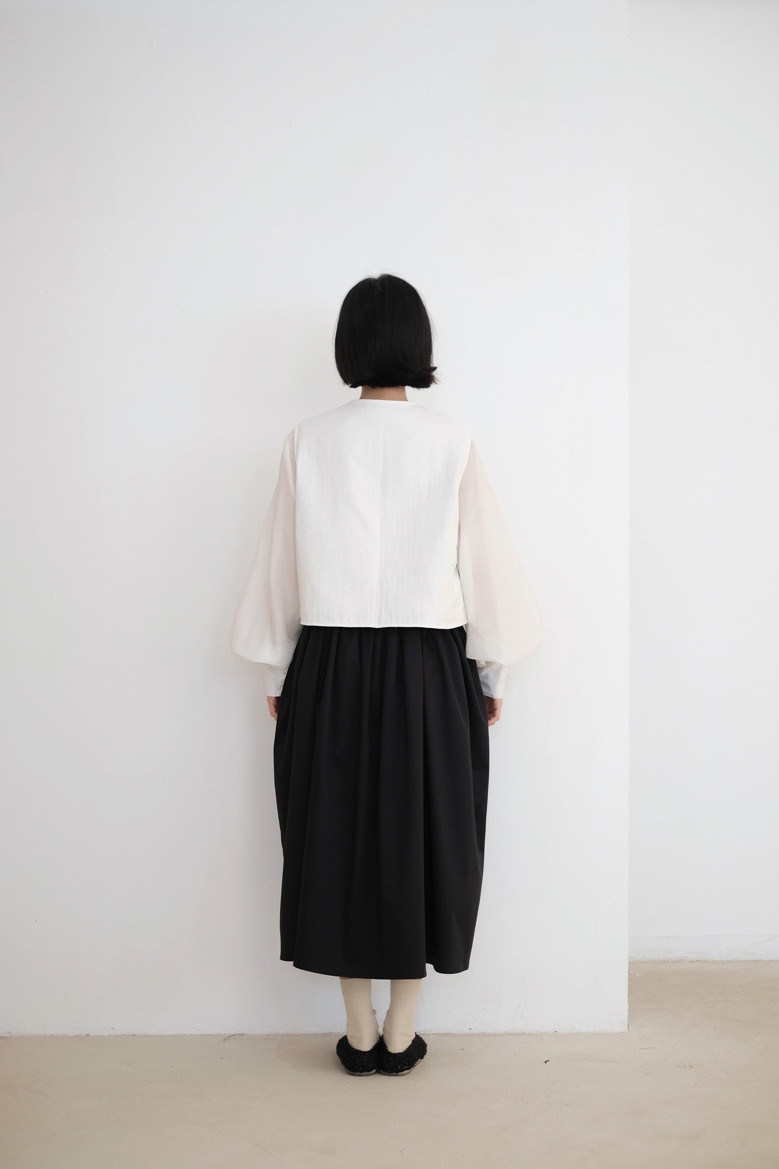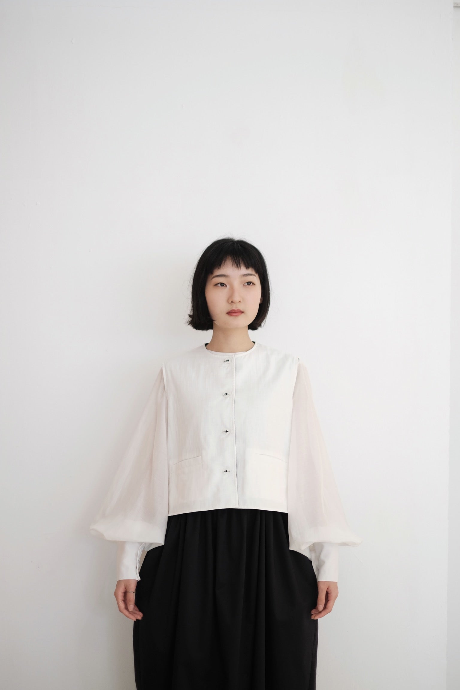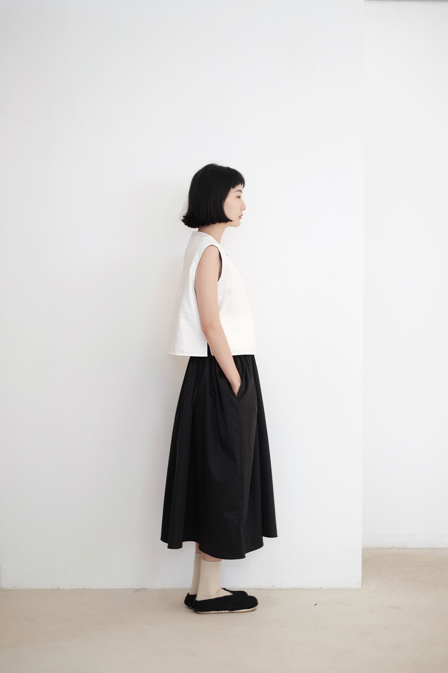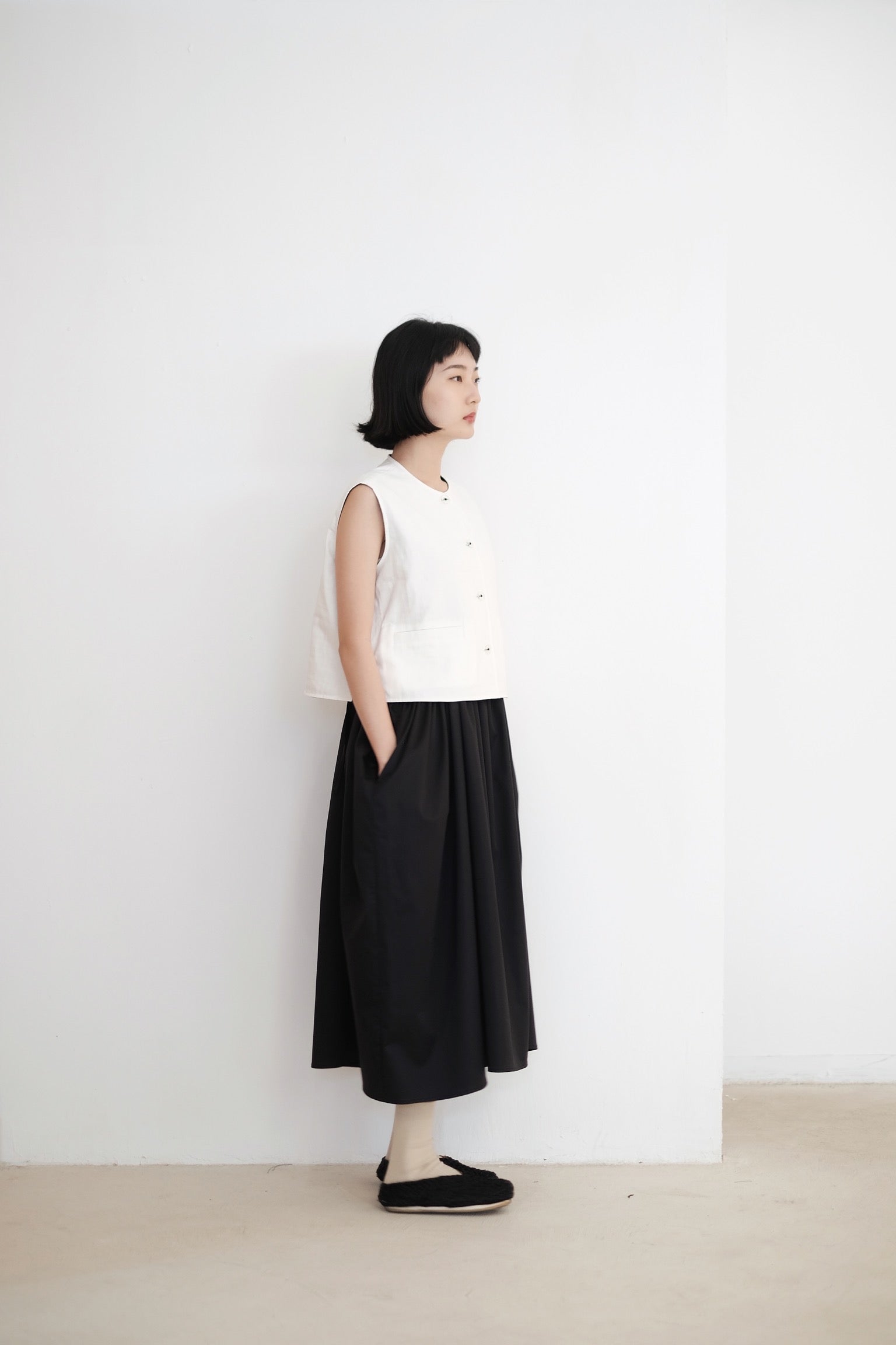 背心的內裡選用輕薄的黑色紗質布料配以白色棉線