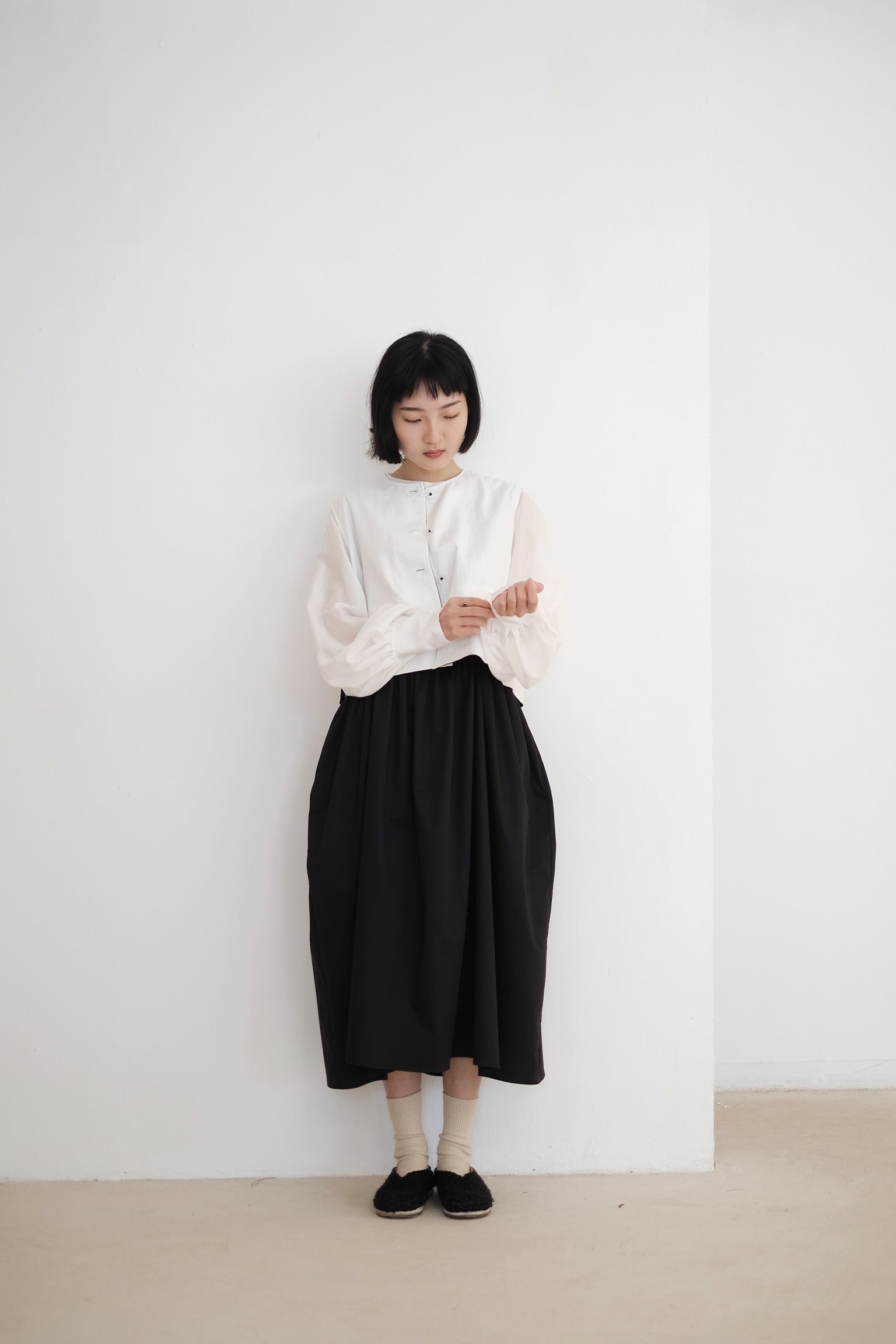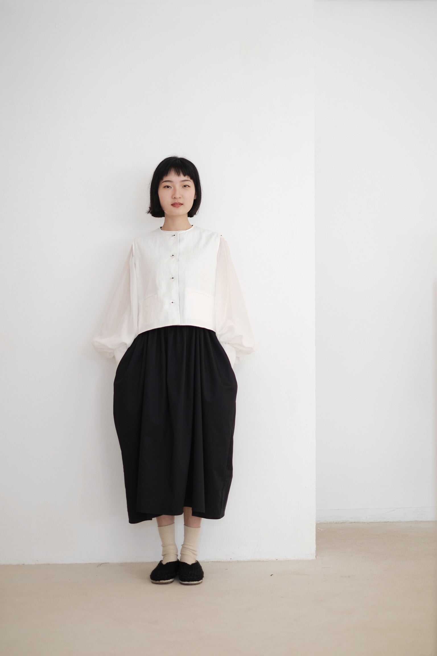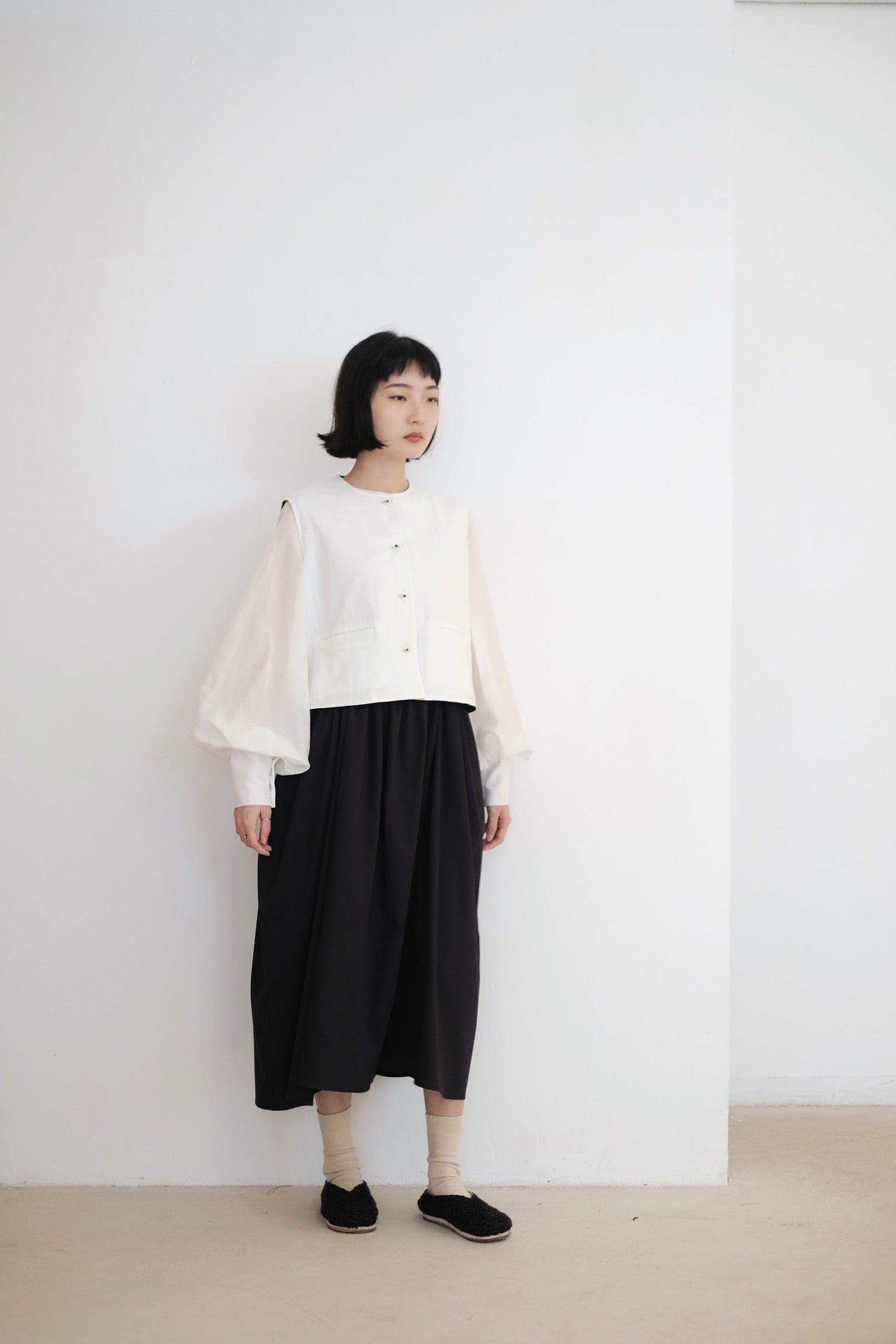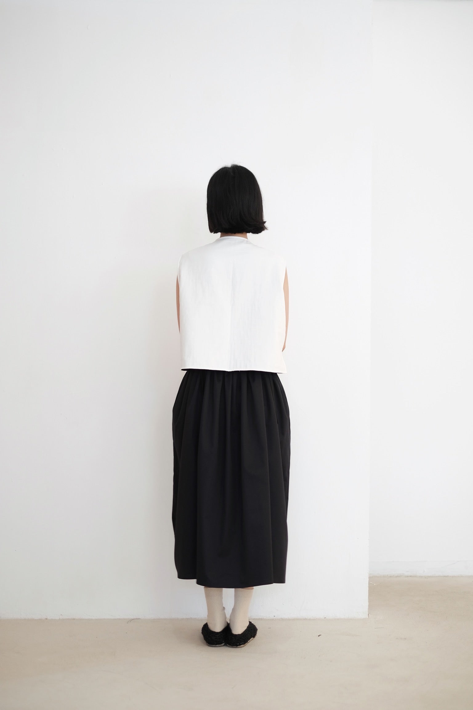 背心的內裡選用輕薄的黑色紗質布料配以白色棉線