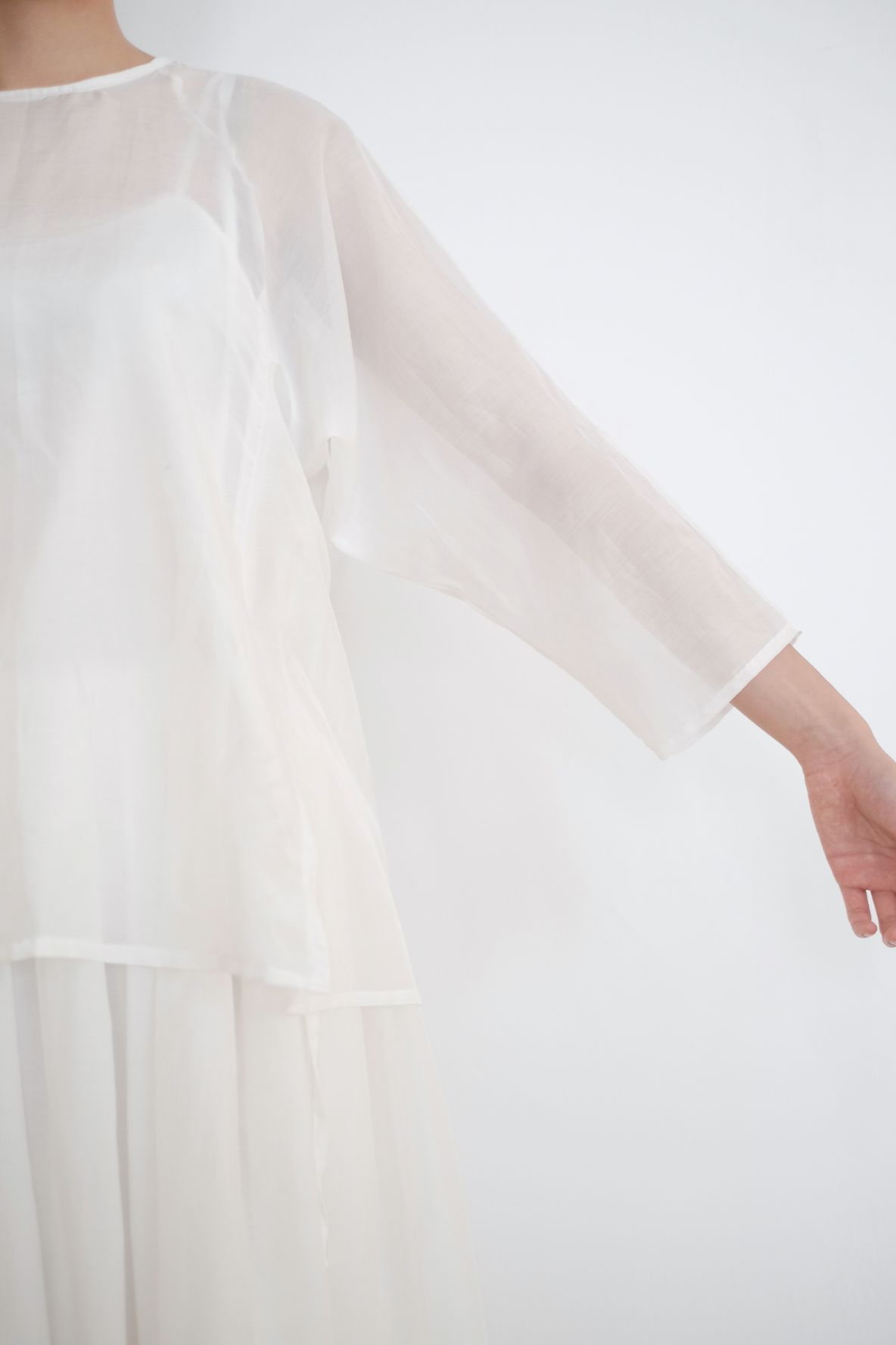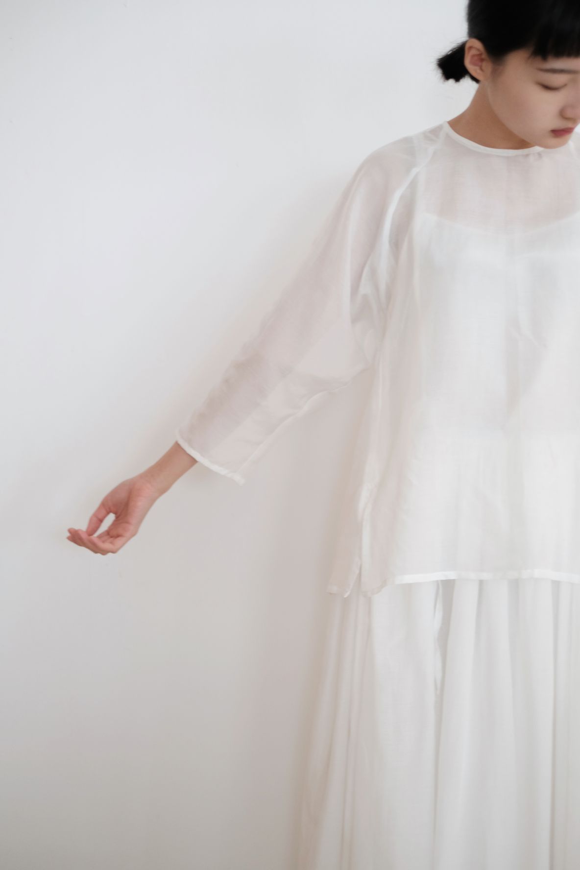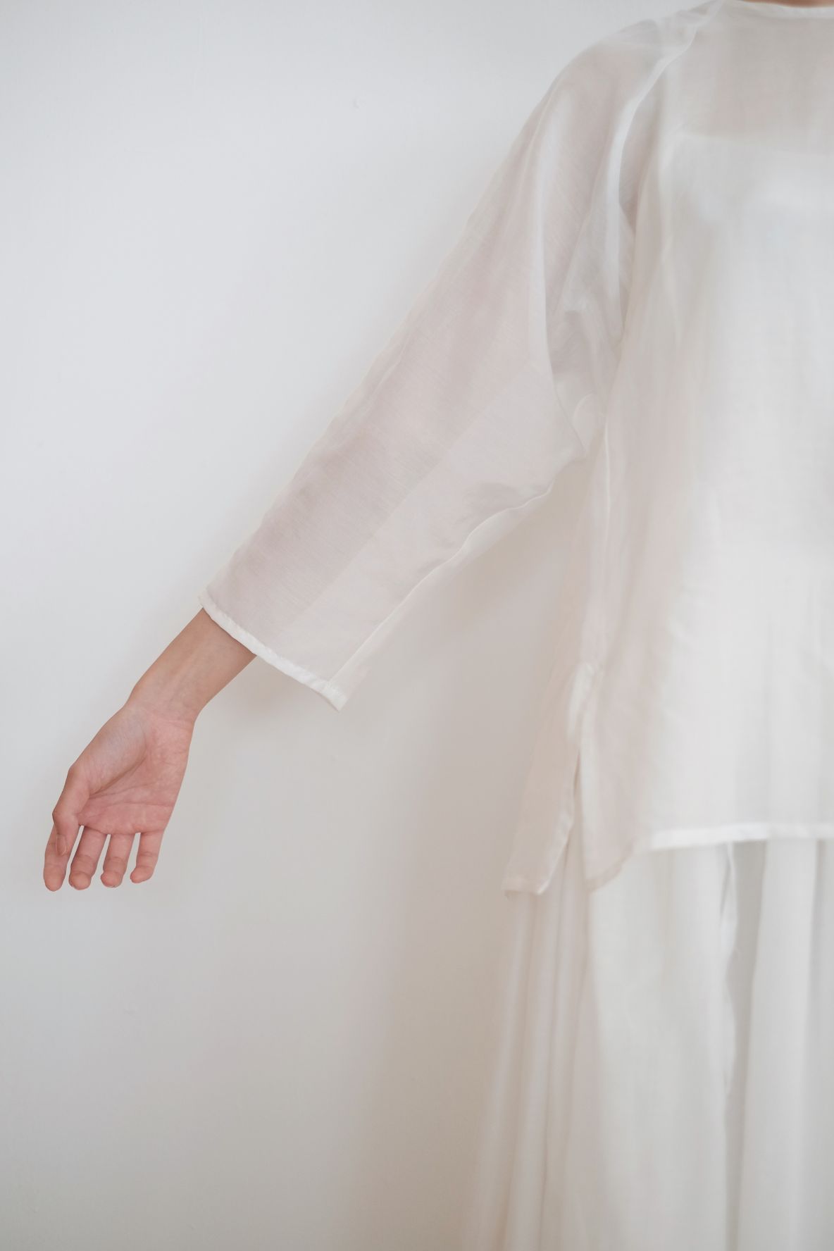 ・Dropped shoulders and four side-slits at hem