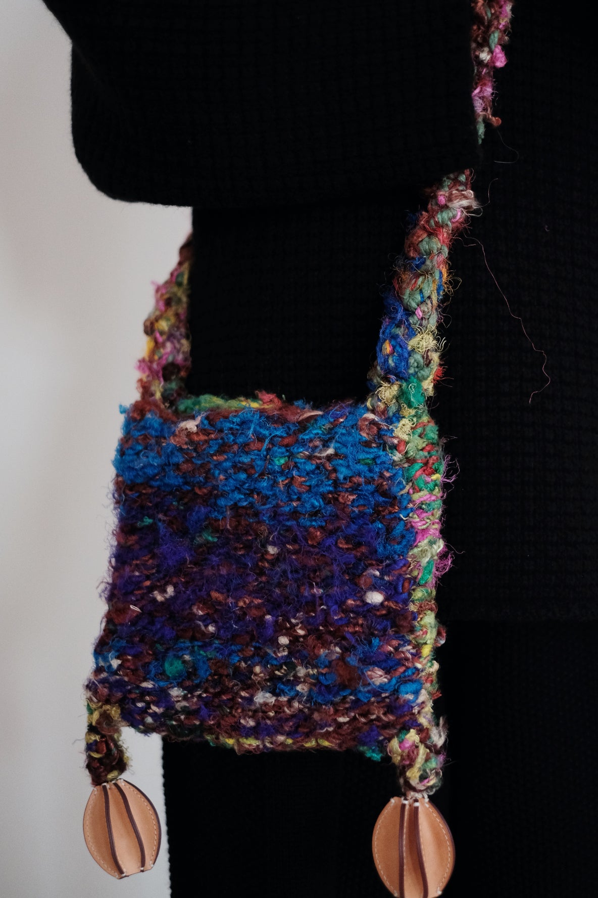 Knitted Banana Yarn with Vegetable Tanned Leather Olive