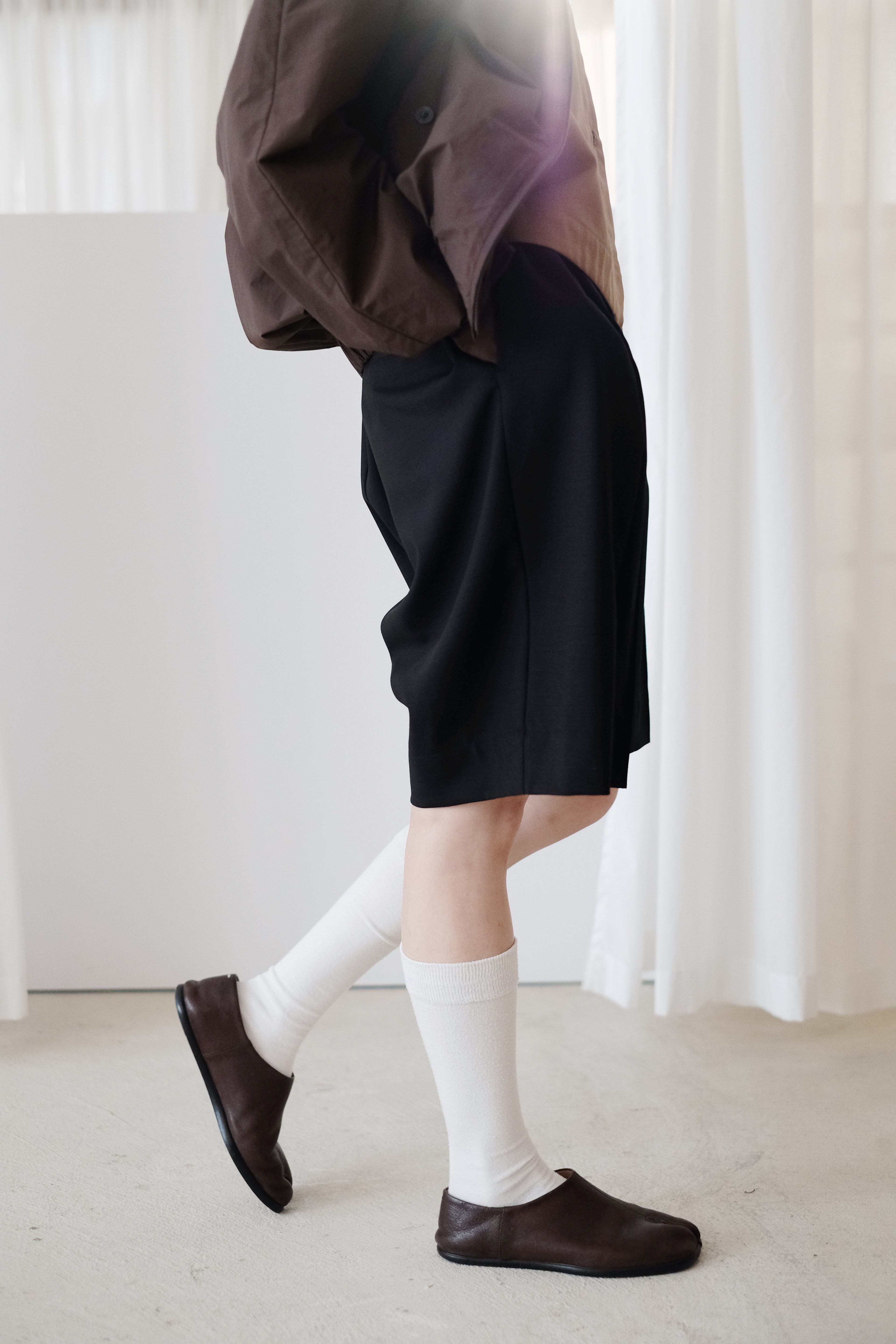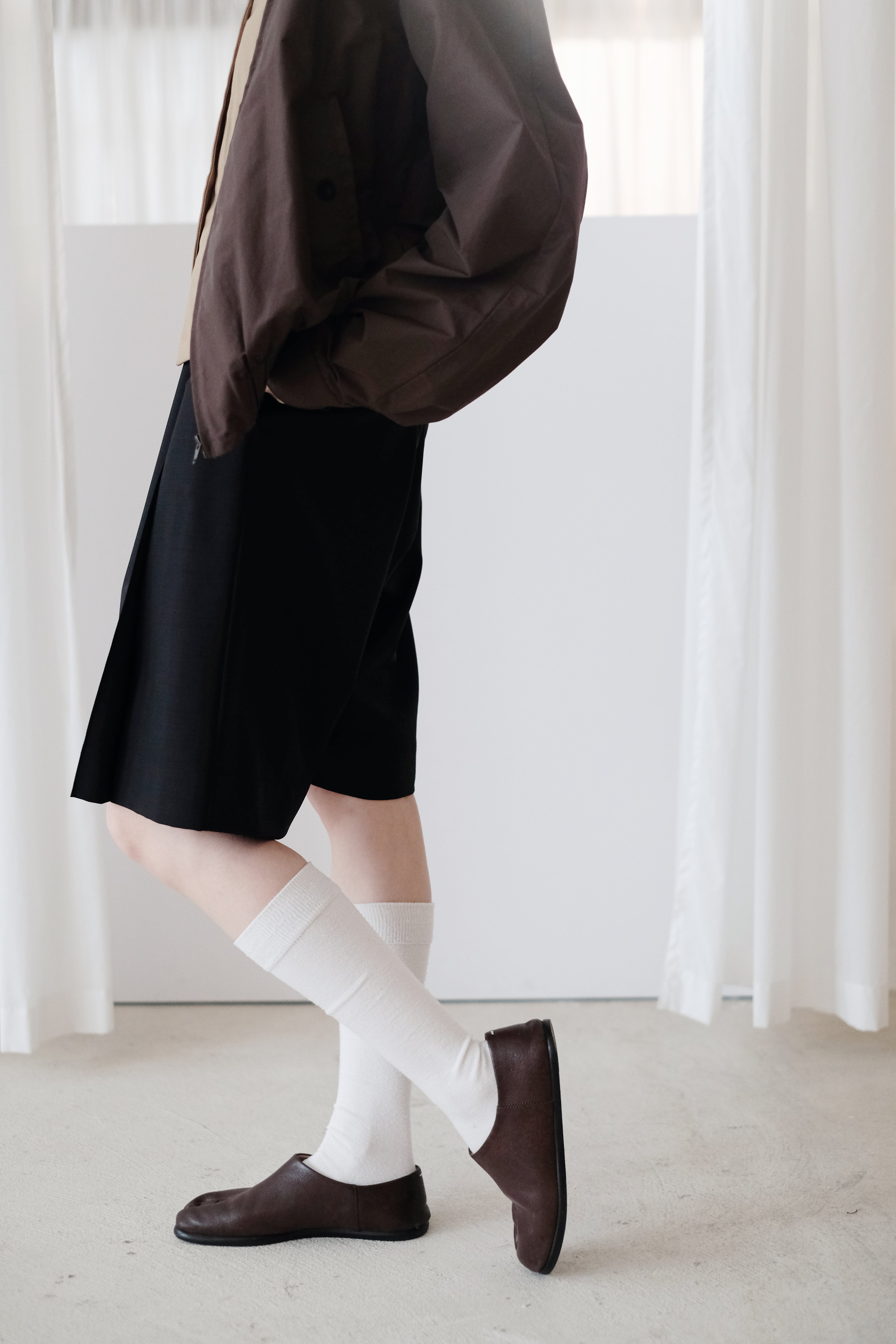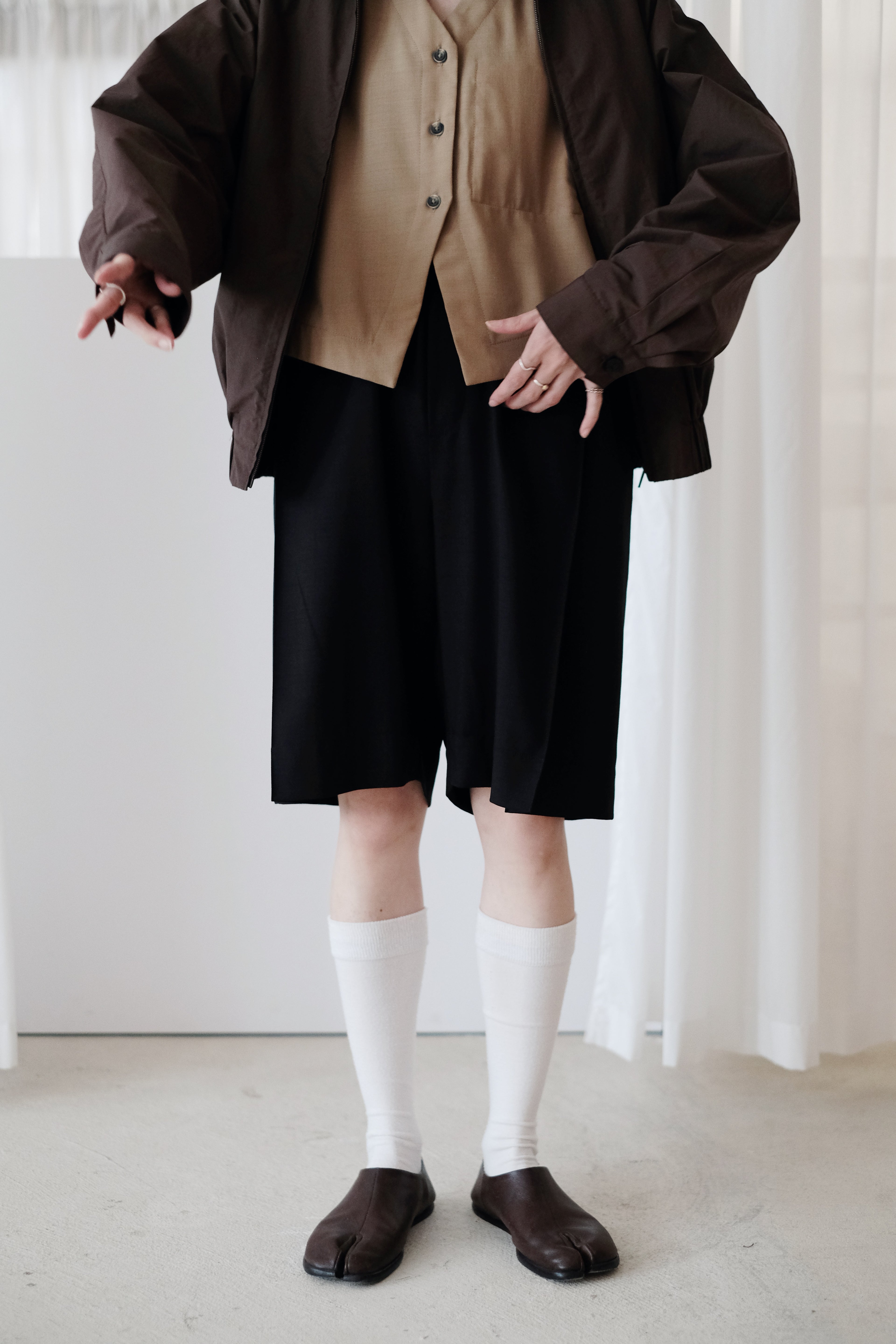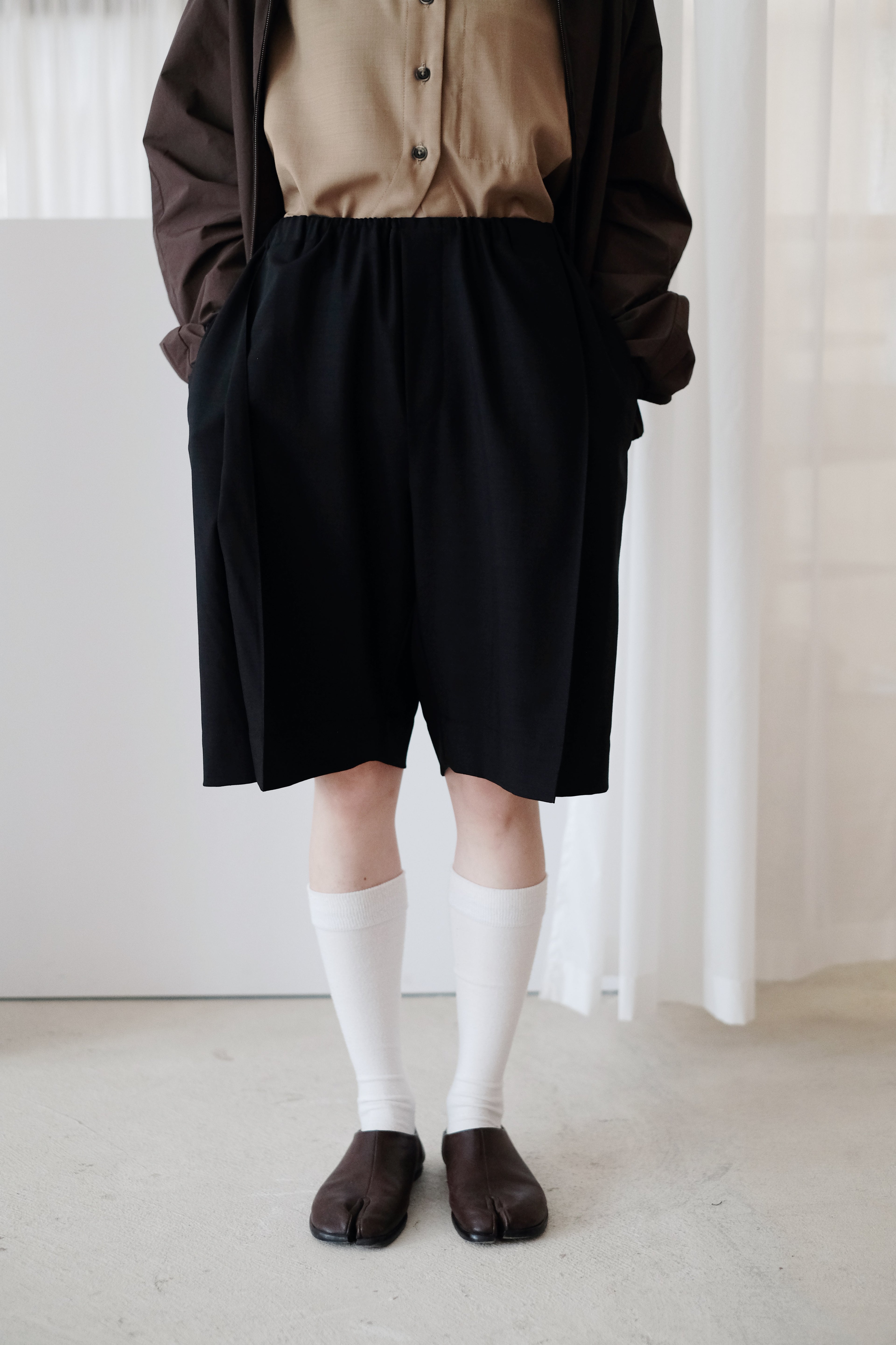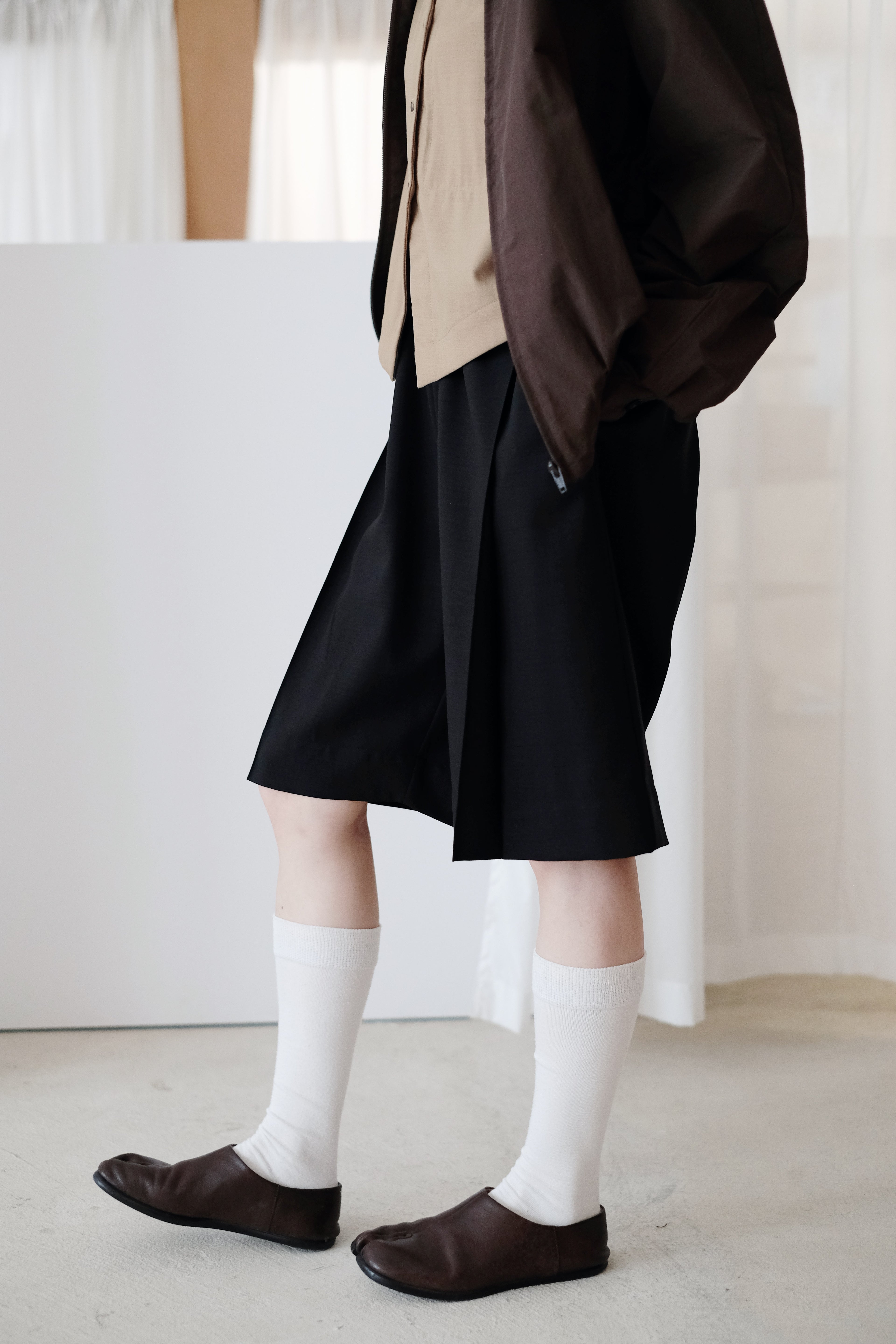 ARIA PLEAT-DETAIL SHORTS IN WOOL (BLACK) PRE-ORDER