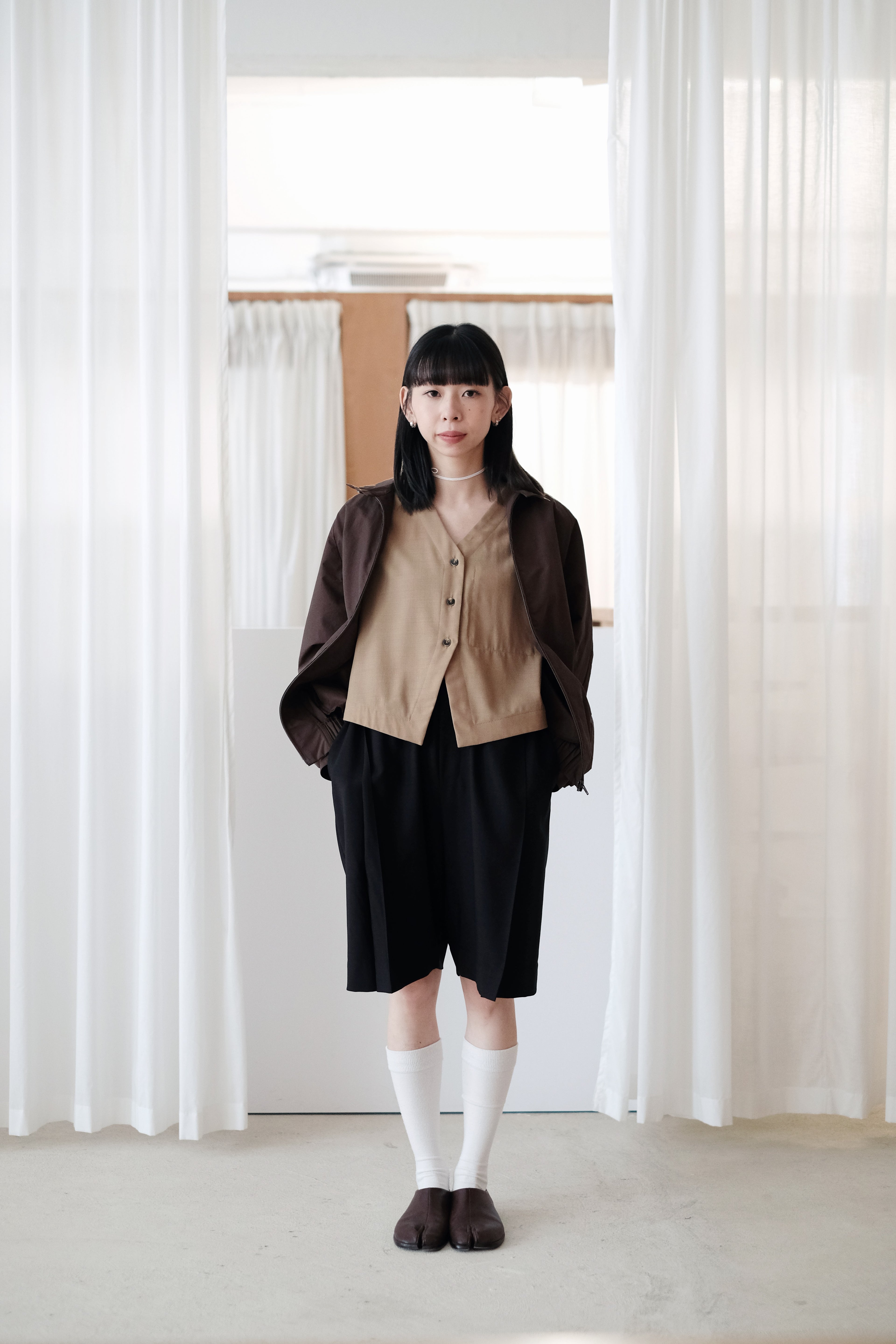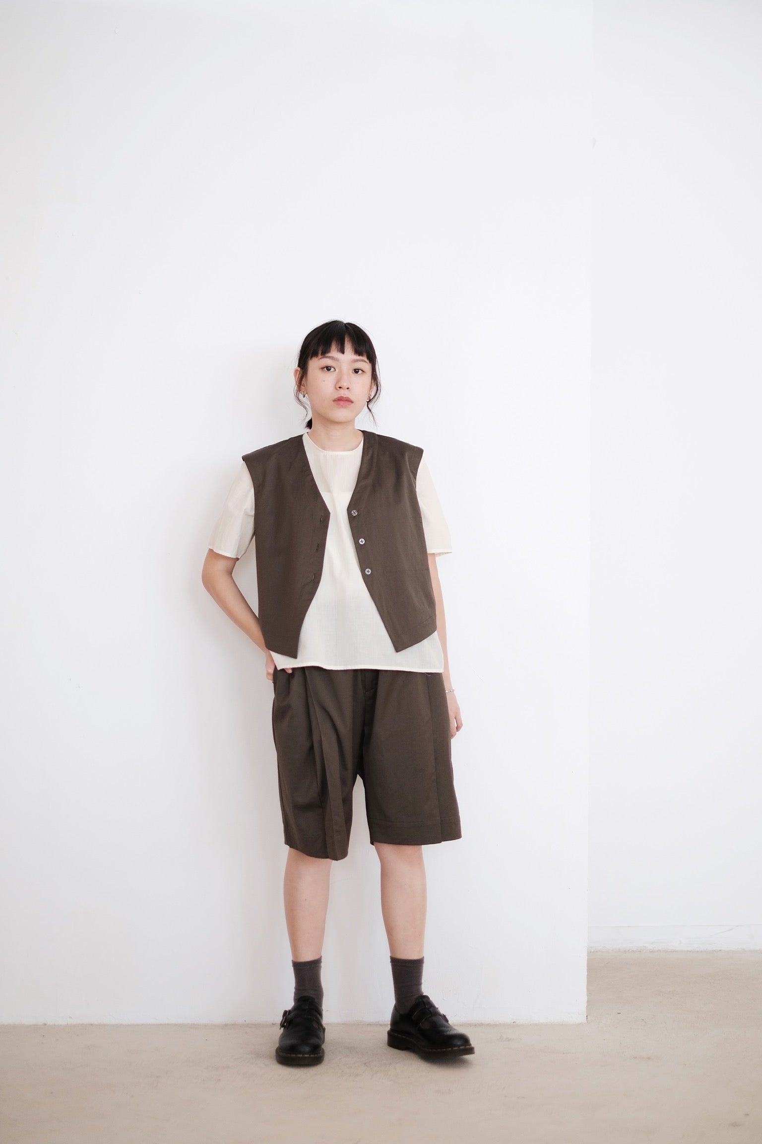 ARIA PLEAT-DETAIL SHORTS (BEIGE)