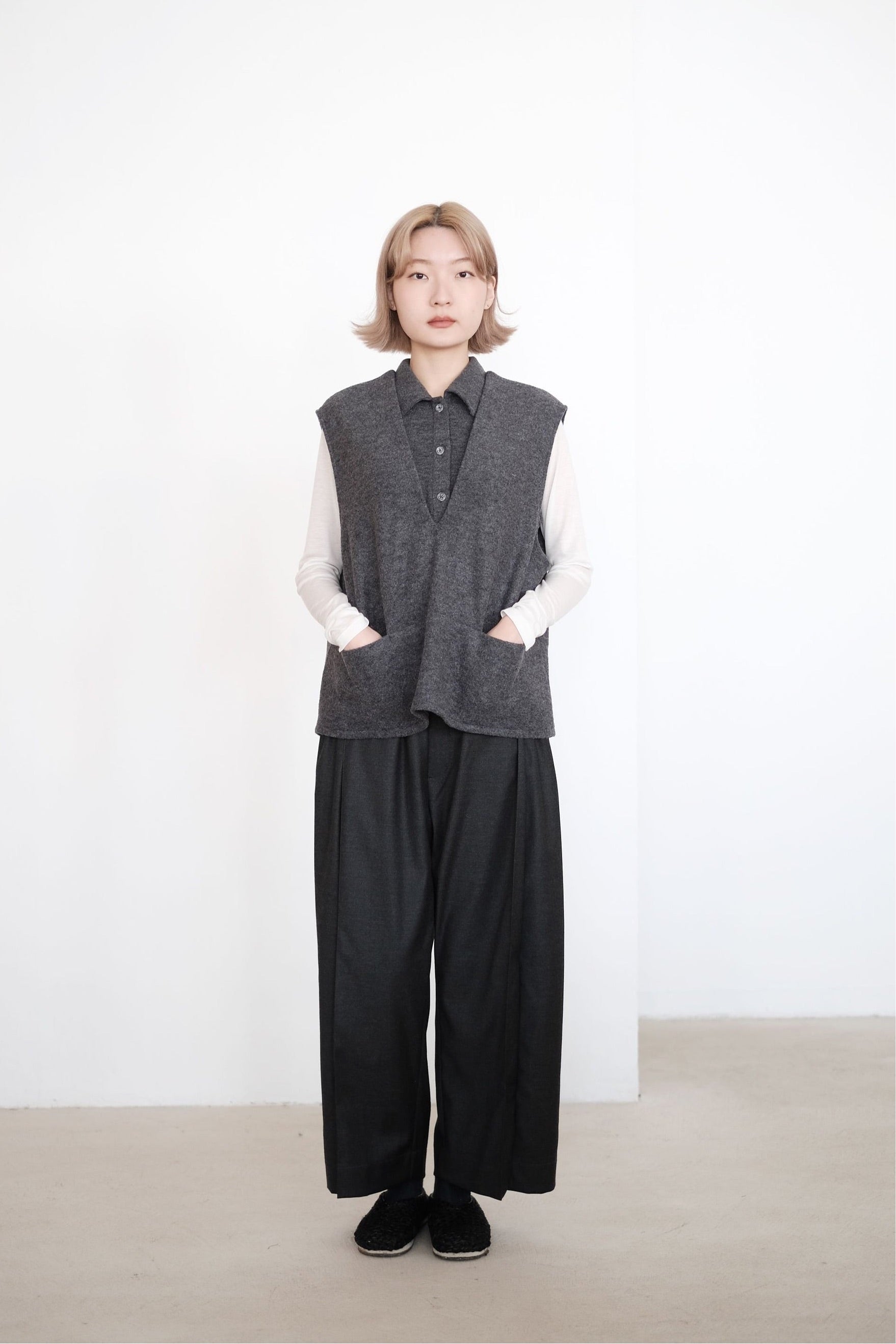 ARIA PLEAT-DETAIL PANTS (DARK GREY)