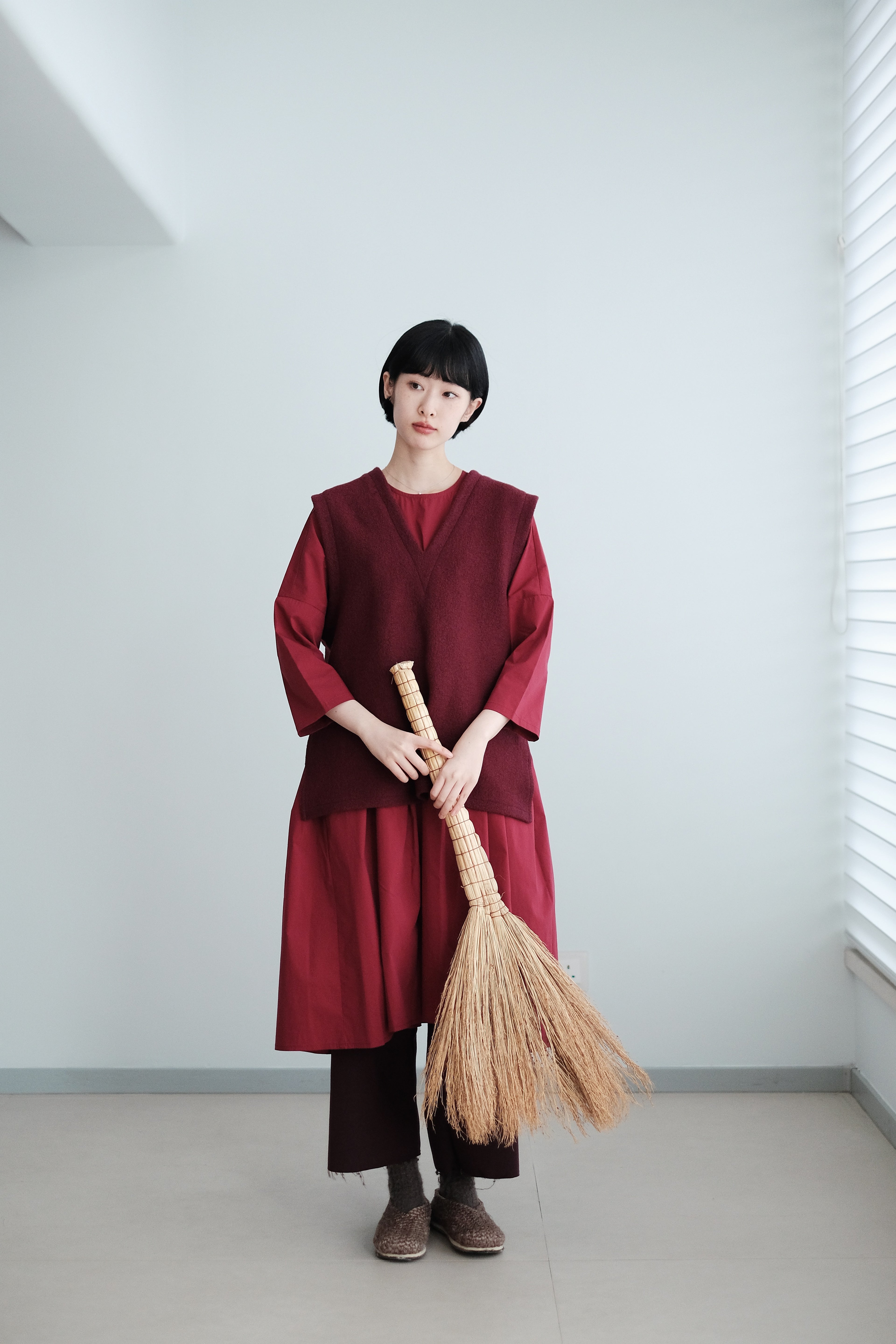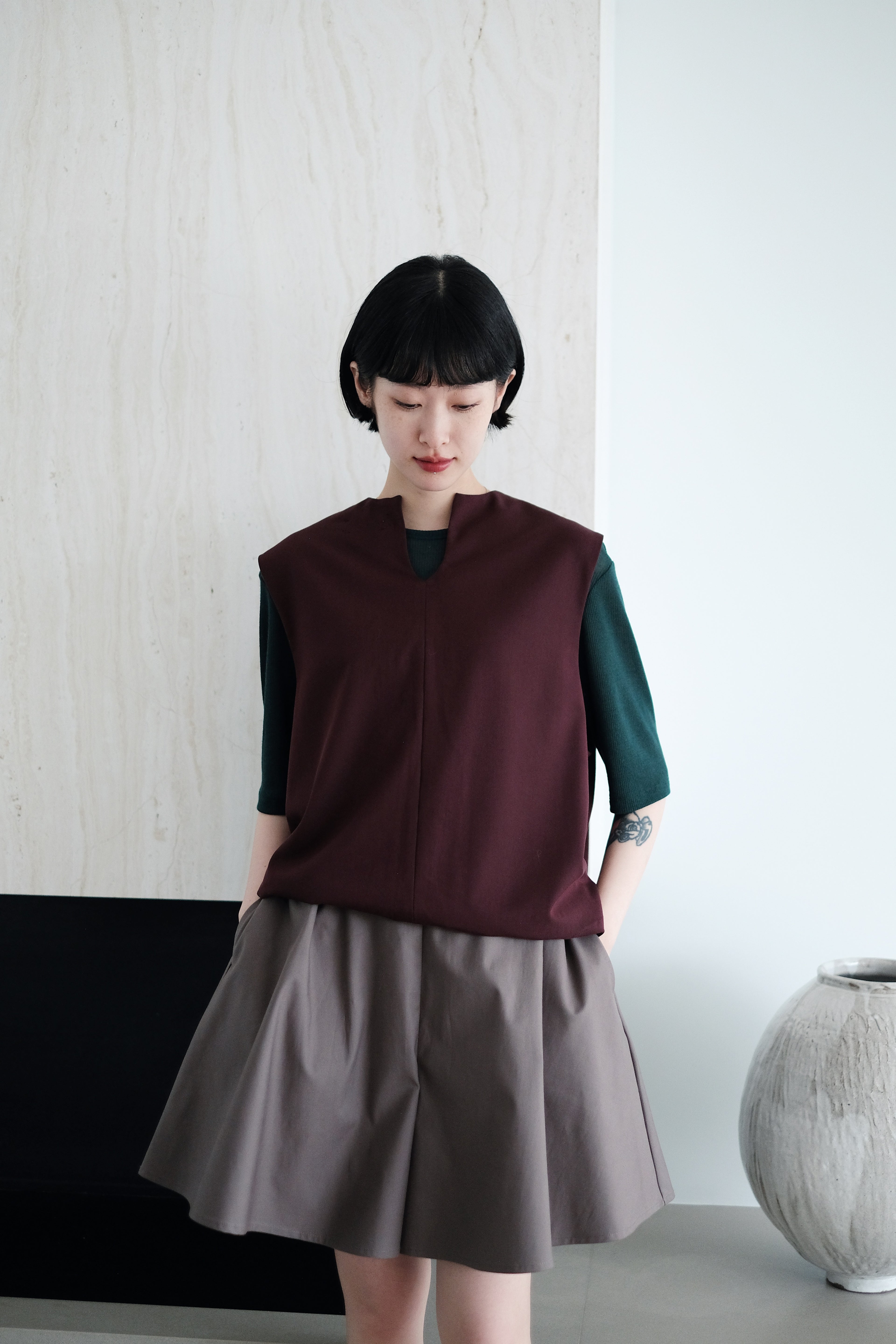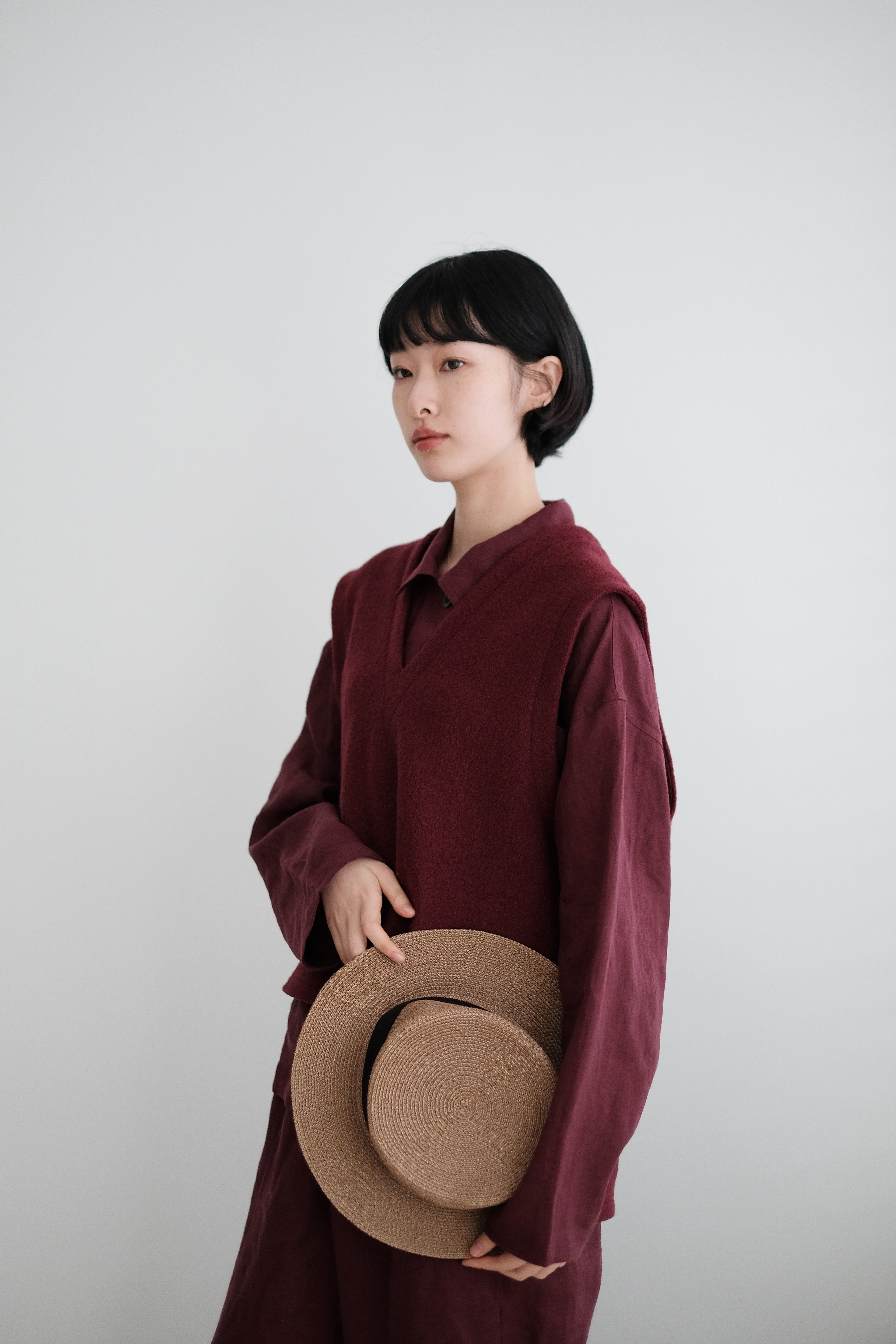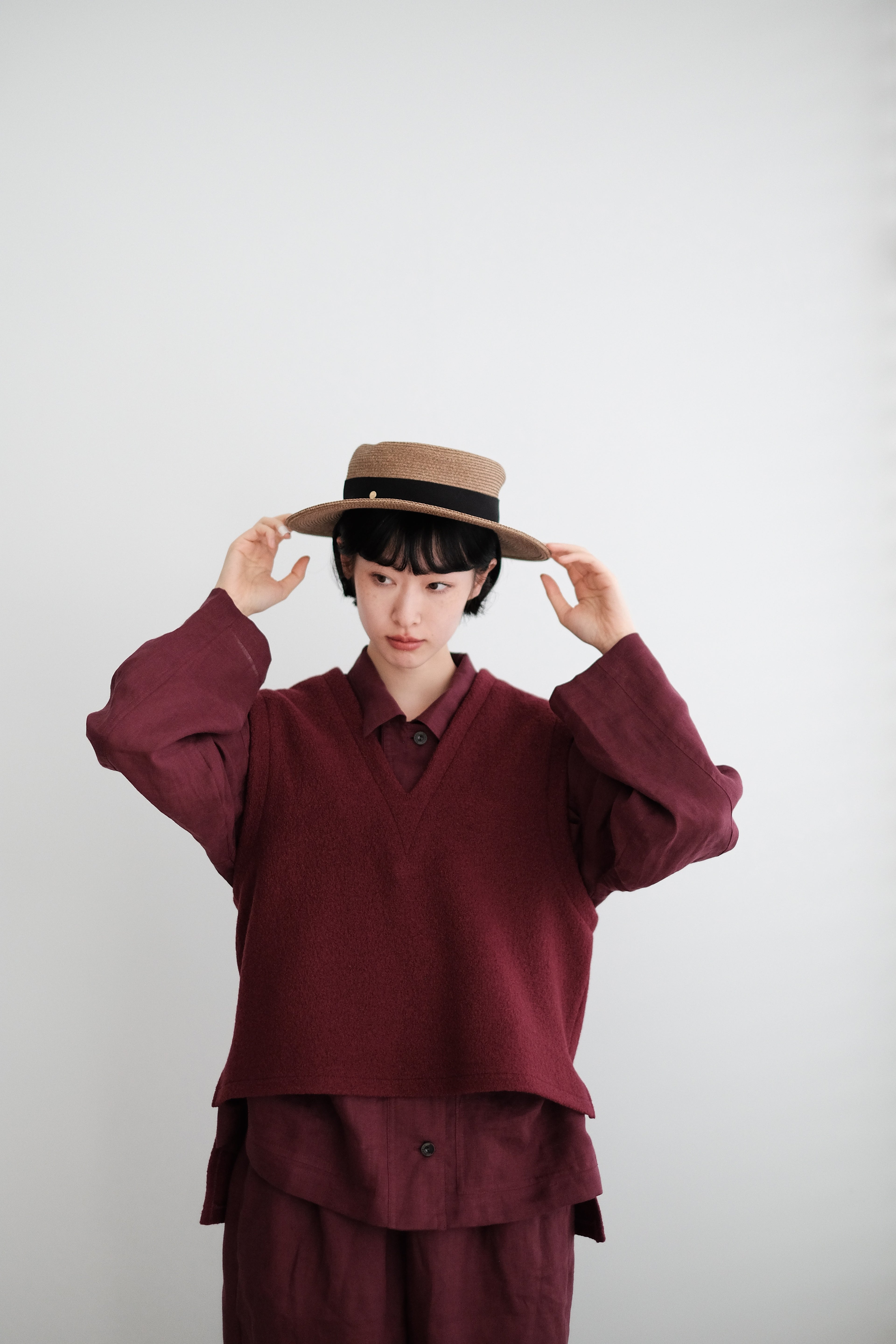 CHO V-NECK VEST (BURGUNDY)