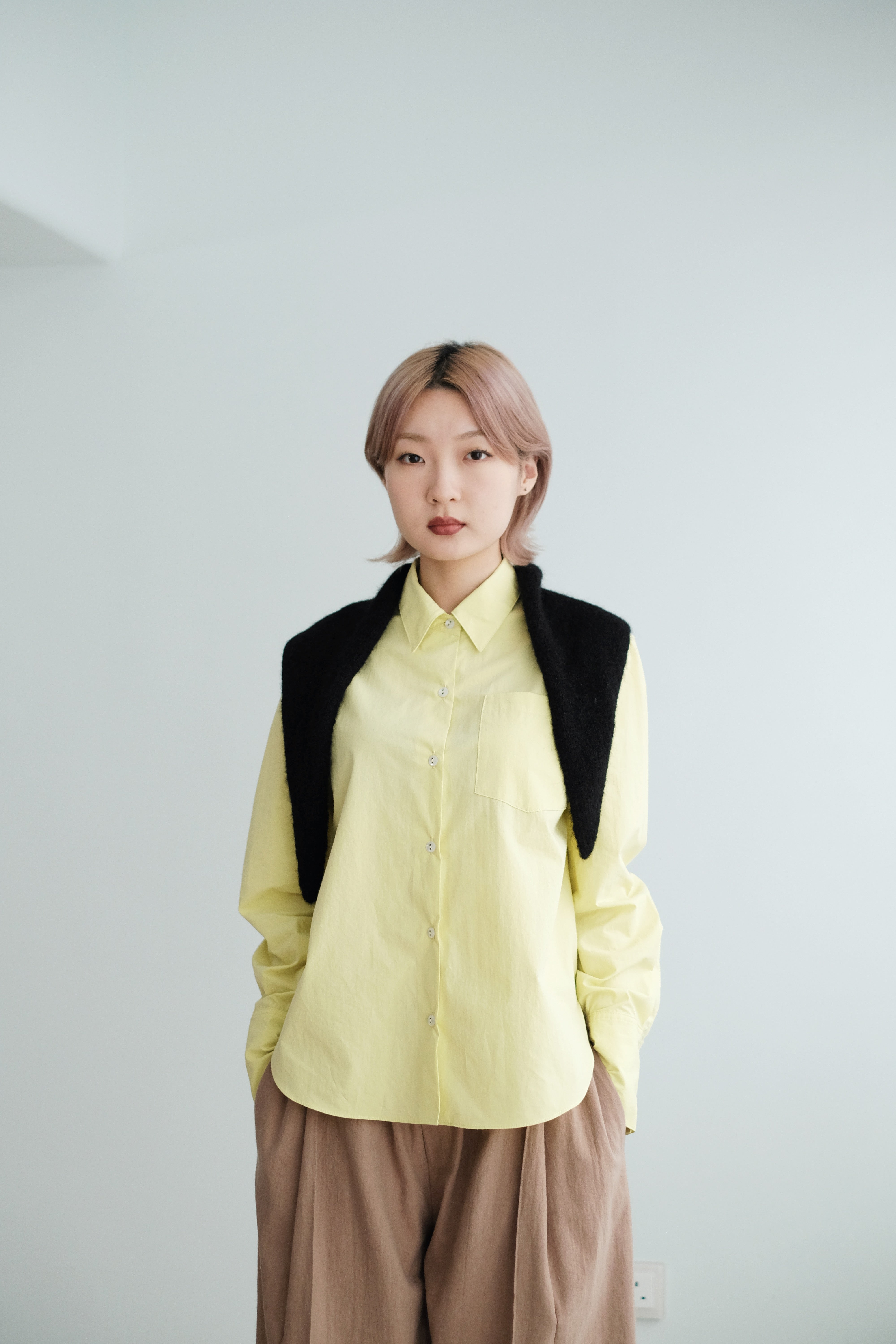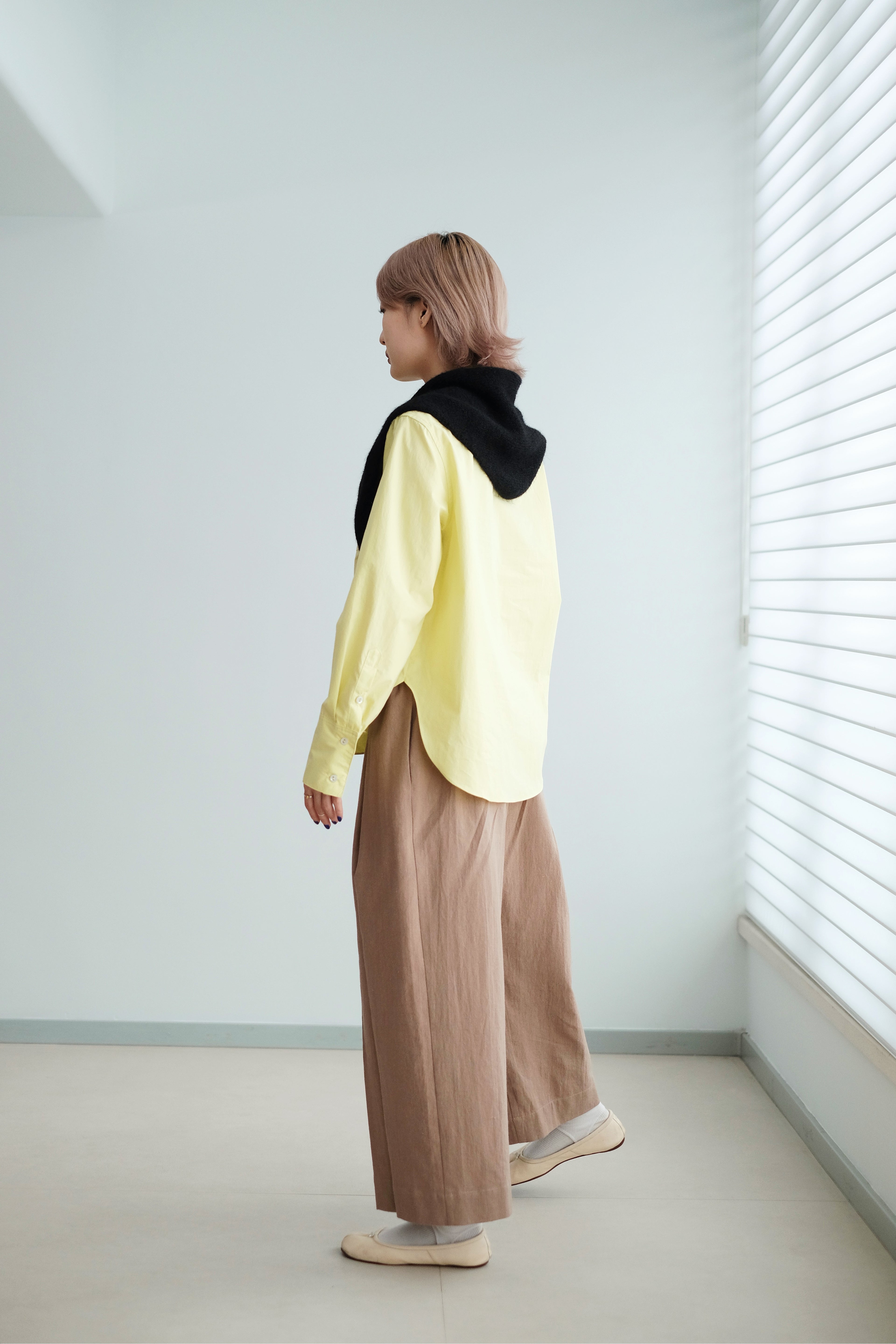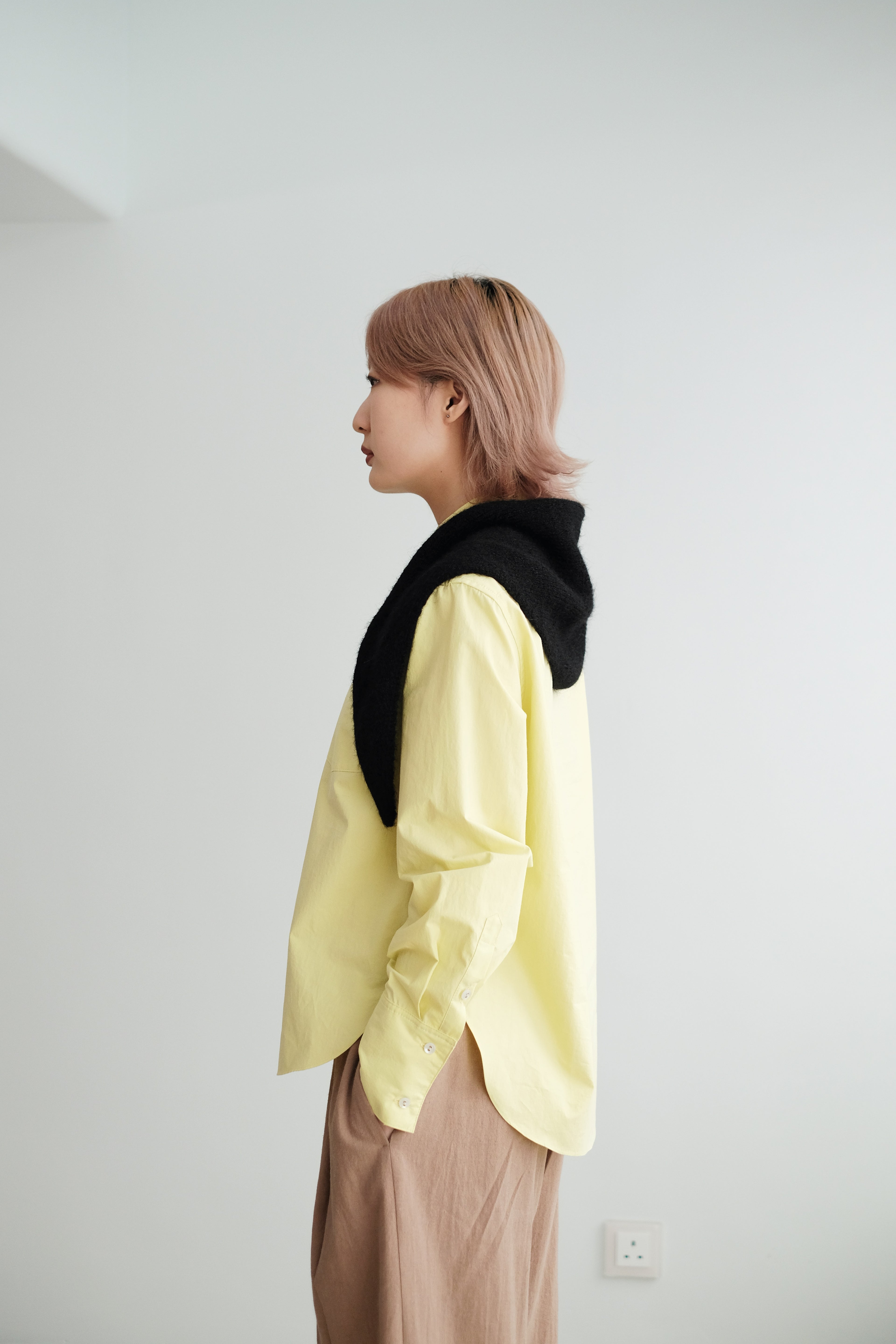 This light lemon-yellow shirt features a fit-size silhouette that stays clean and structured without feeling tight.