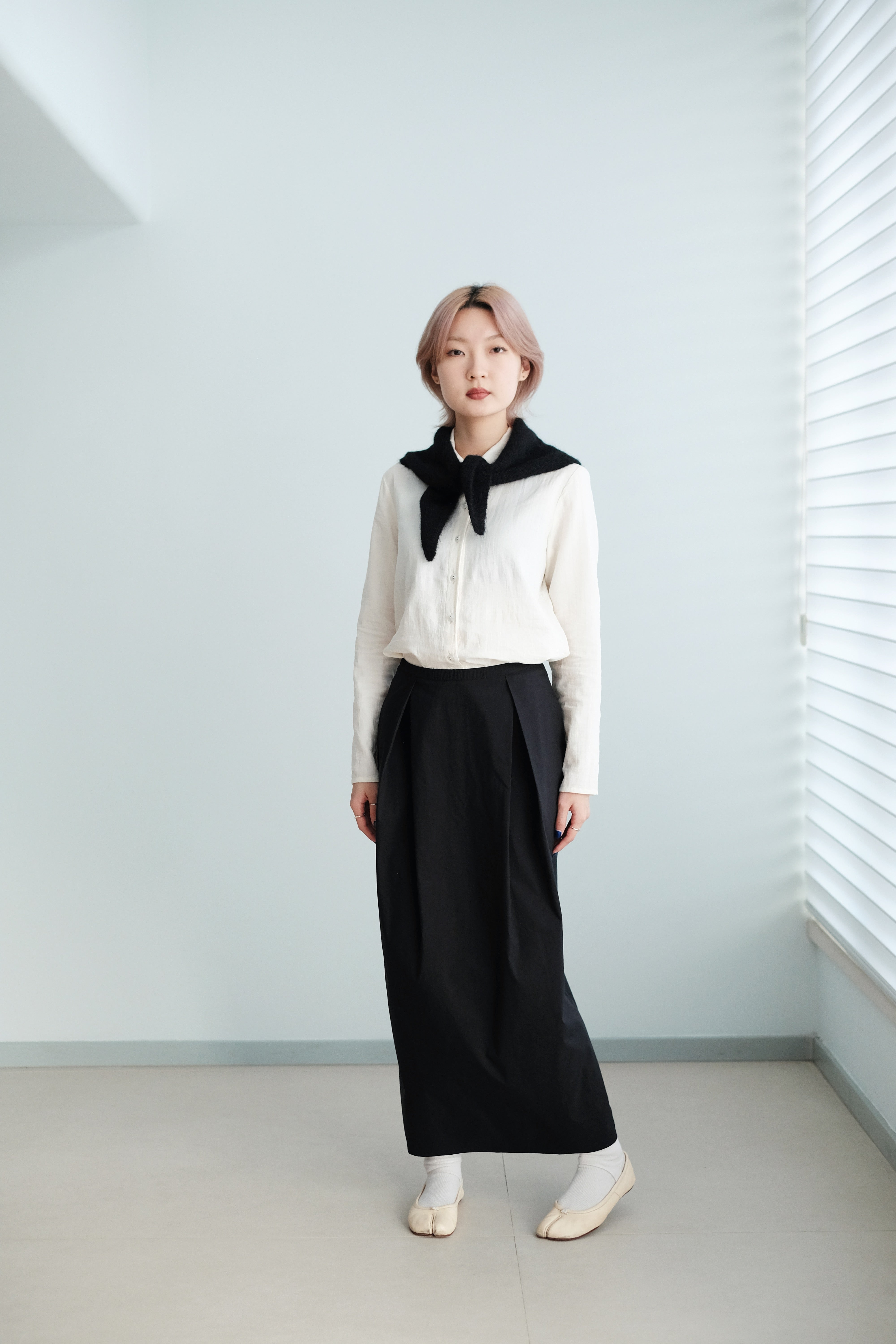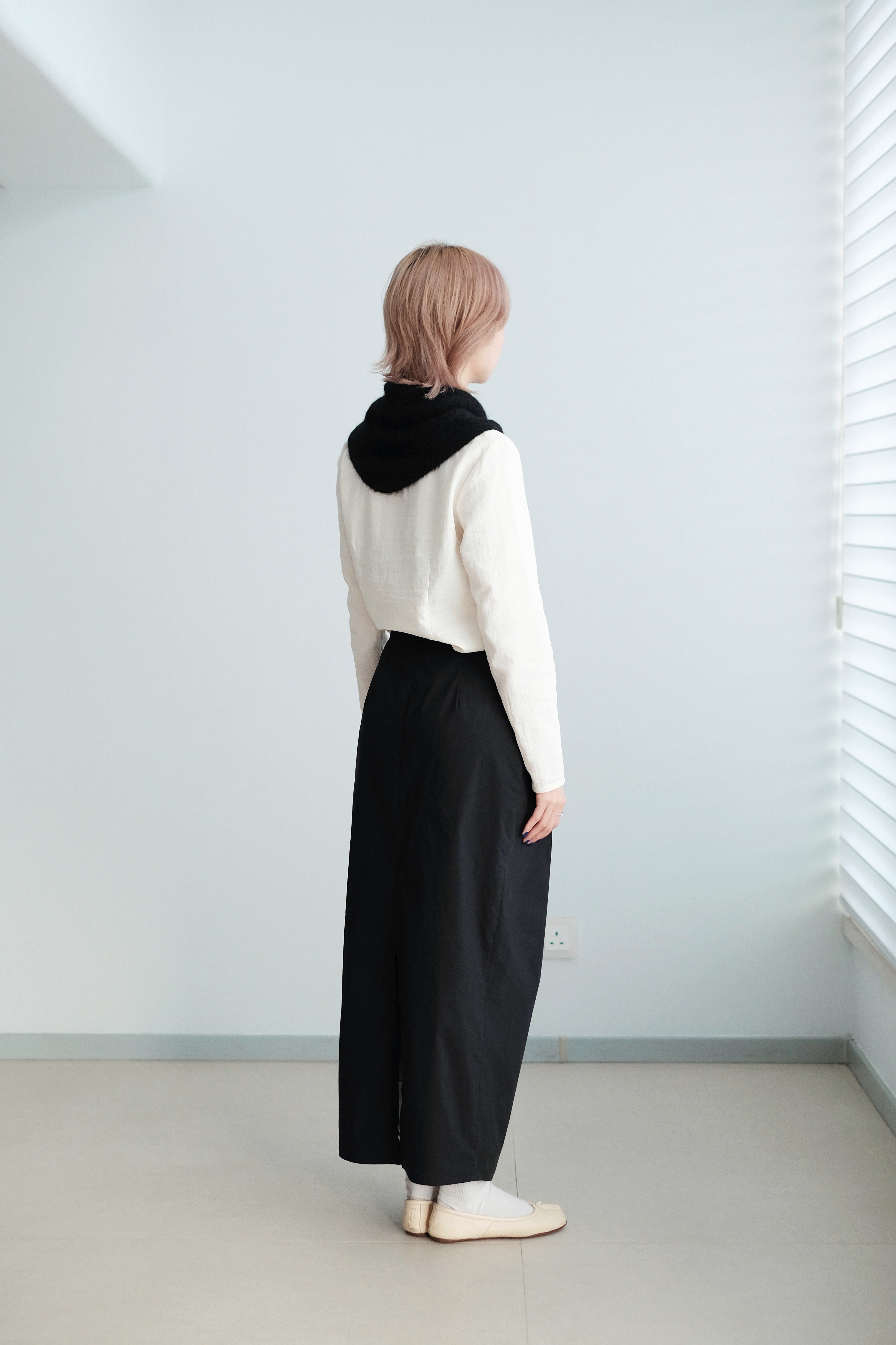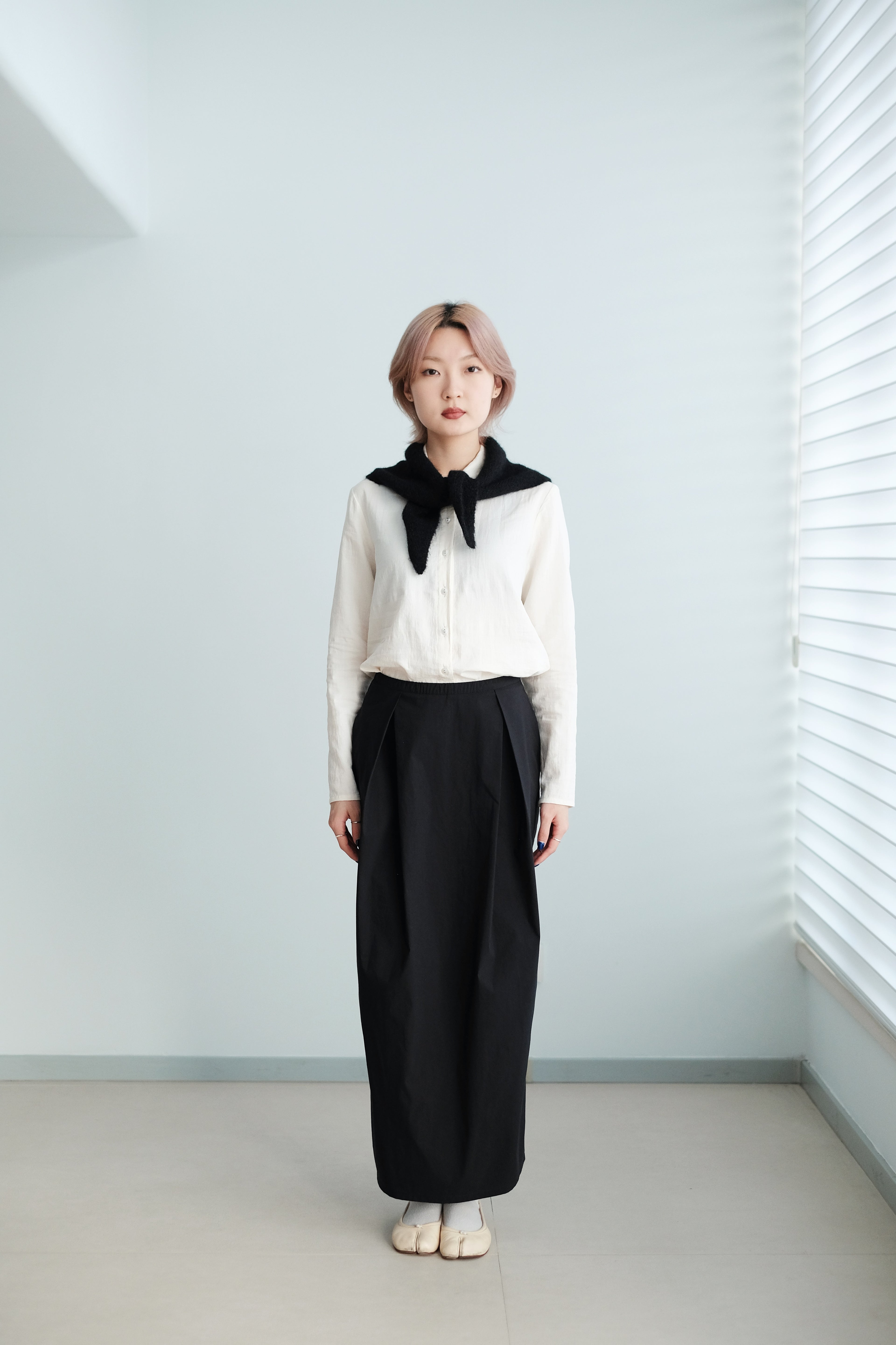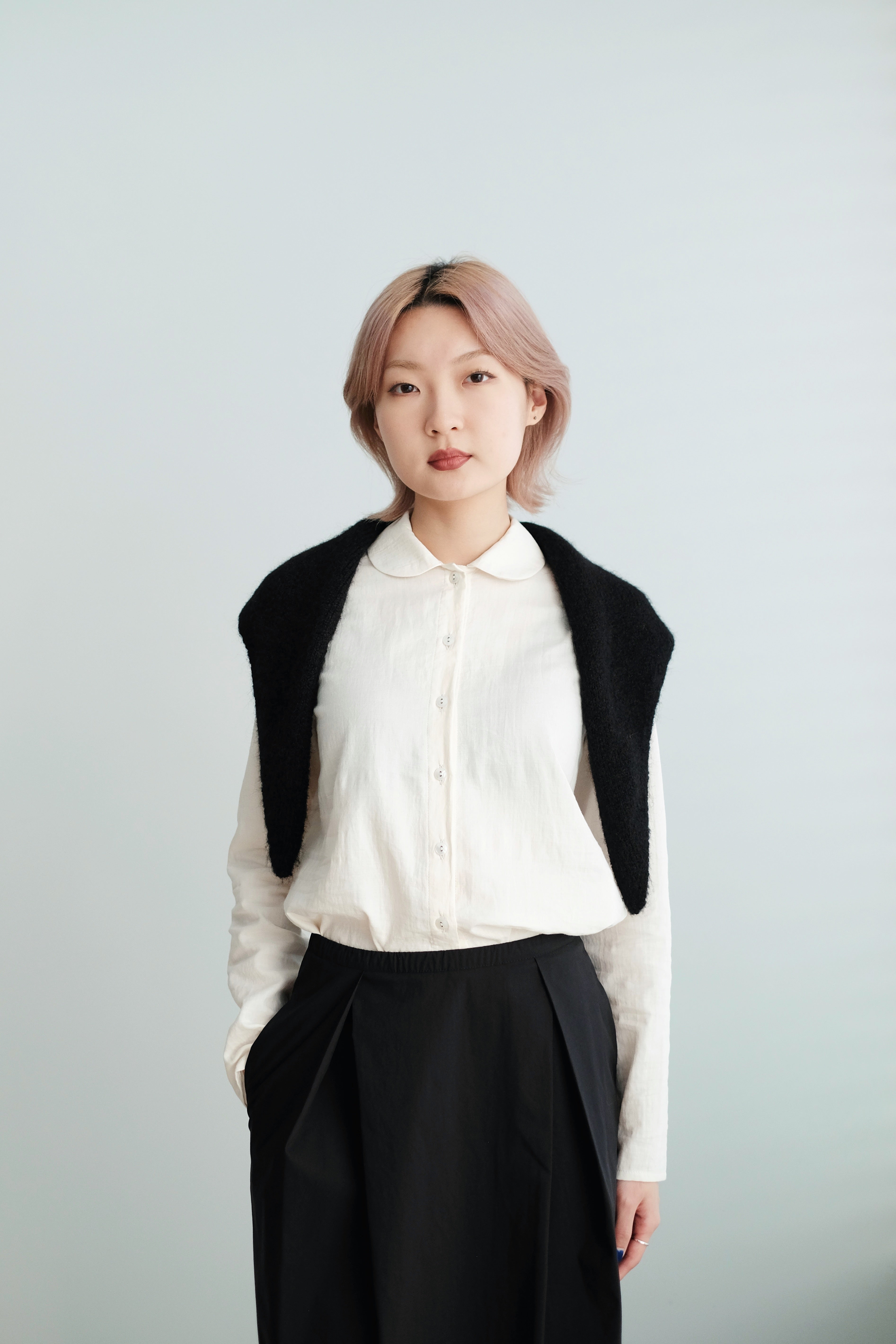 A soft, rounded-collar shirt with clean, minimal lines and a naturally gentle look.
