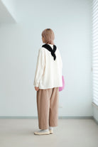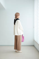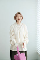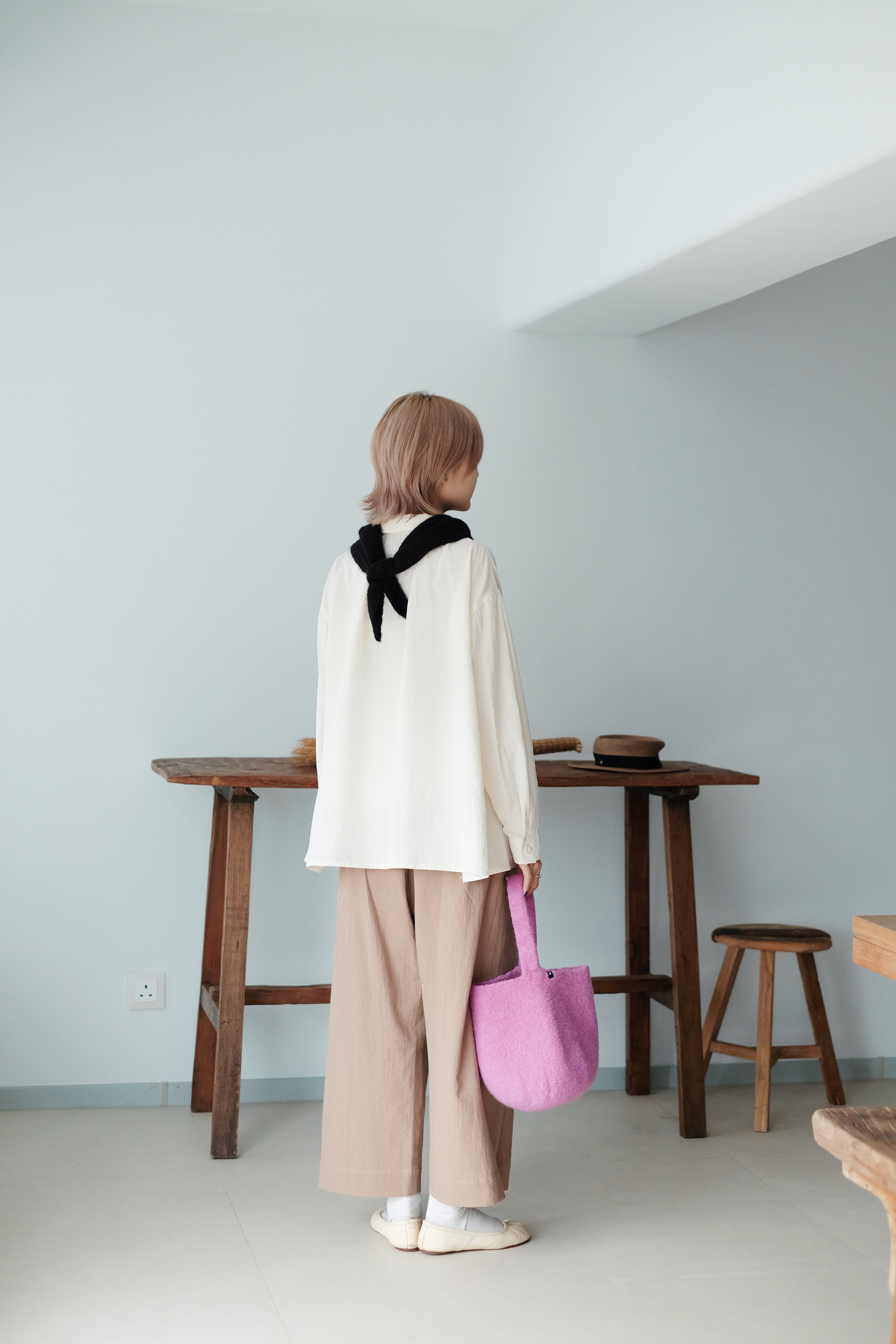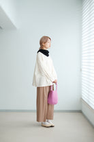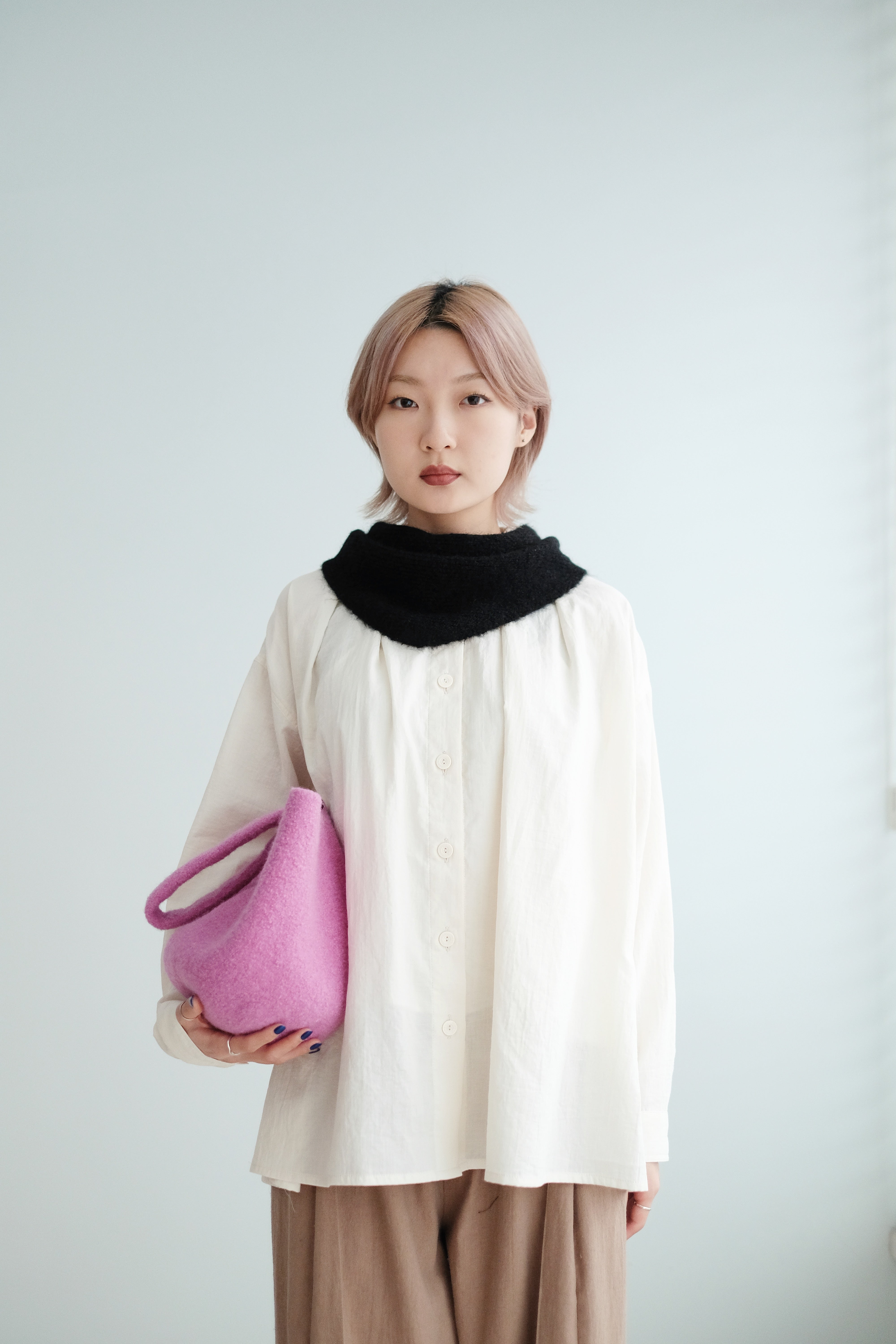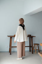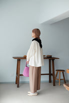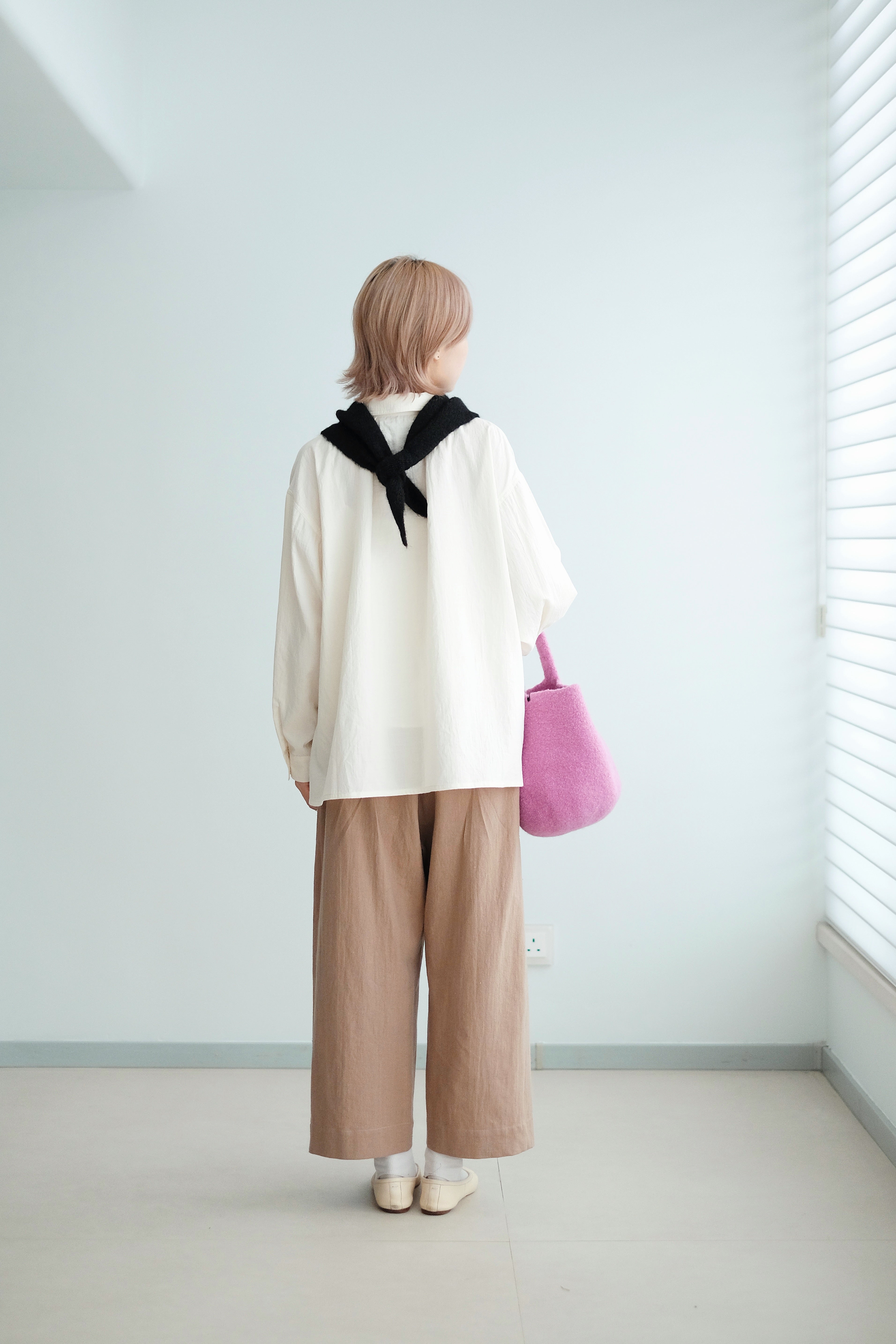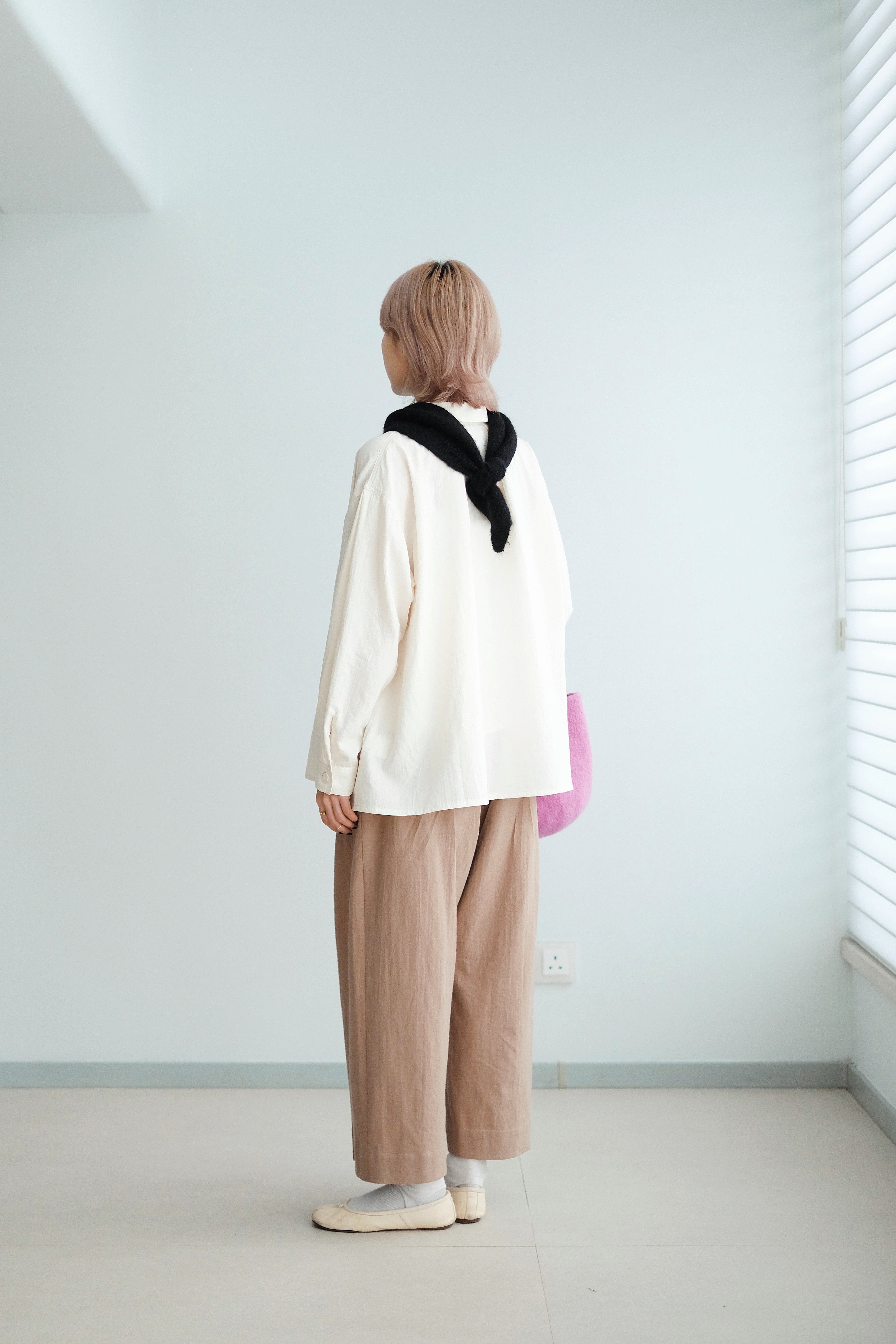 This white shirt is crafted from a lightweight cotton-blend fabric with a natural crinkled texture—soft, breathable, and subtly structured. Delicate gathers at the neckline create gentle volume without looking bulky. Designed in a relaxed silhouette with a rounded hem, it flatters the body effortlessly and works perfectly both on its own or as a layering piece.