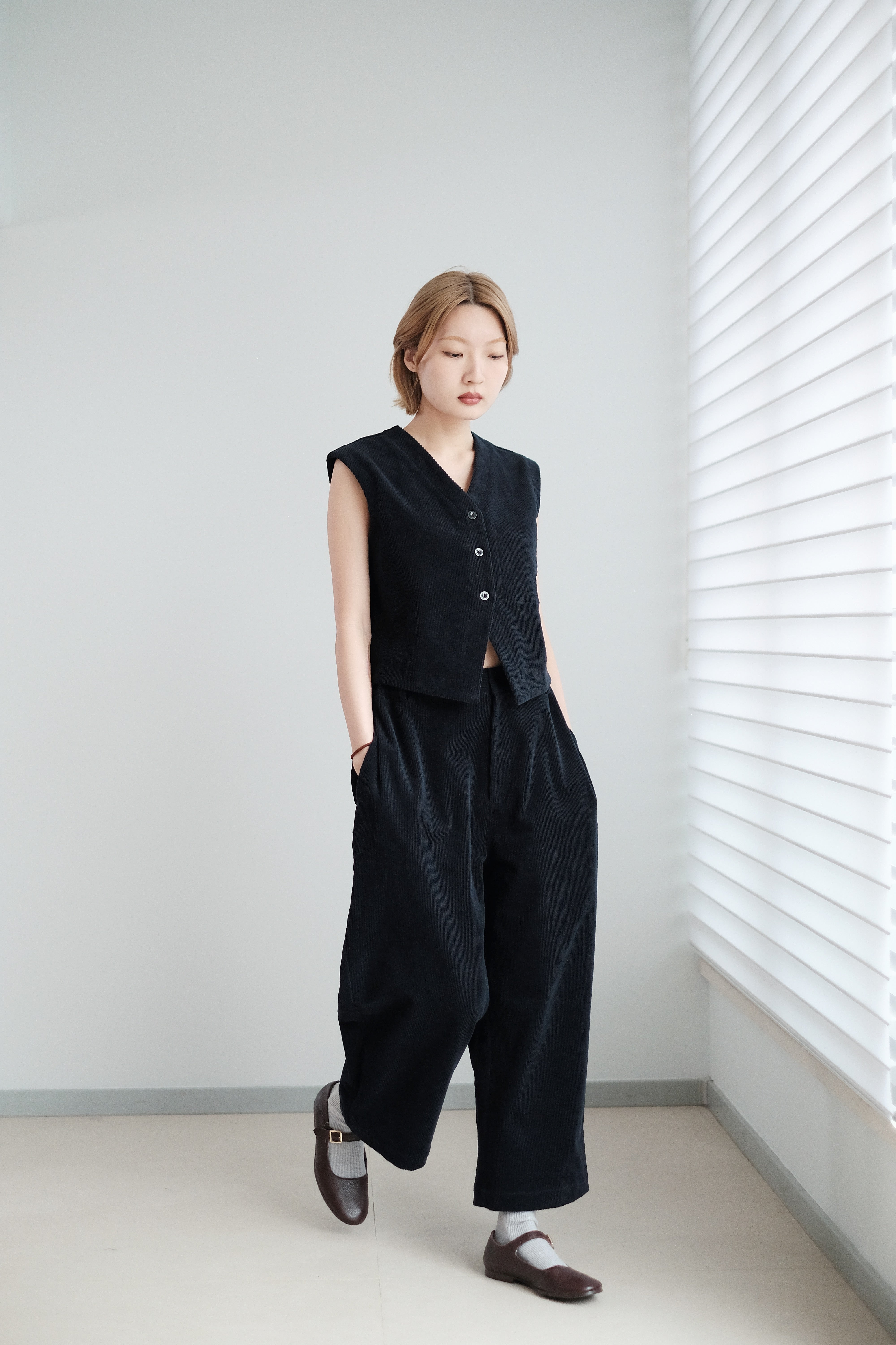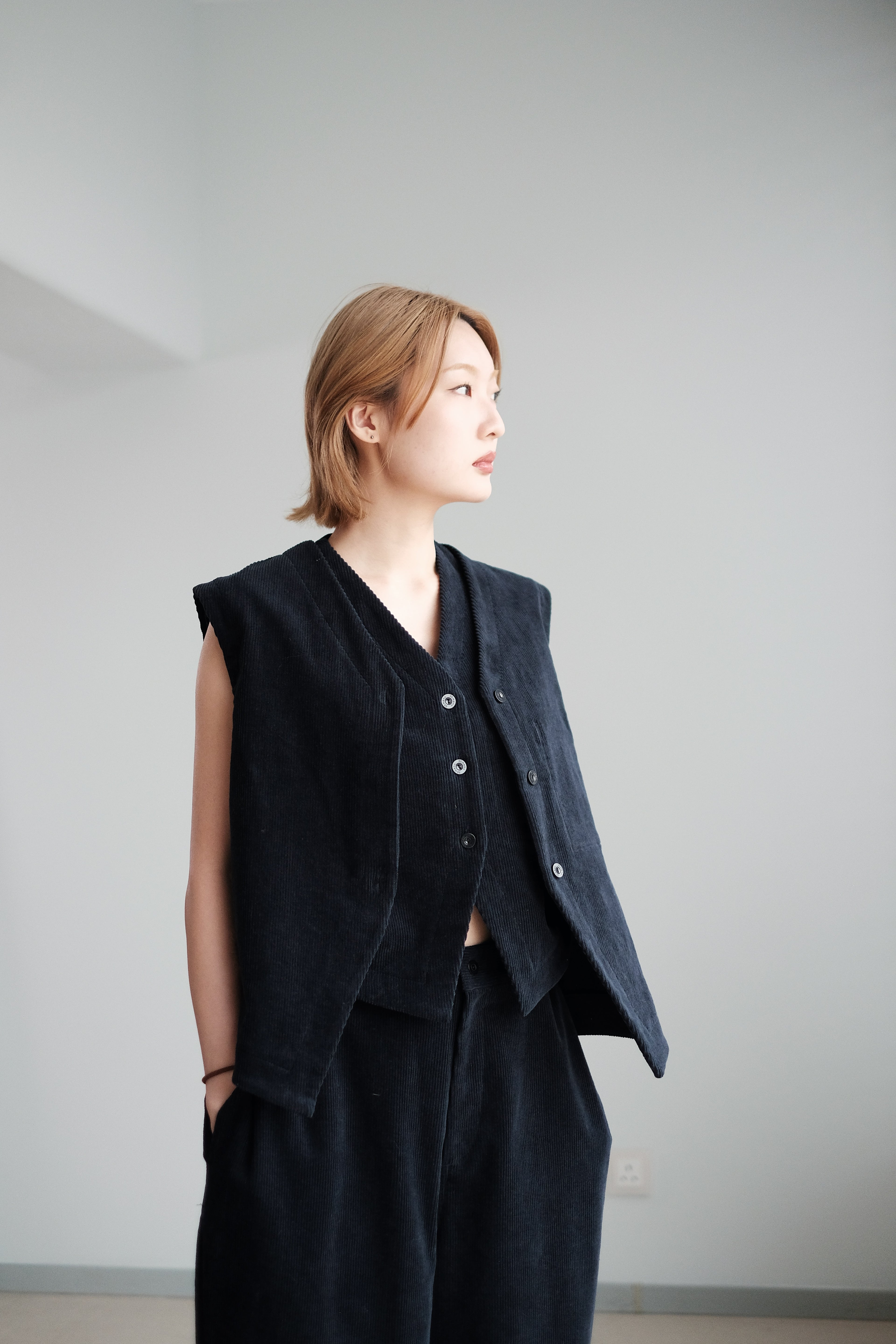 Crafted from classic corduroy, this vest comes in two silhouettes—cropped for a sharp finish, and longline for added coverage.