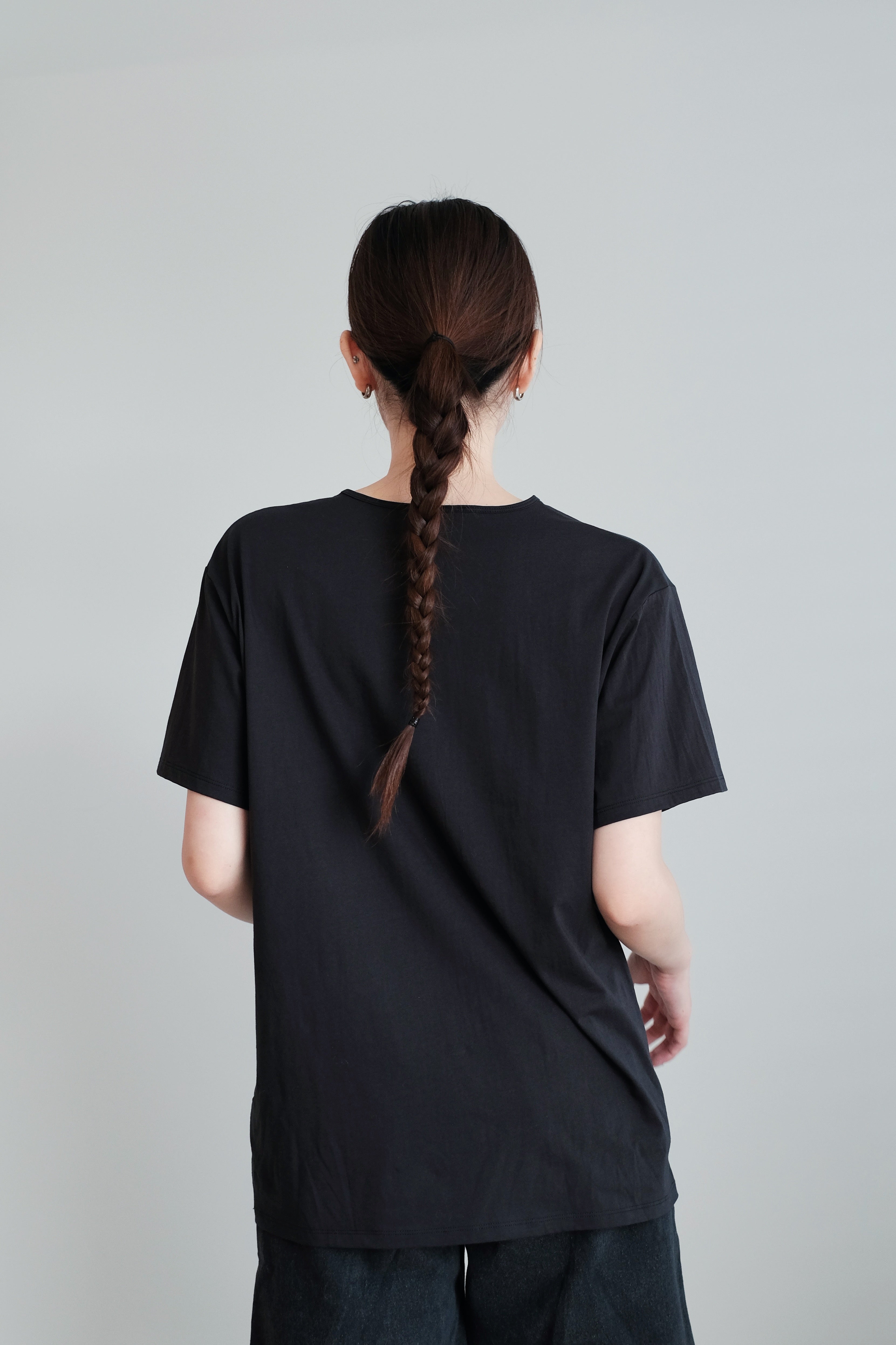 As serene as a midnight sky, this deep navy T-shirt is crafted from pure cotton with a minimalist cut for a refined yet effortless look. The fabric is soft, breathable, and moves fluidly with you. Its understated tone makes it versatile — perfect worn alone for a relaxed vibe or layered to create depth, a quiet essential in any wardrobe.