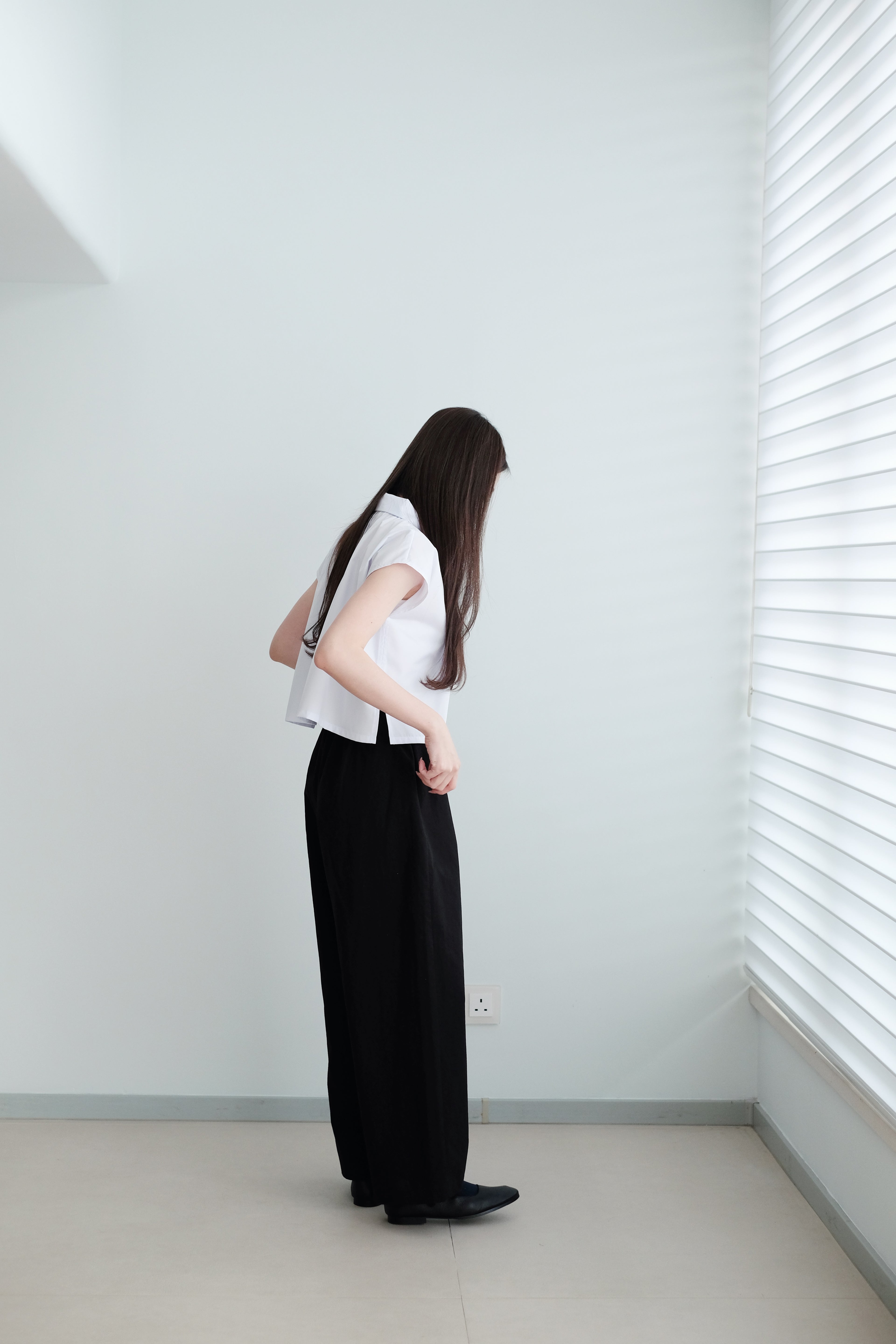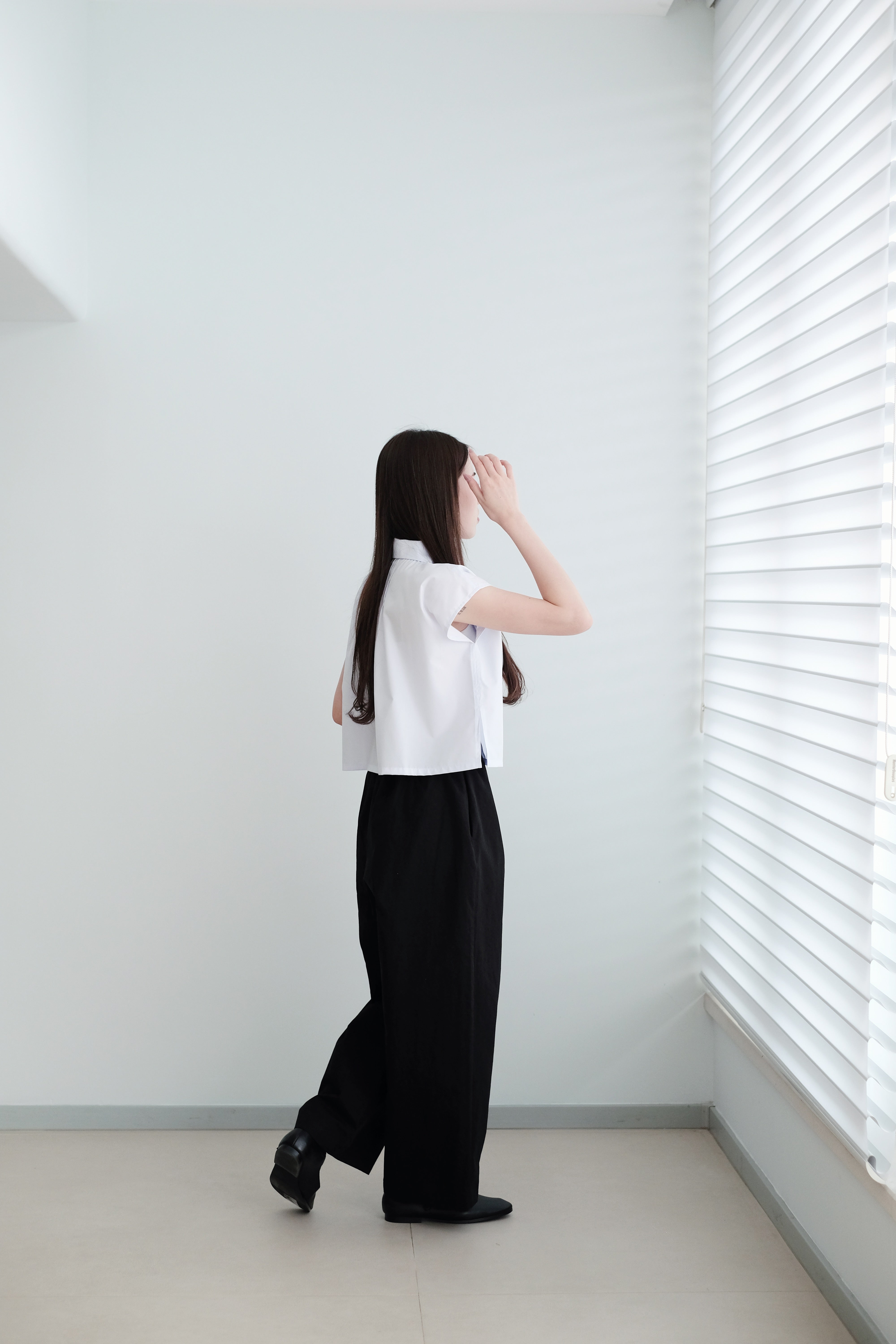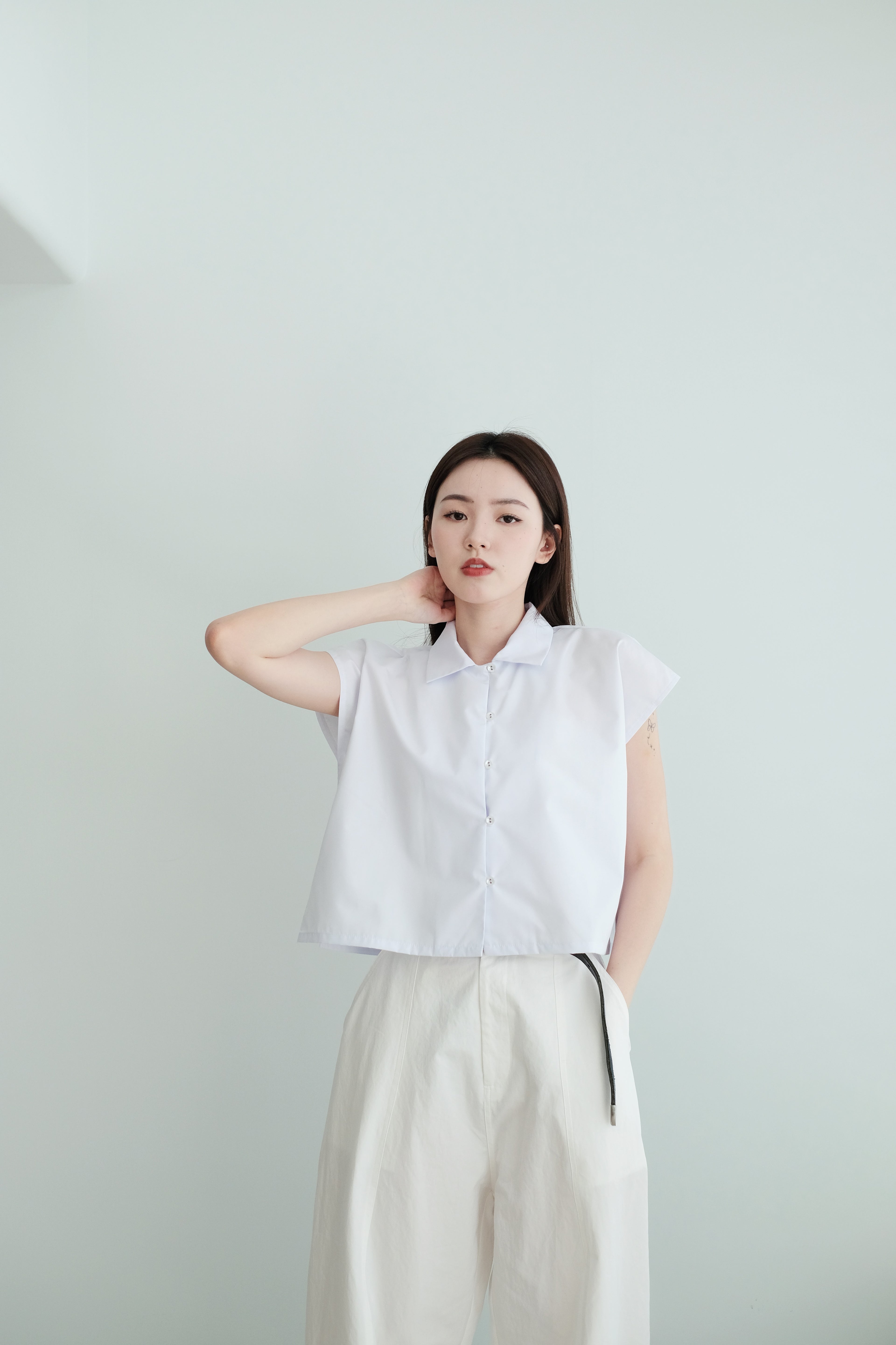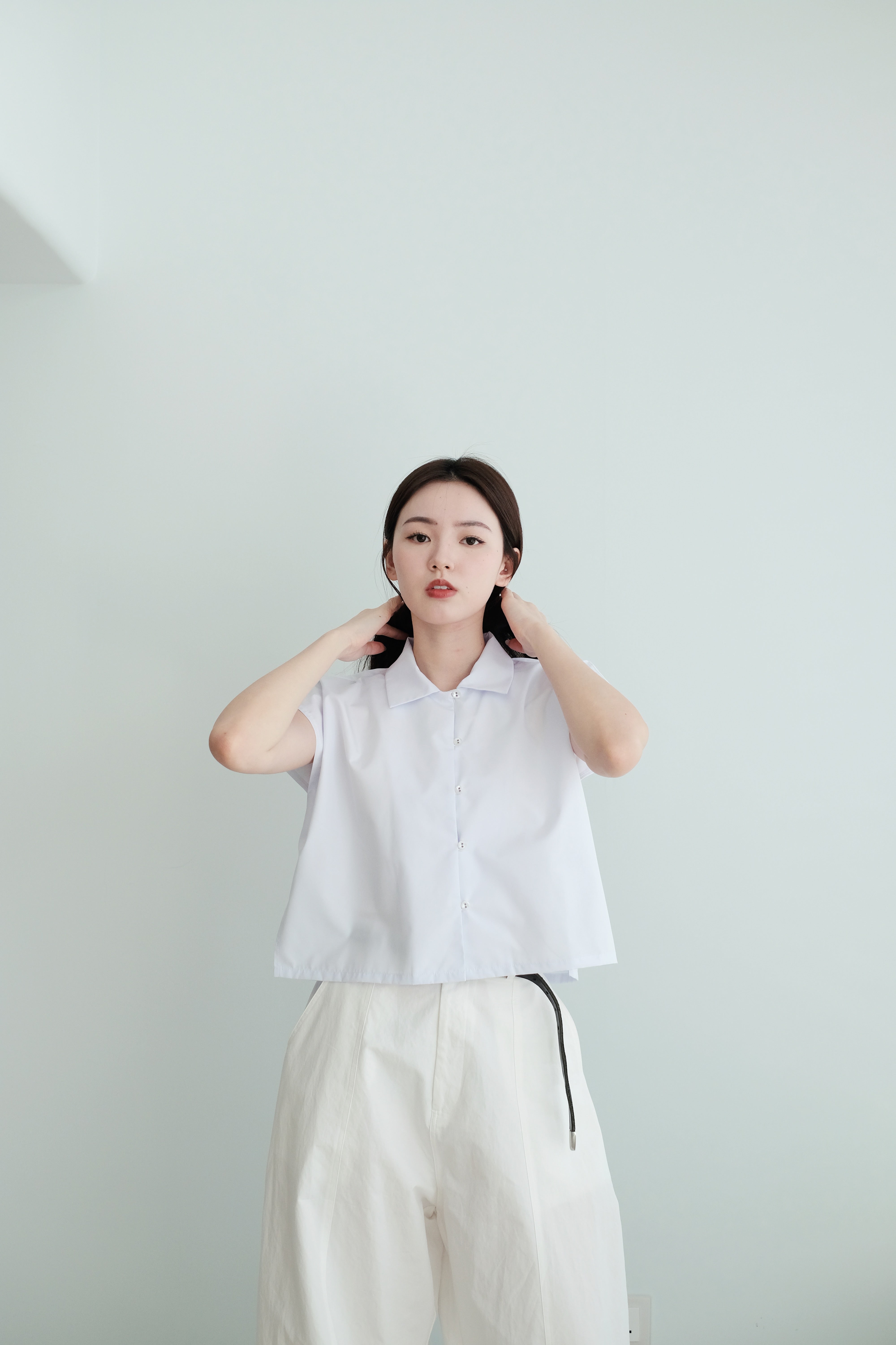 Crafted from polyester, this shirt features a structured silhouette, and discreet side slits for a touch of edge. The fabric holds its shape well, making it perfect for daily summer wear—crisp, clean, and quietly bold.