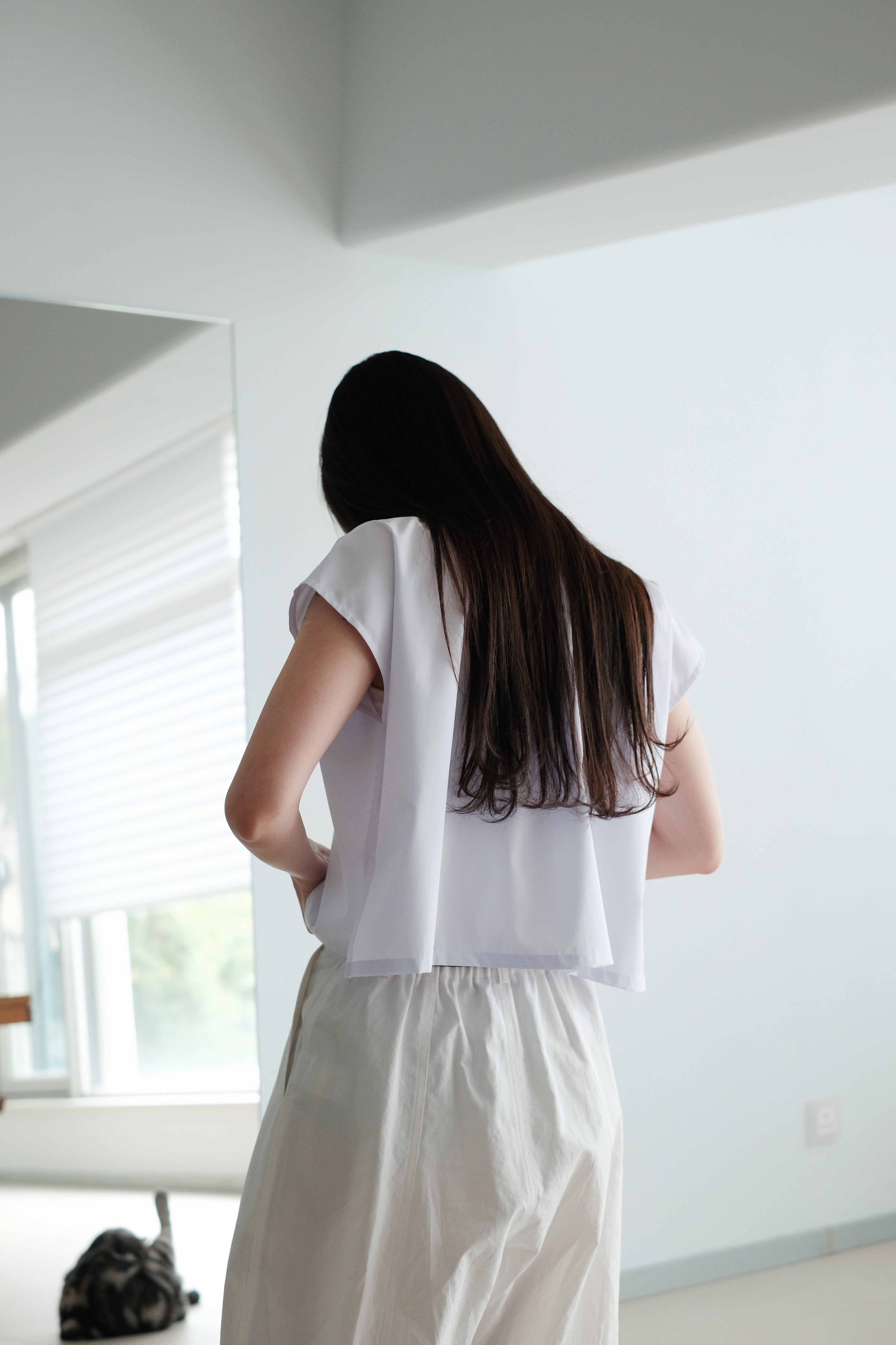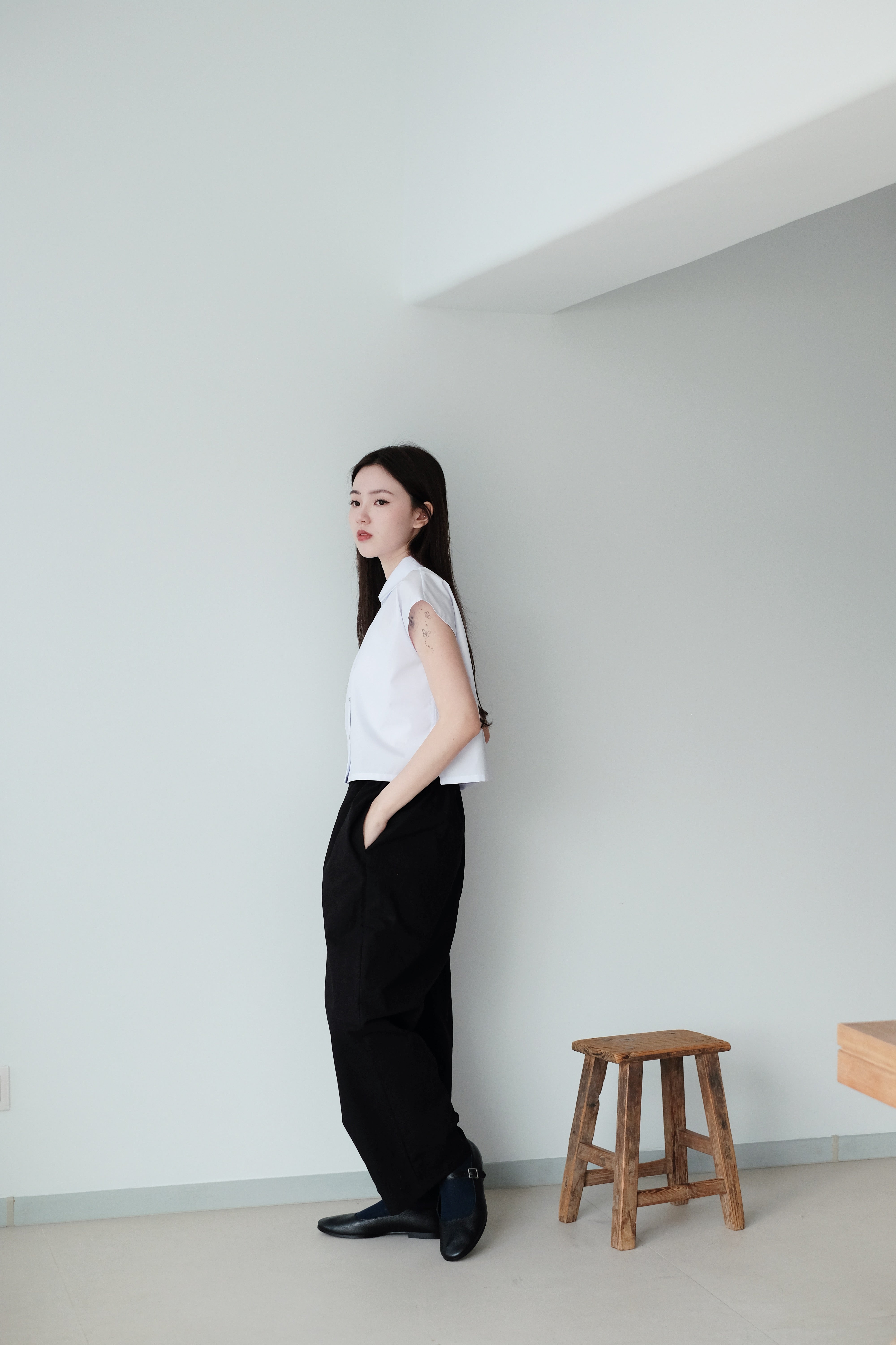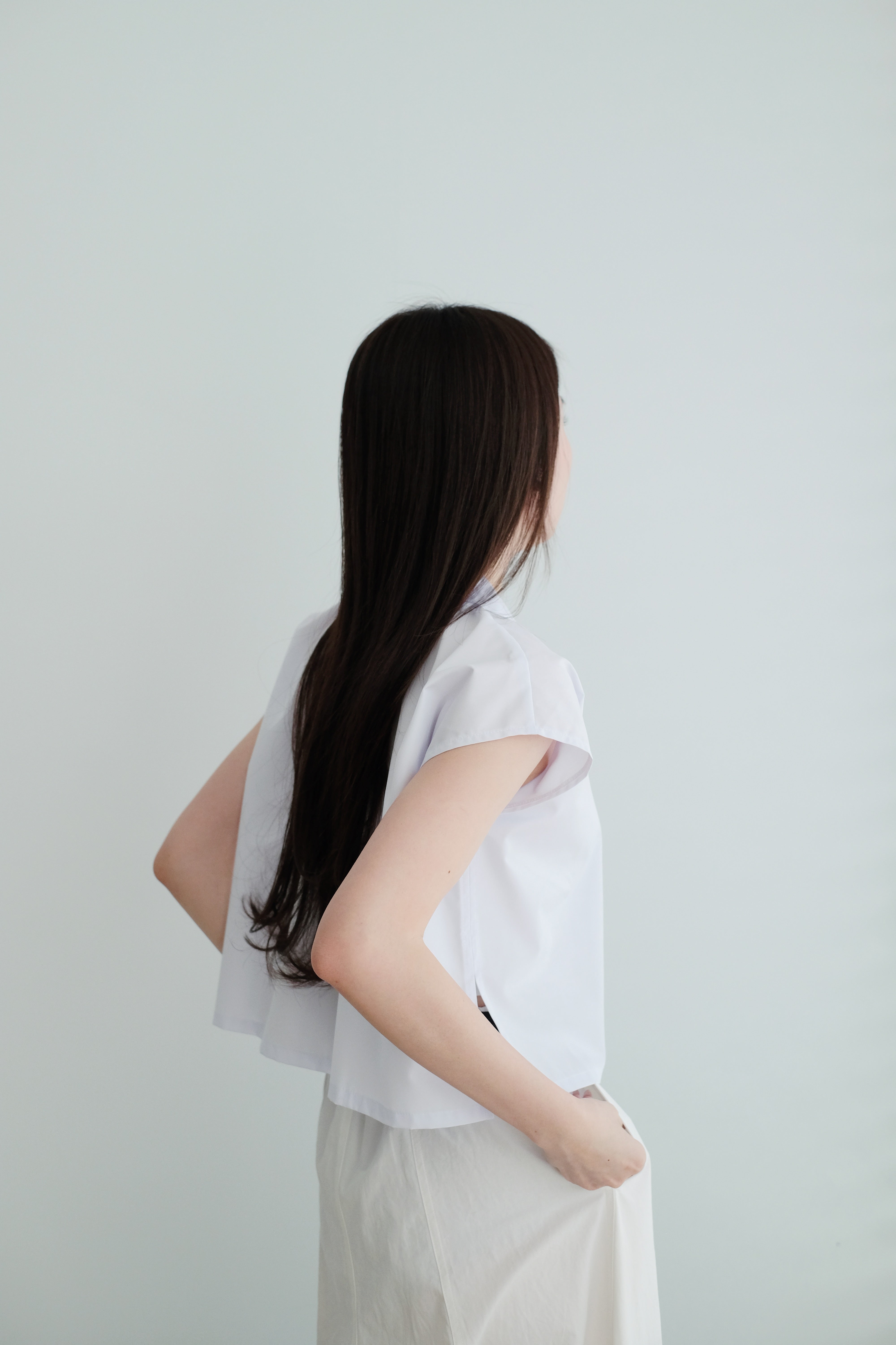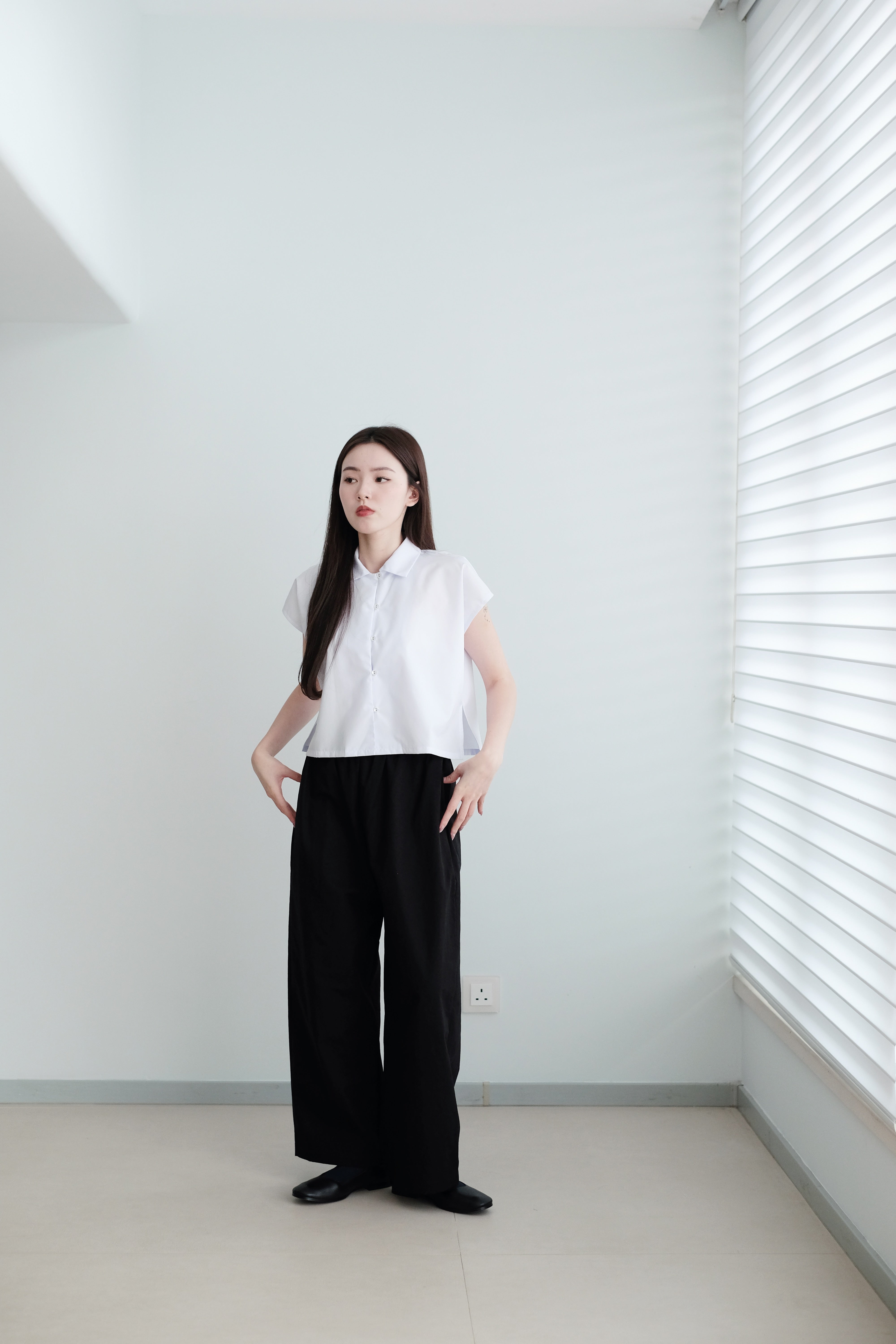 Crafted from polyester, this shirt features a structured silhouette, and discreet side slits for a touch of edge. The fabric holds its shape well, making it perfect for daily summer wear—crisp, clean, and quietly bold.
