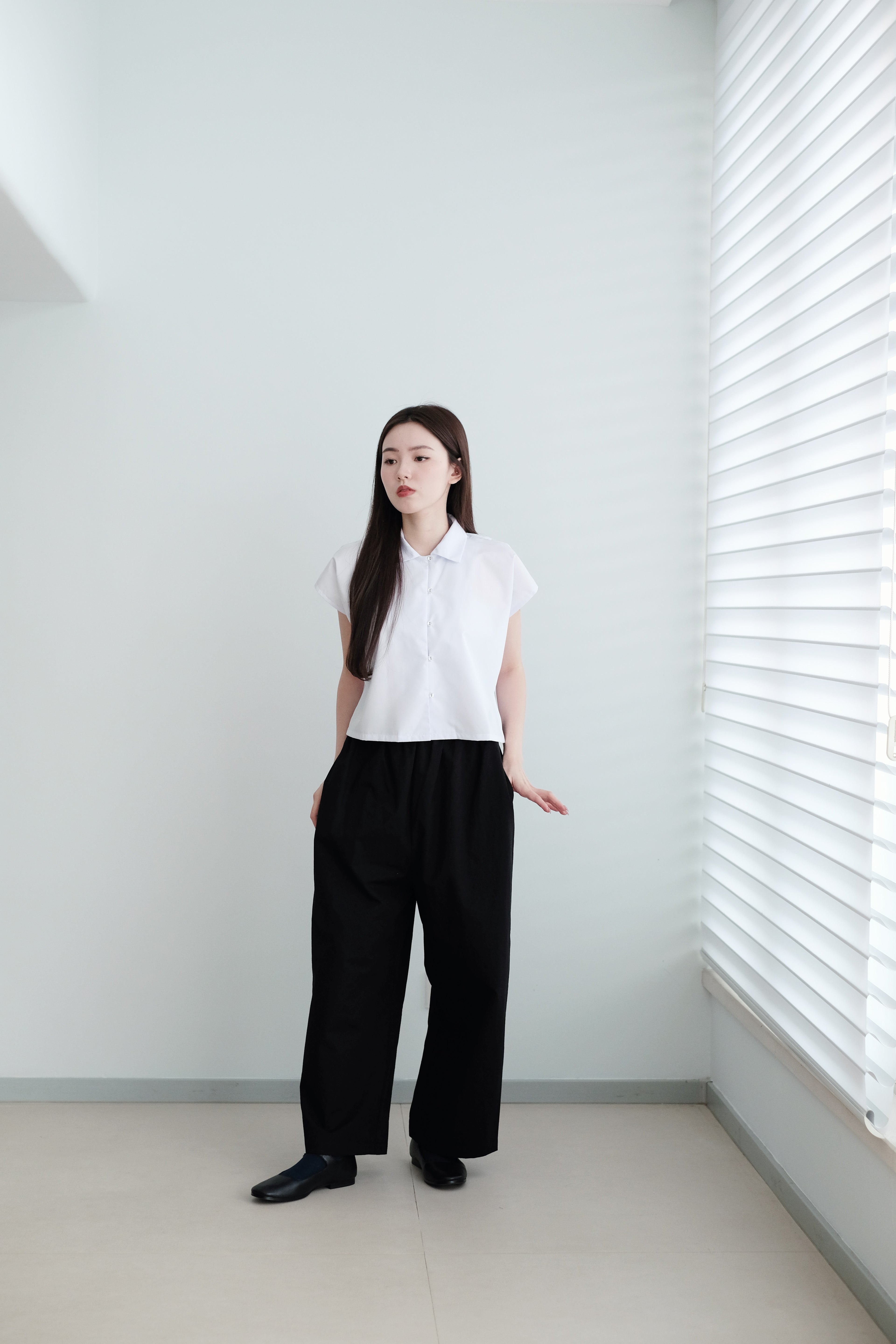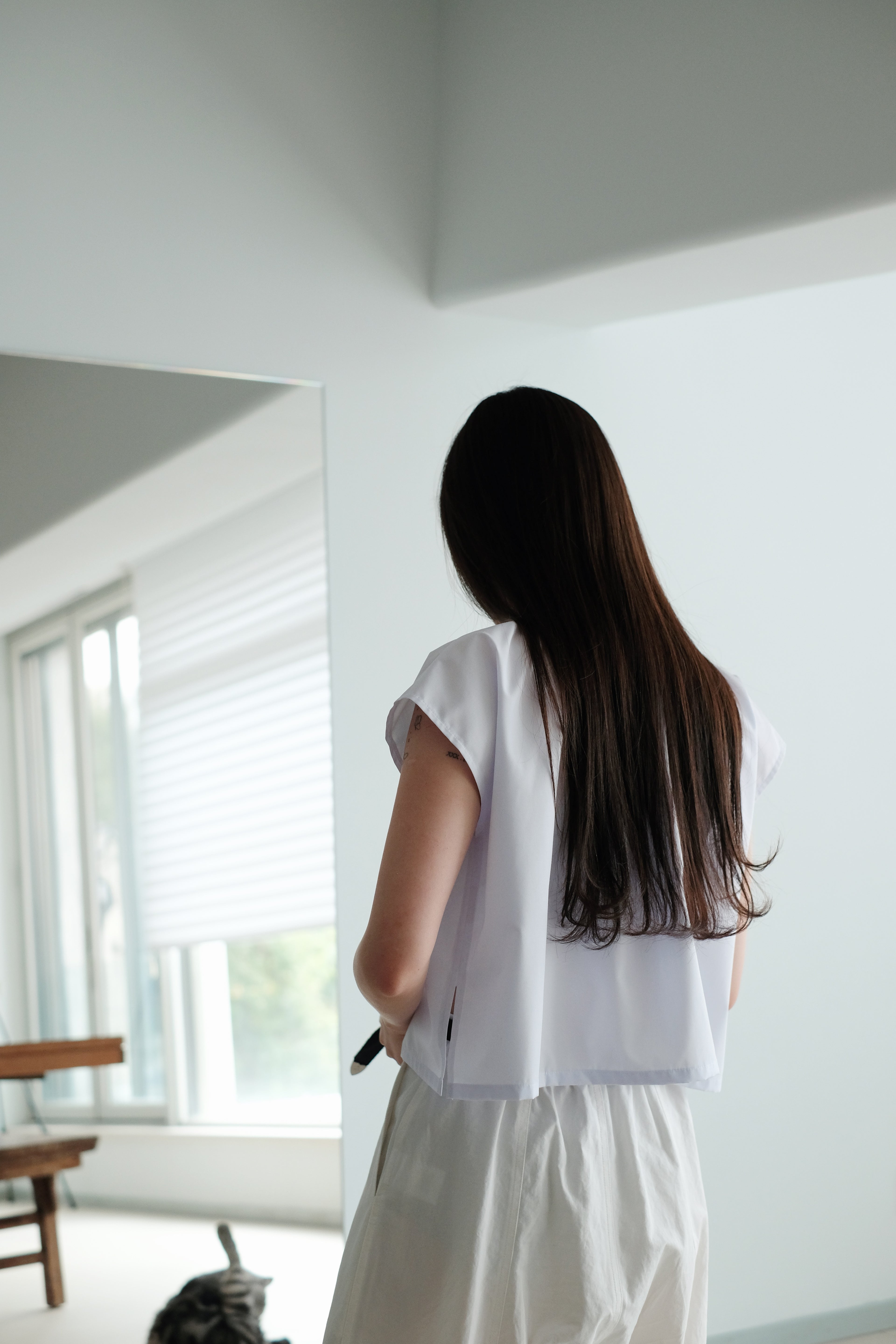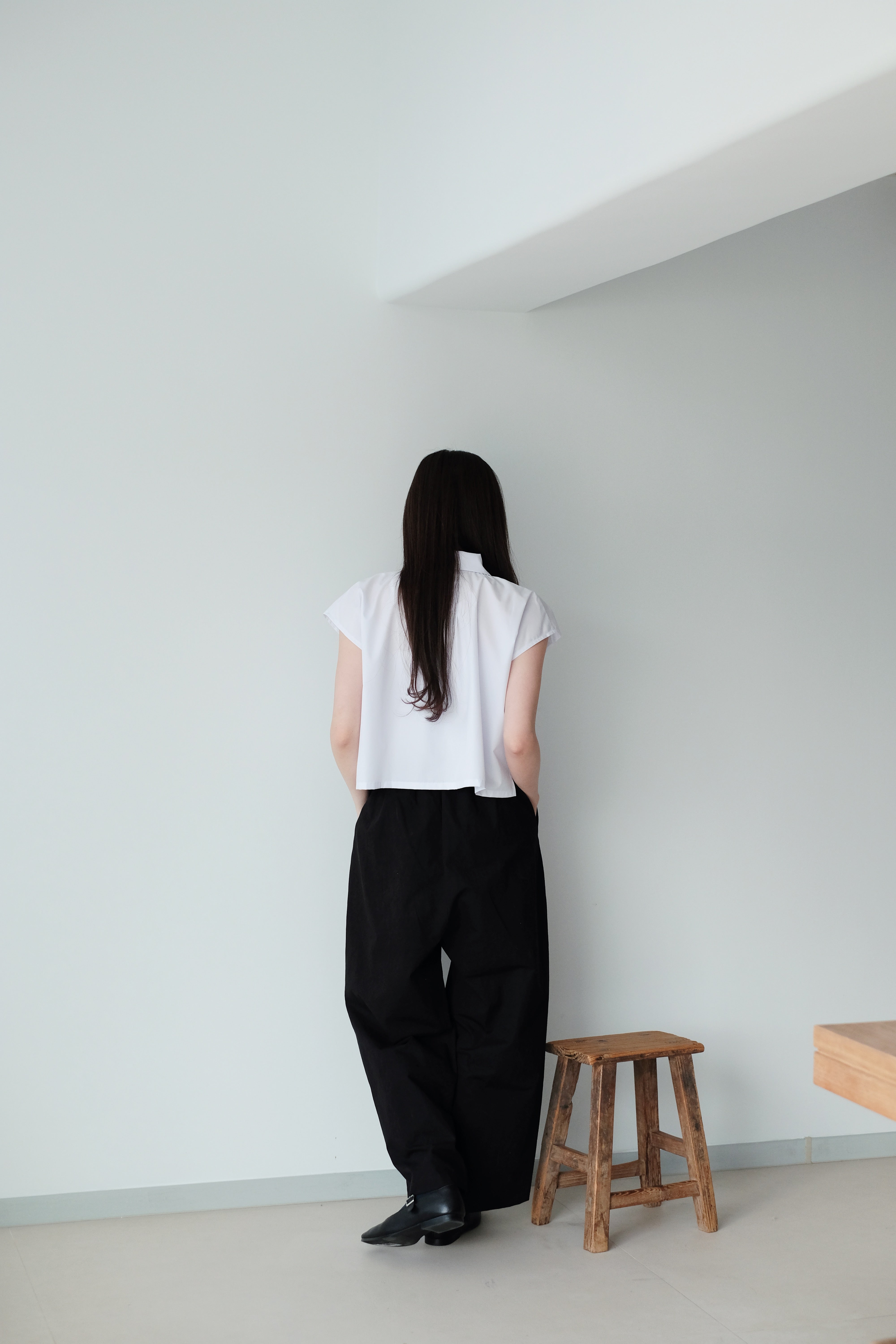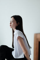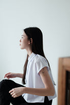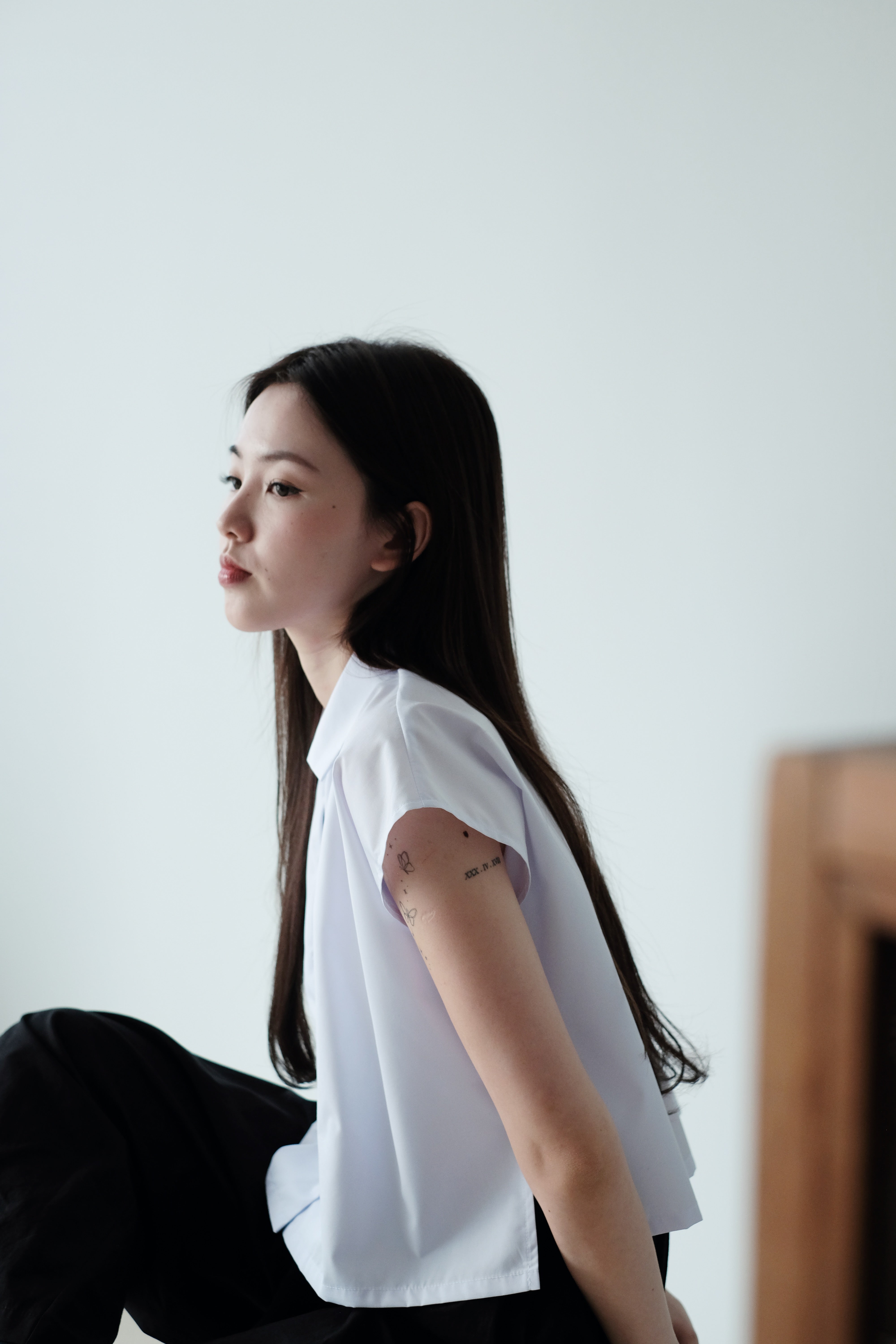 Crafted from polyester, this shirt features a structured silhouette, and discreet side slits for a touch of edge. The fabric holds its shape well, making it perfect for daily summer wear—crisp, clean, and quietly bold.