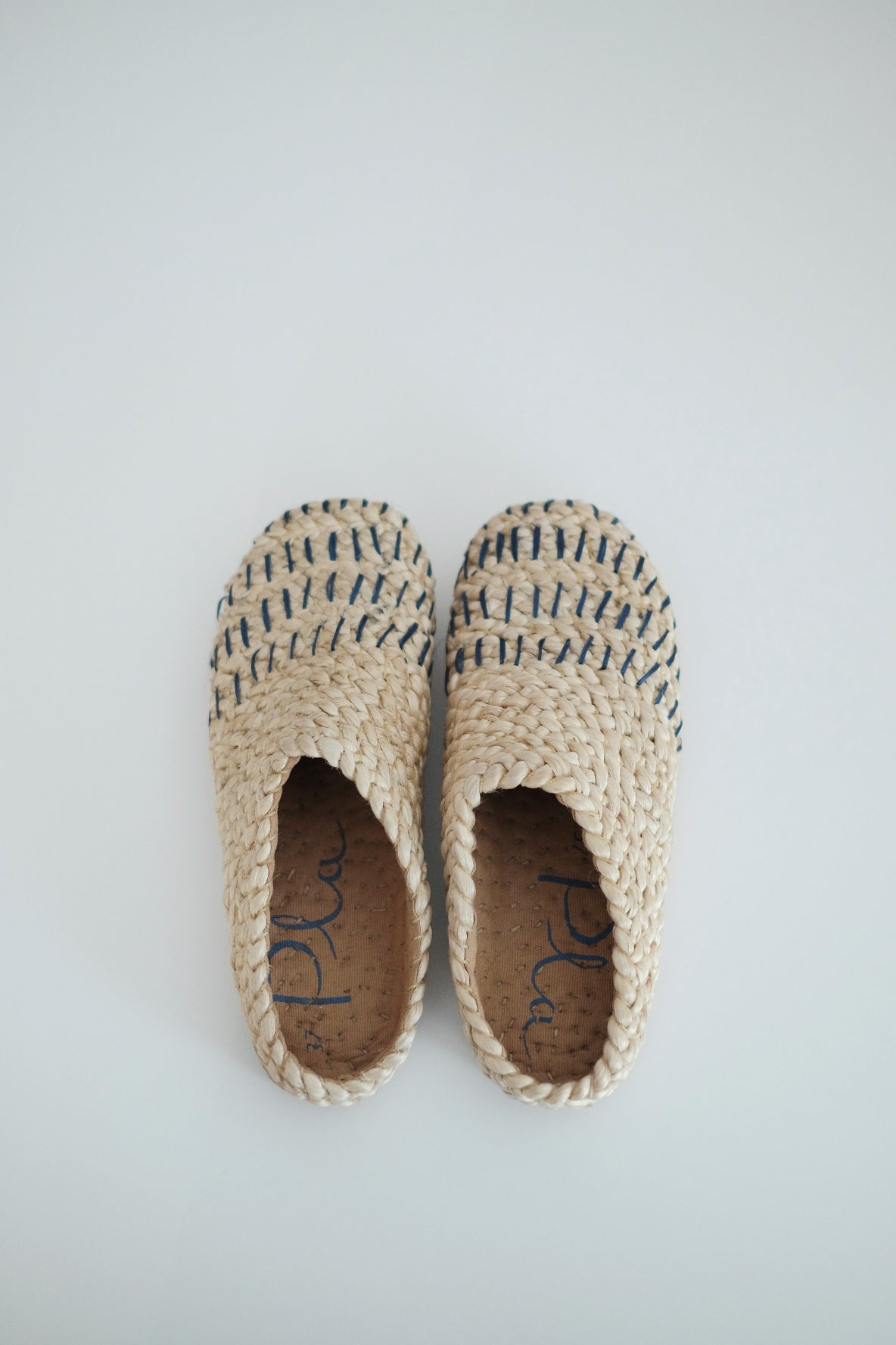 PLA's shoes are handcrafted with a single jute braid that spins over a cotton lining. Its sole consists of two layers, one made of textile and the other of natural crepe. The combination of the jute braid and the sole makes walking very comfortable.