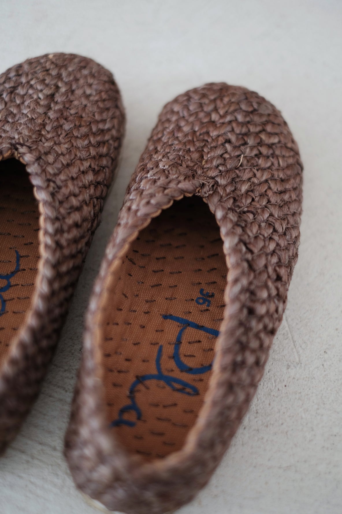 PLA's shoes are handcrafted with a single jute braid that spins over a cotton lining. Its sole consists of two layers, one made of textile and the other of natural crepe. The combination of the jute braid and the sole makes walking very comfortable.