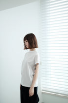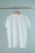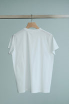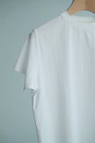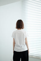 A minimalist white tee made with premium cotton fabric from Korea. Smooth, soft to the touch, and structured for a flattering fit. Perfect on its own or layered. Clean finish at the neckline and sleeves shows care in every detail.