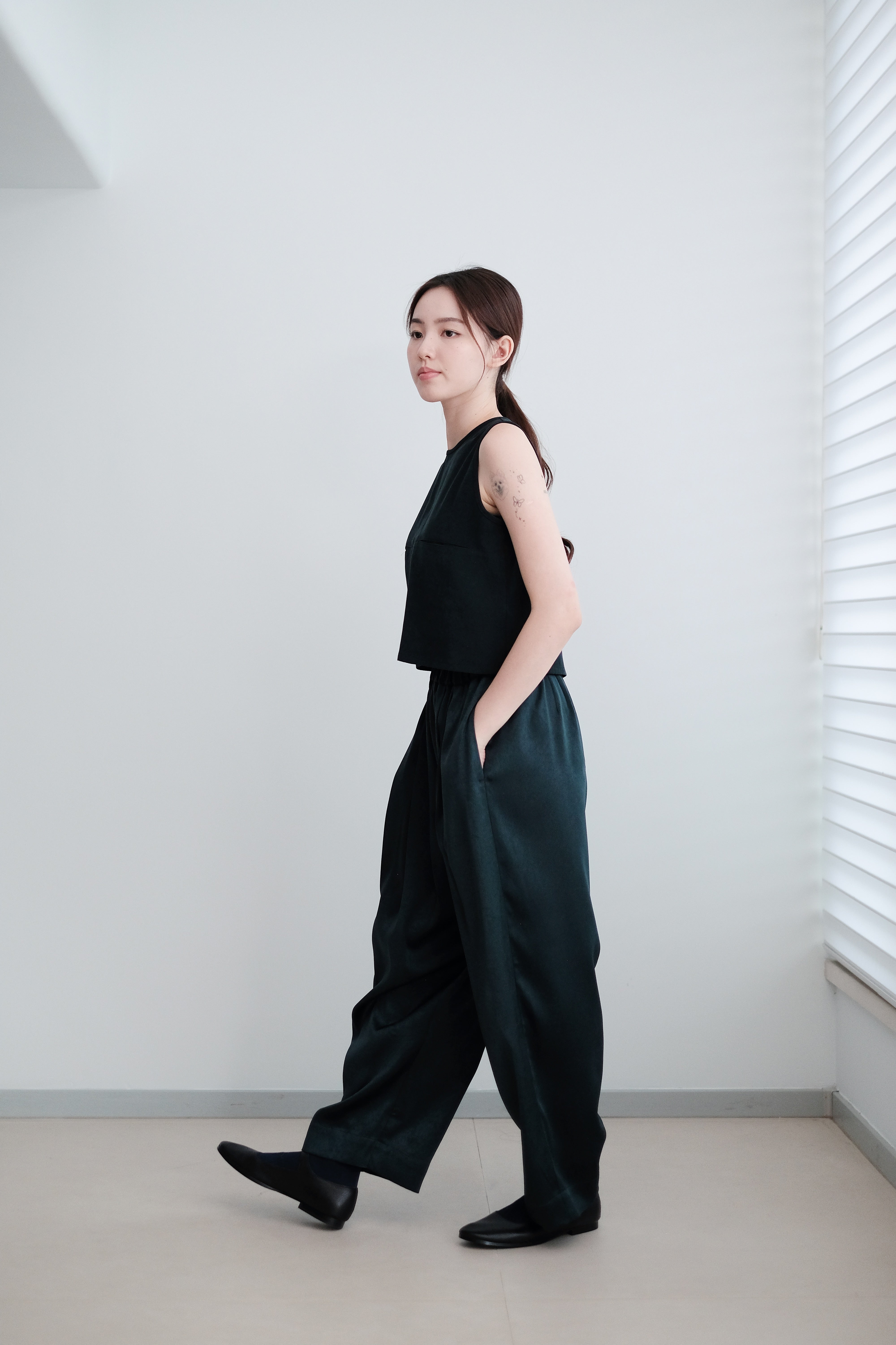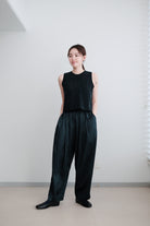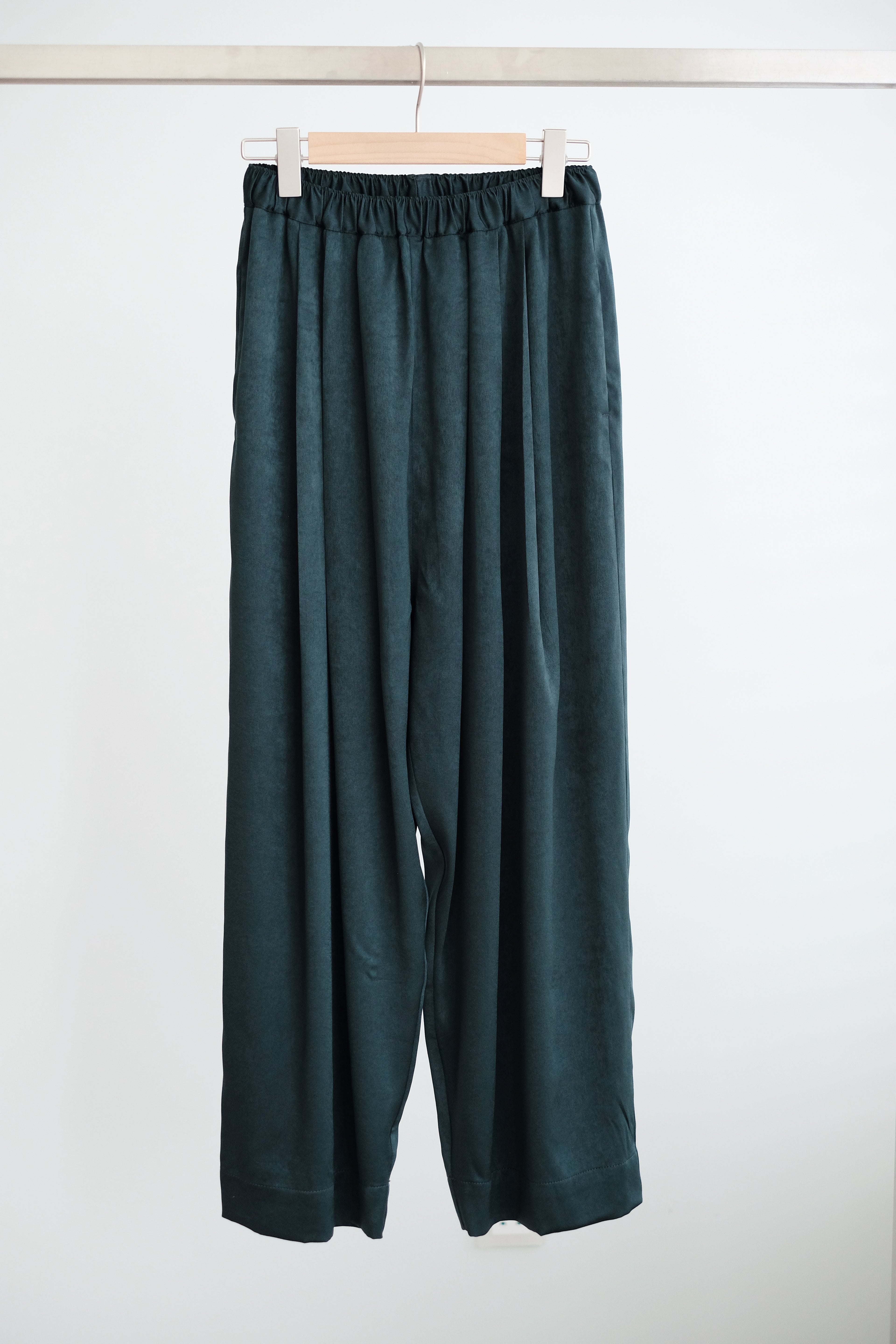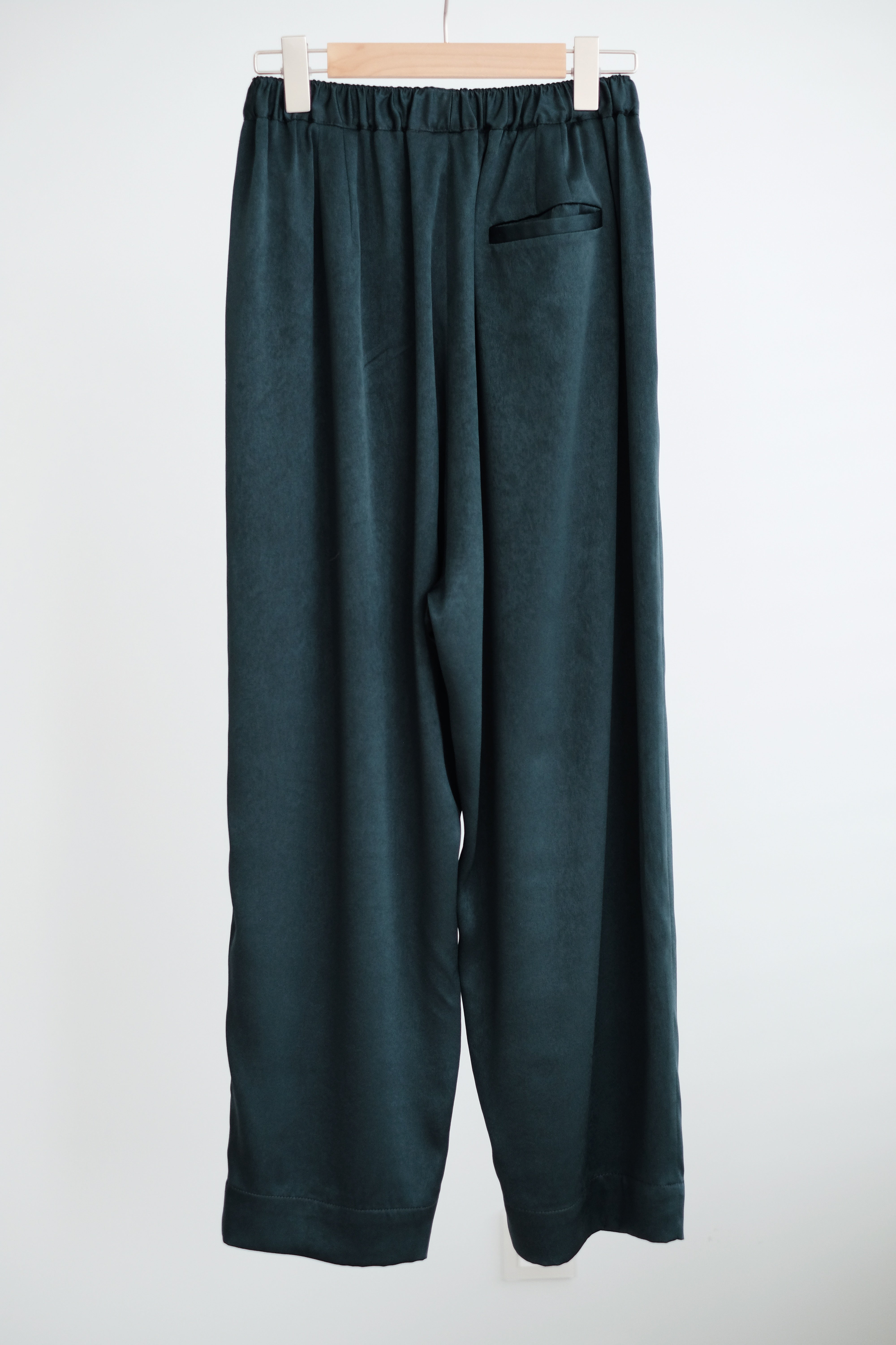 Made from luxurious triacetate fabric, these wide-leg trousers drape beautifully with a subtle velvet-like finish. Designed with an elastic waistband for ease and comfort, the unisex cut makes them a wardrobe essential for anyone seeking a modern, fluid silhouette.