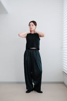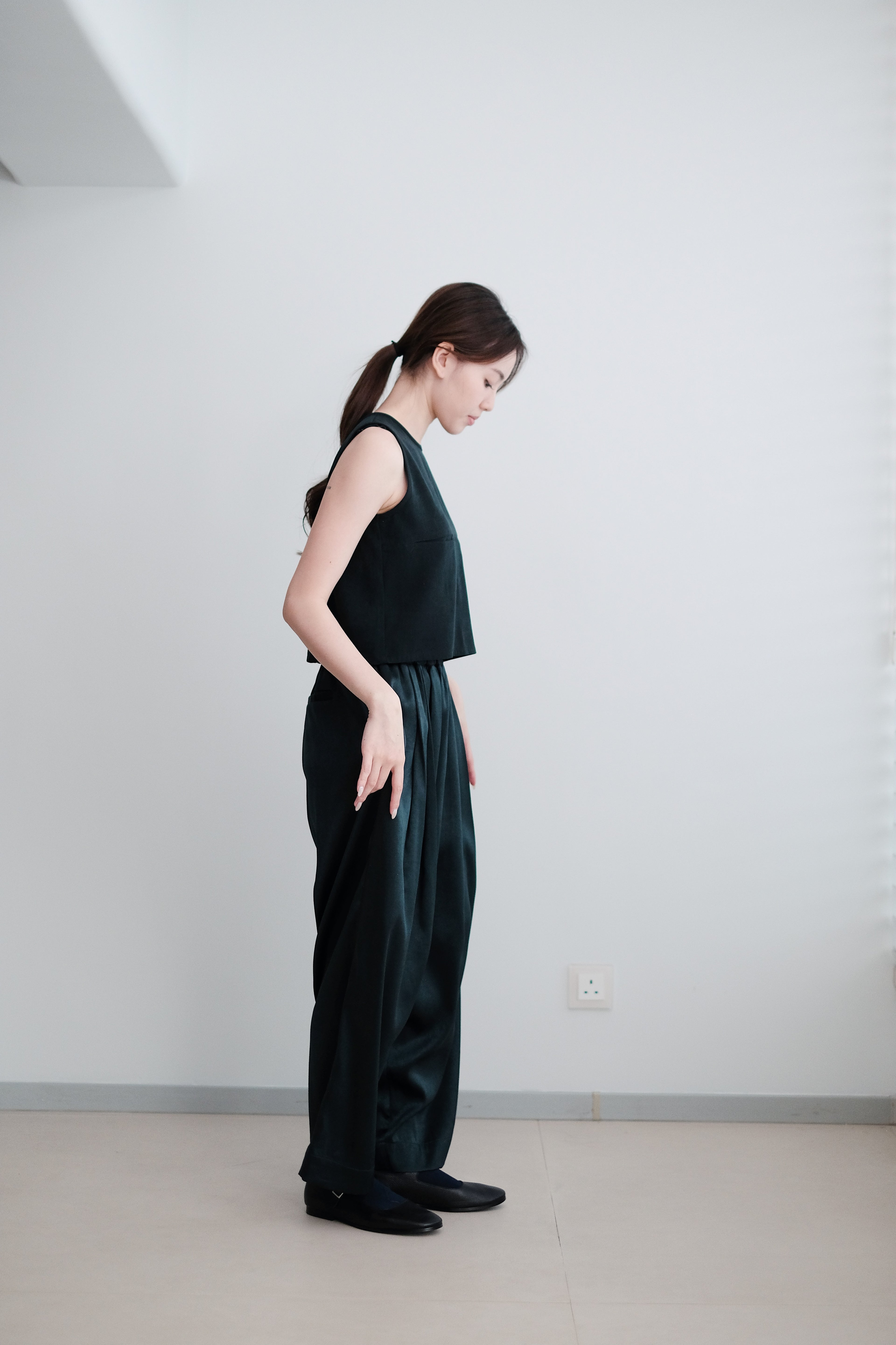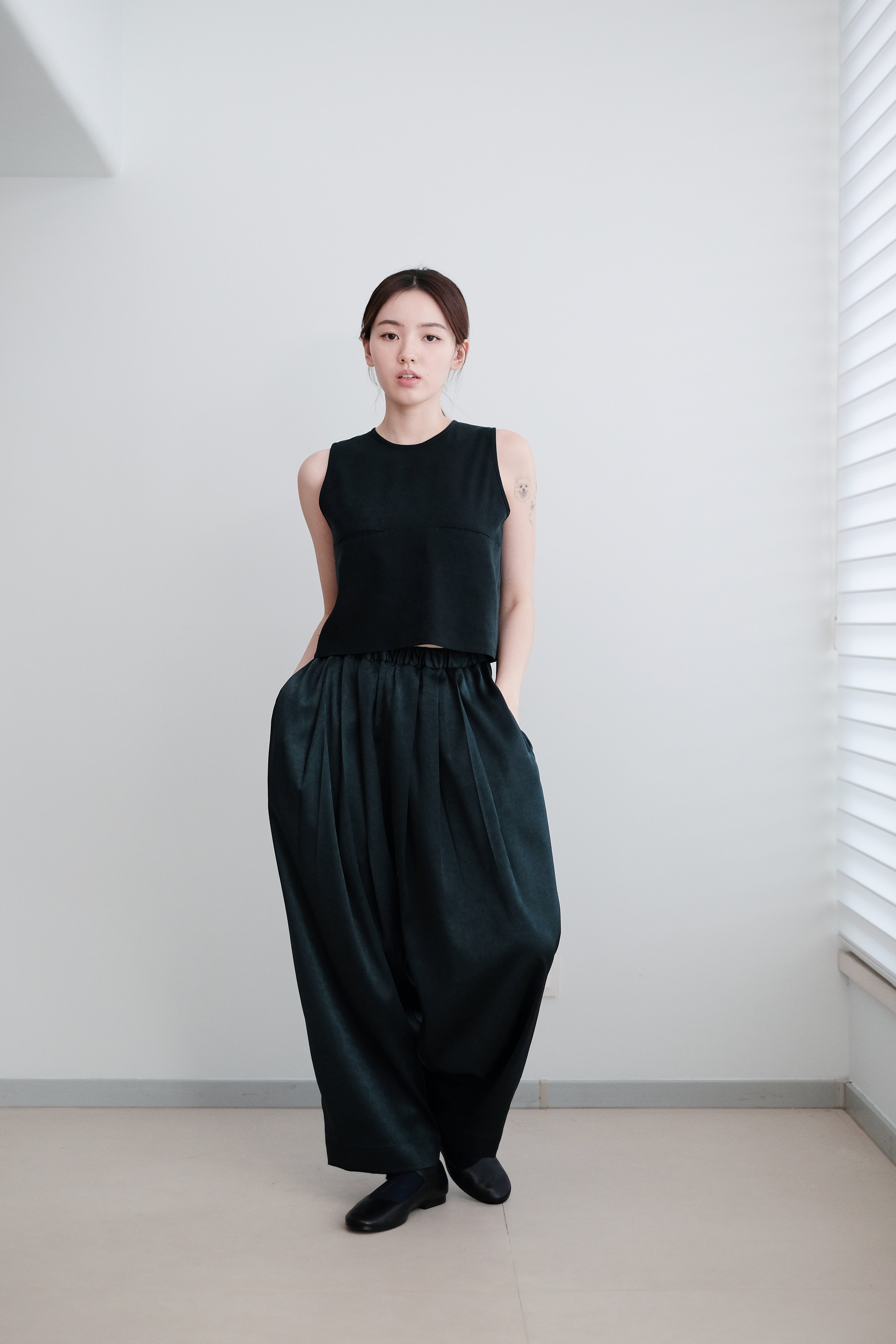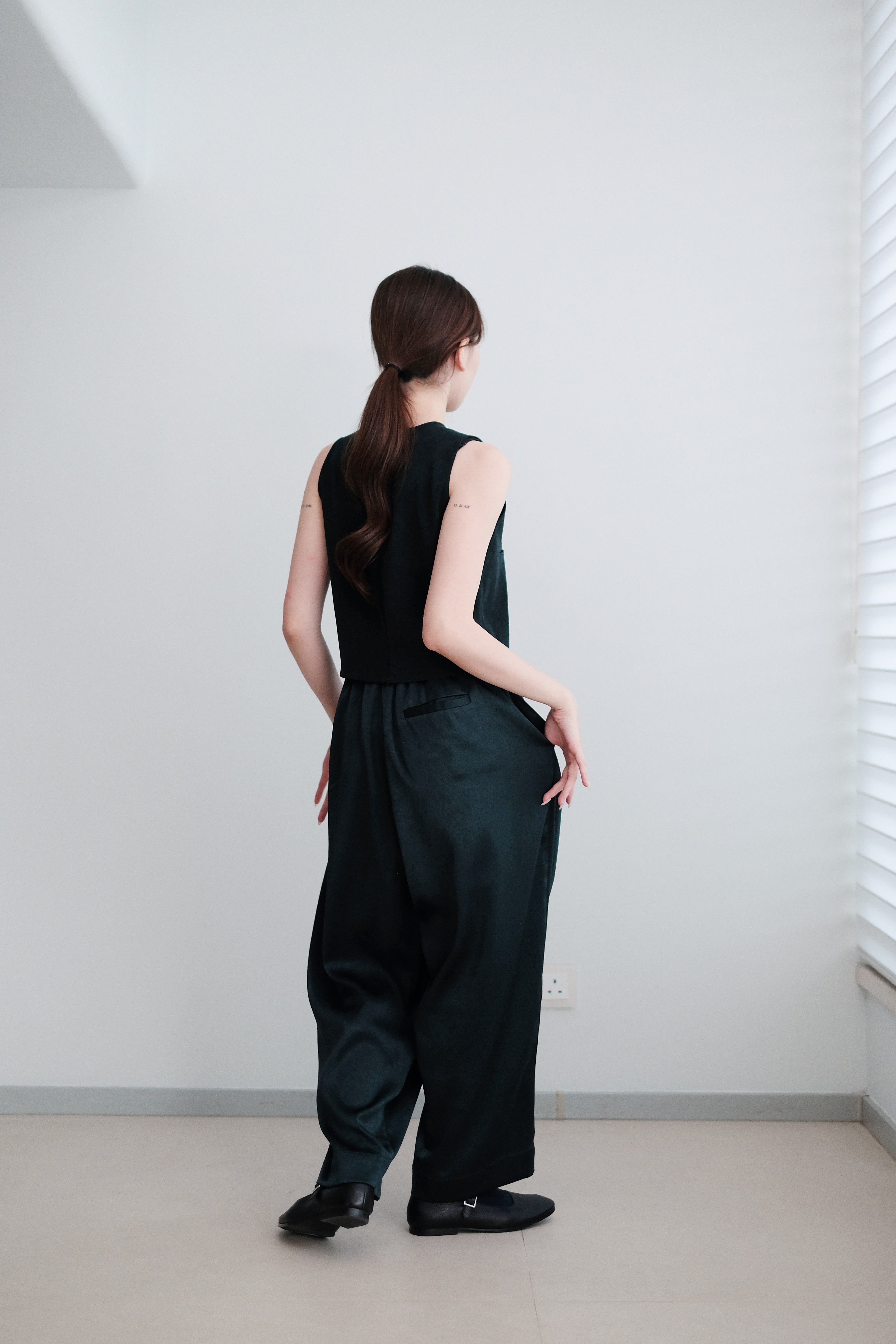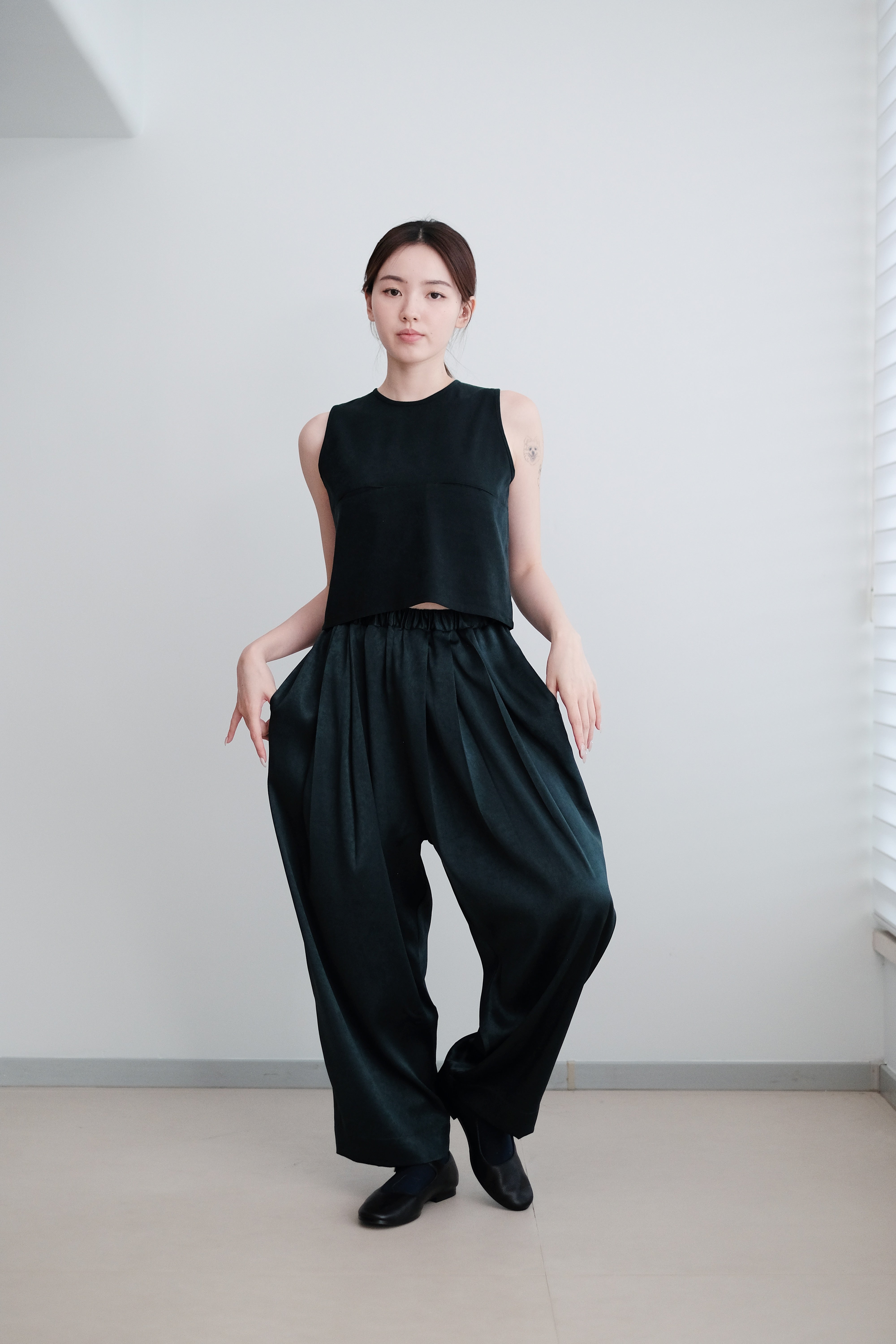 Made from luxurious triacetate fabric, these wide-leg trousers drape beautifully with a subtle velvet-like finish. Designed with an elastic waistband for ease and comfort, the unisex cut makes them a wardrobe essential for anyone seeking a modern, fluid silhouette.