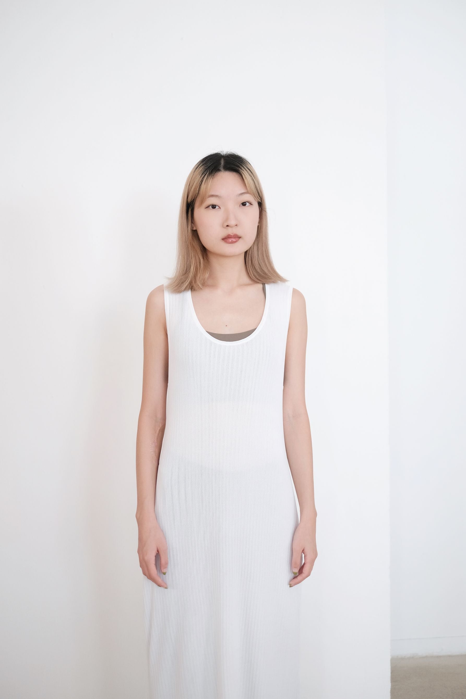 LAVONIA KNIT DRESS (WHITE) | 純白清涼感針織連衣裙