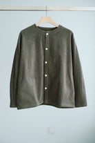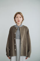 The slightly oversized fit creates a relaxed silhouette, while the front button details add a touch of refinement. Whether worn alone or layered as an outer piece, it effortlessly exudes an easygoing yet stylish vibe.