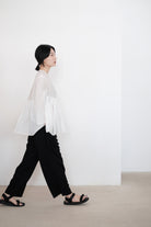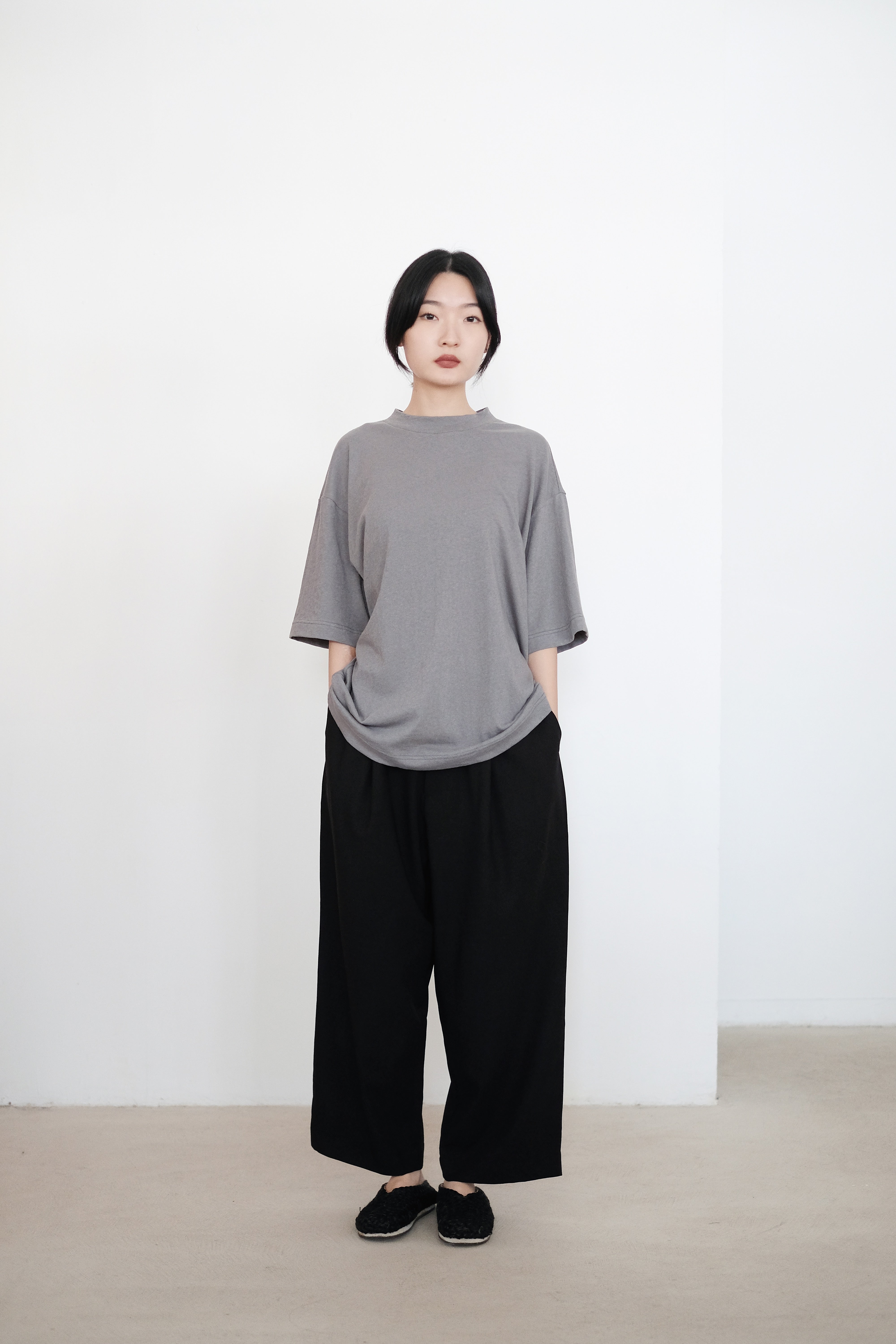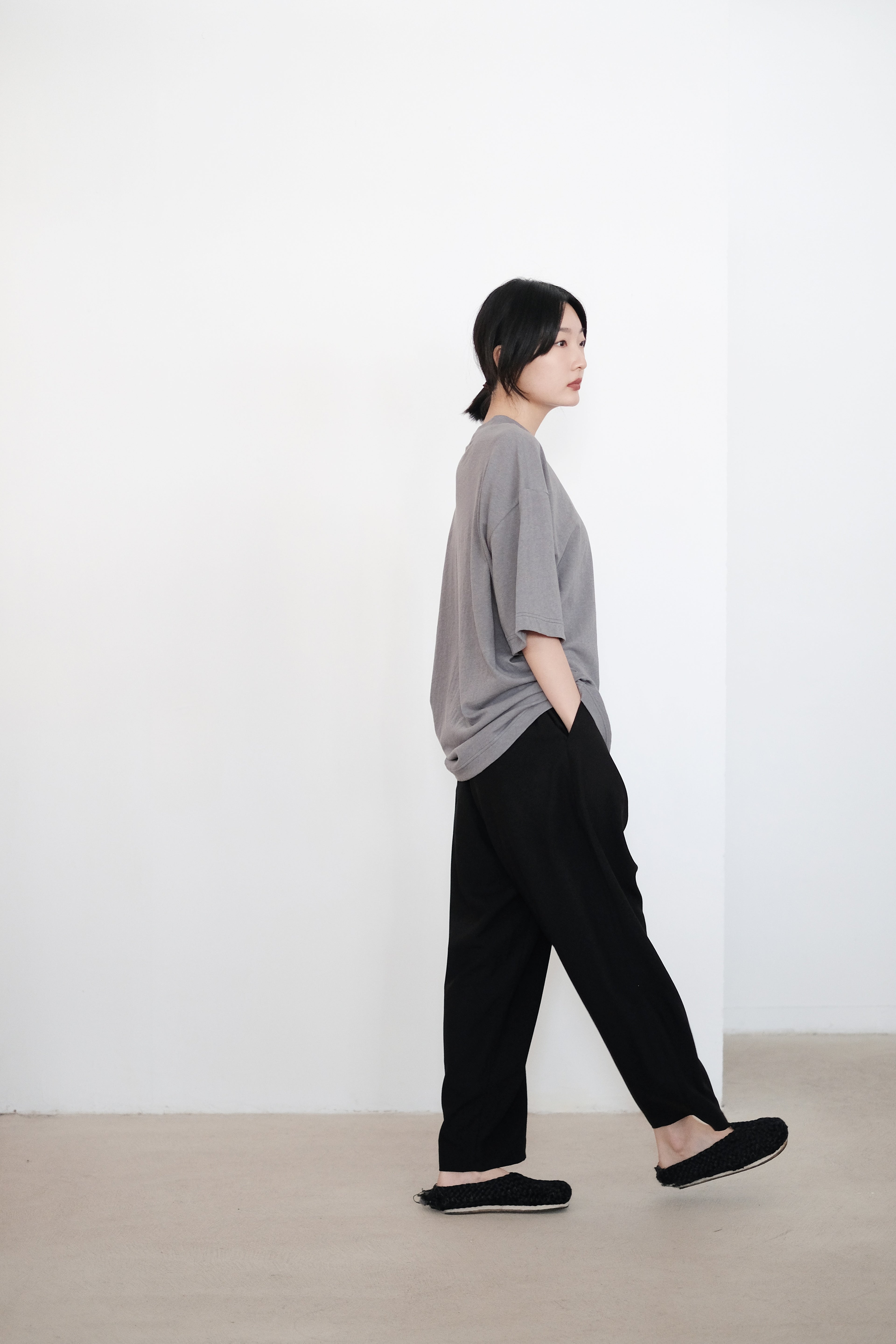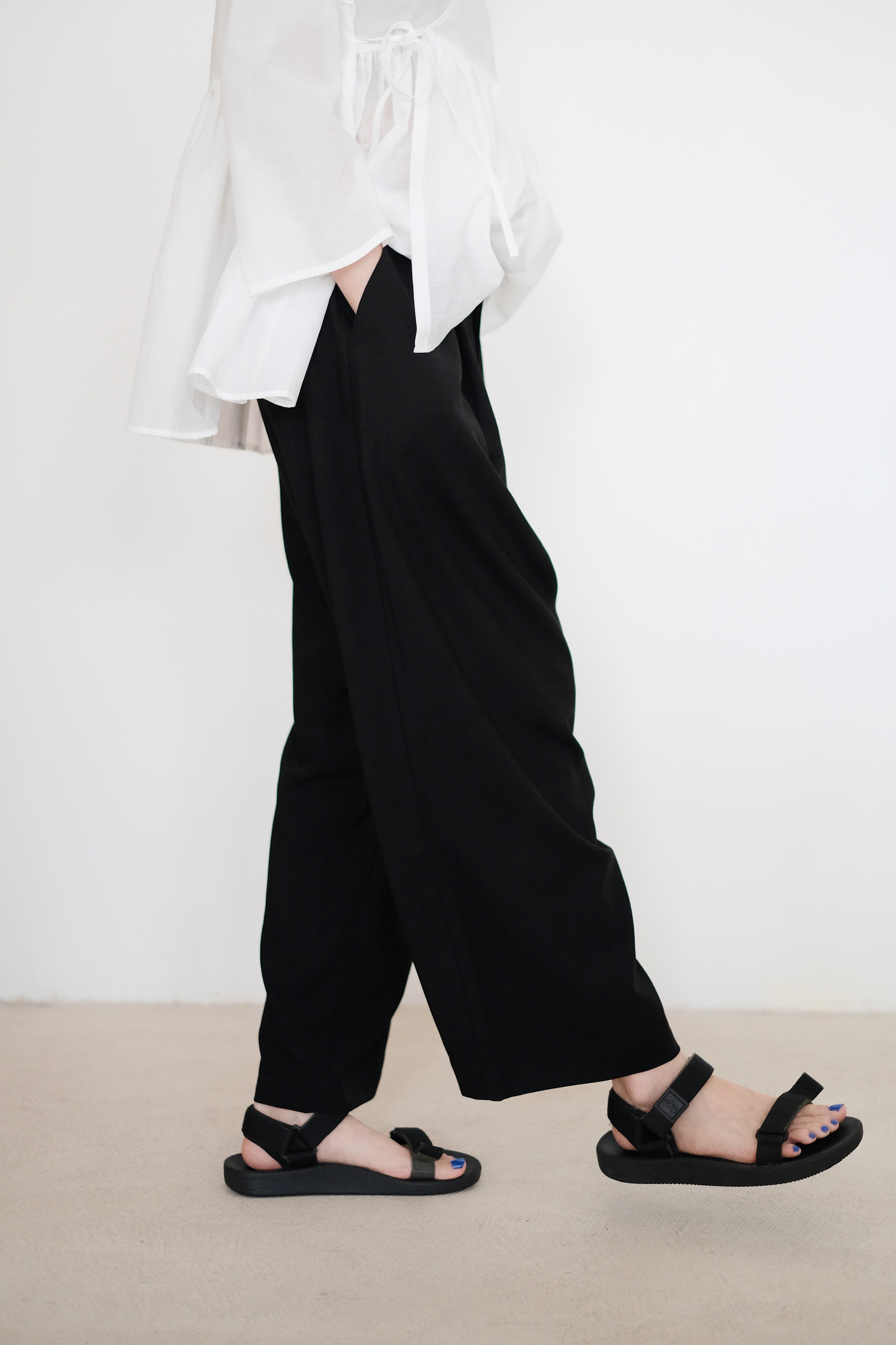 These relaxed-fit pants feature a pleated front and a slightly tapered leg, creating a draped silhouette that is both comfortable and stylish. Made from a lightweight fabric, they offer ease of movement and versatility for everyday wear.