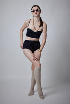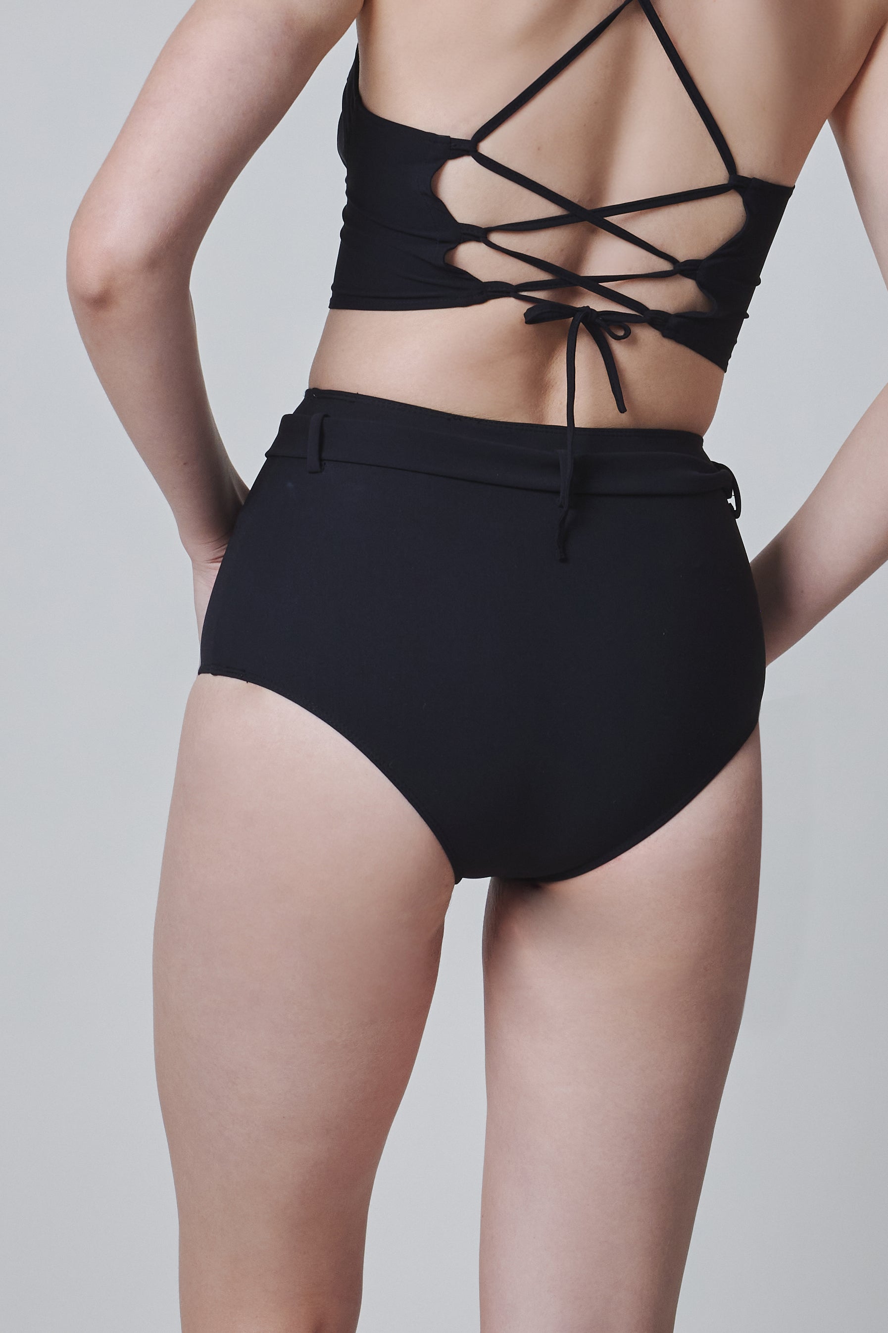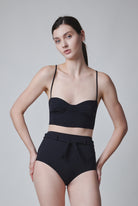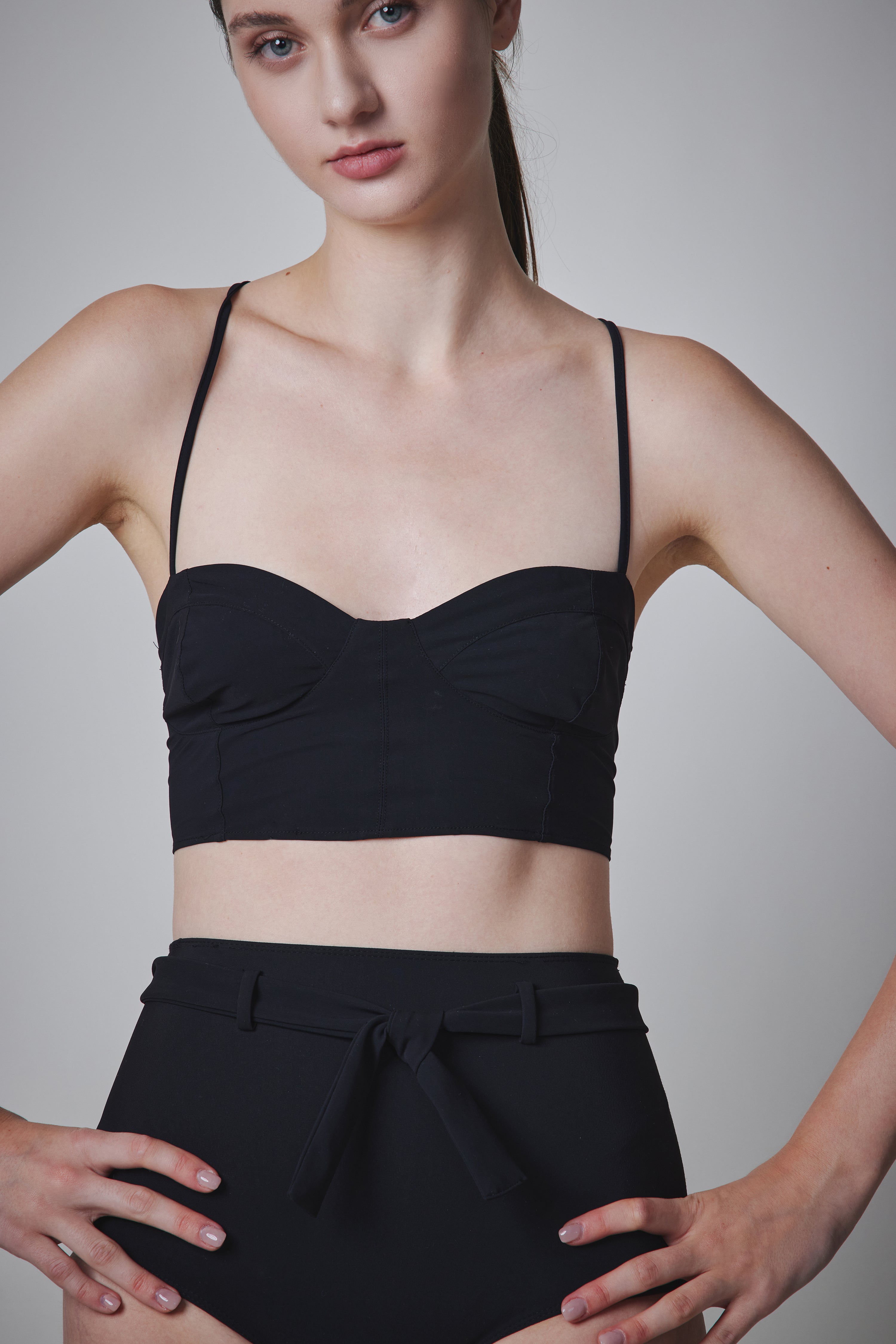 With a thin, long strap tying in an intersecting knot along the length of the back, this free-size crop bikini top allows you to easily adjust the shoulder straps as well as the body width, ensuring a comfortable, customized fit. And its minimal coverage of the cups and the accentuation on the horizontal outline simply add a stylish touch to its adaptability.