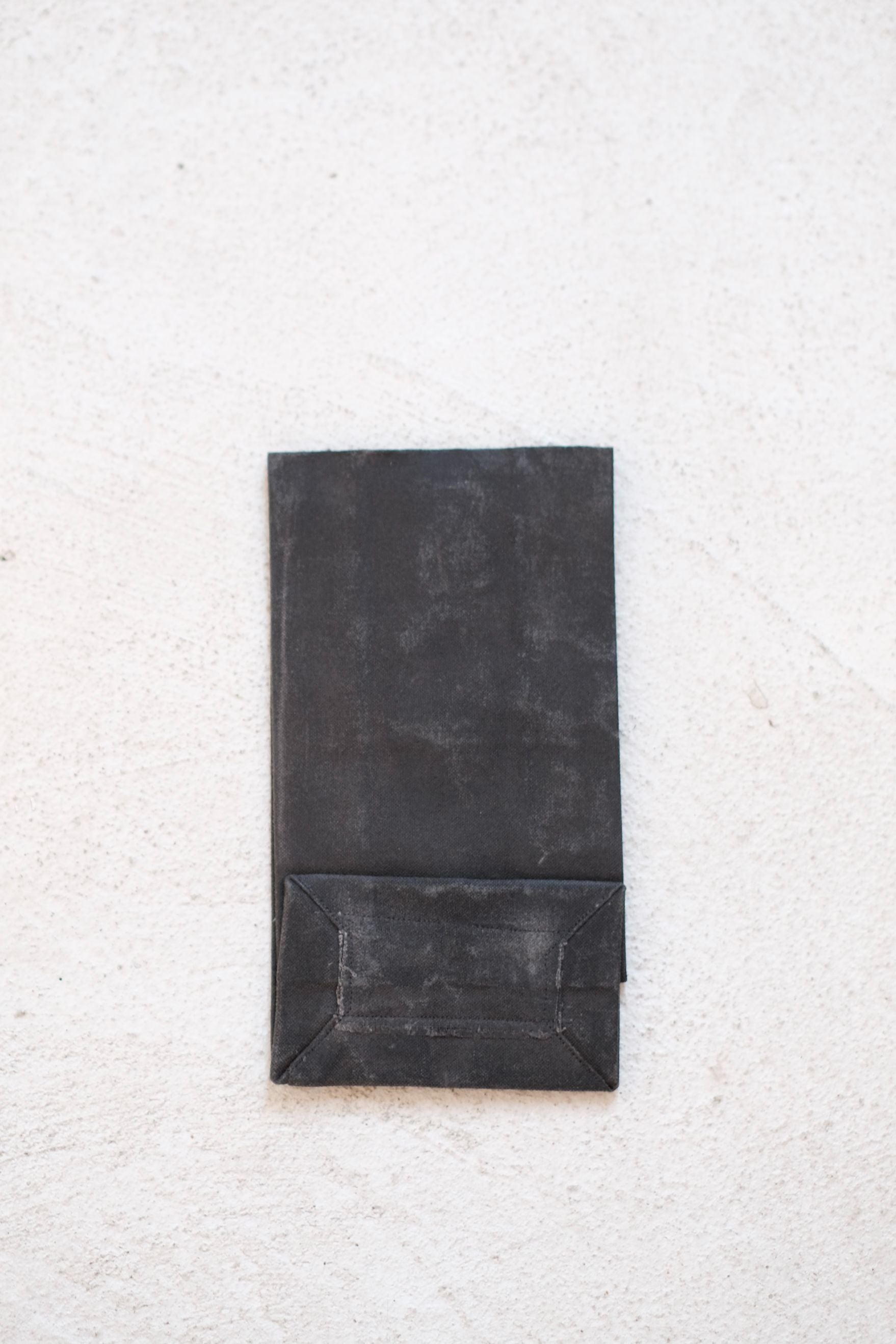 The peculiarity of the product is waxing.  Waxed canvas reproduces stiffness and texture like paper bags, which appears by using.  It also gives strength to the bag.  By mixing 2 different kinds of waxes make it firm and supple.