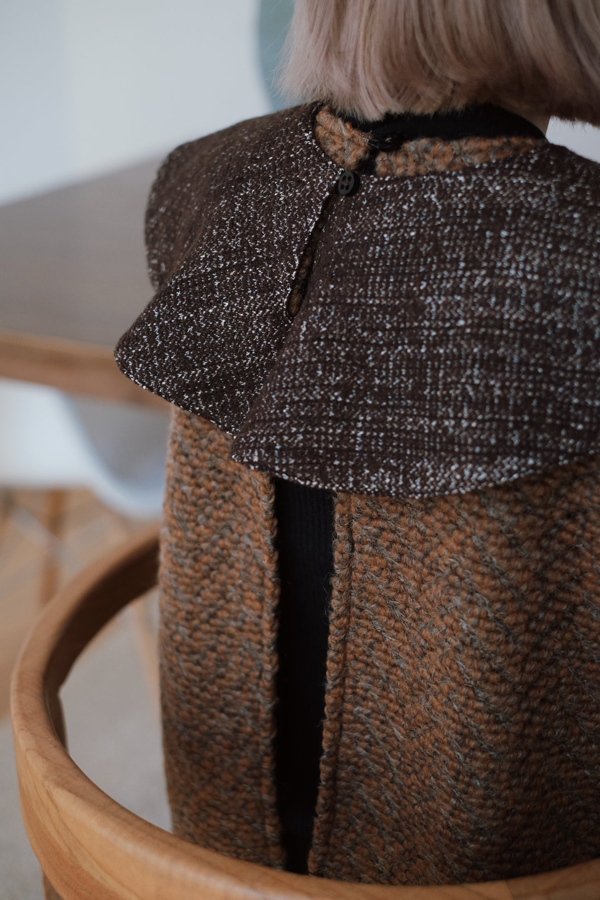 布料由啡色羊毛與白色、藍色線混合編織而成