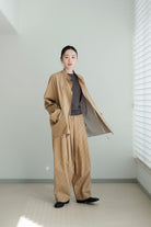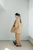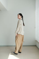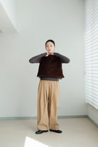 Made from luxurious Cotton fabric, these wide-leg trousers drape beautifully with a subtle velvet-like finish. Designed with an elastic waistband for ease and comfort, the unisex cut makes them a wardrobe essential for anyone seeking a modern, fluid silhouette.