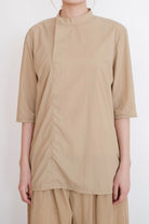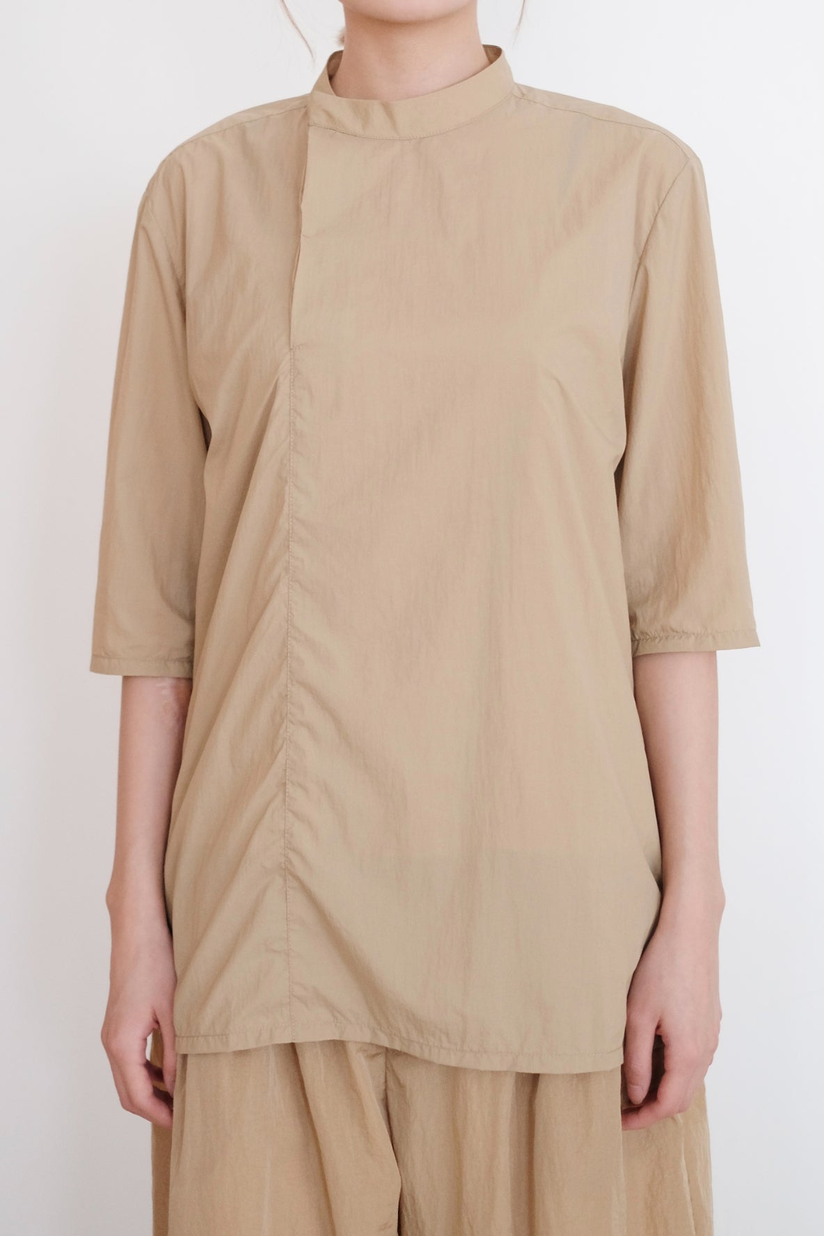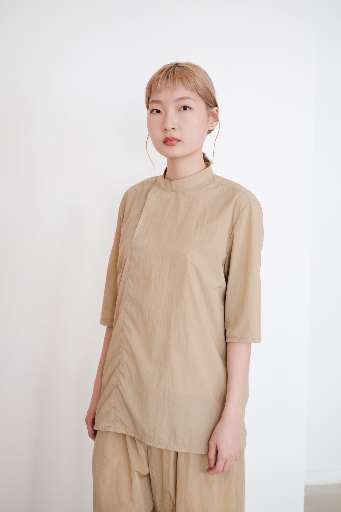 MADELYN BLOUSE (CAMEL) | 駝色斜襟半袖襯衫