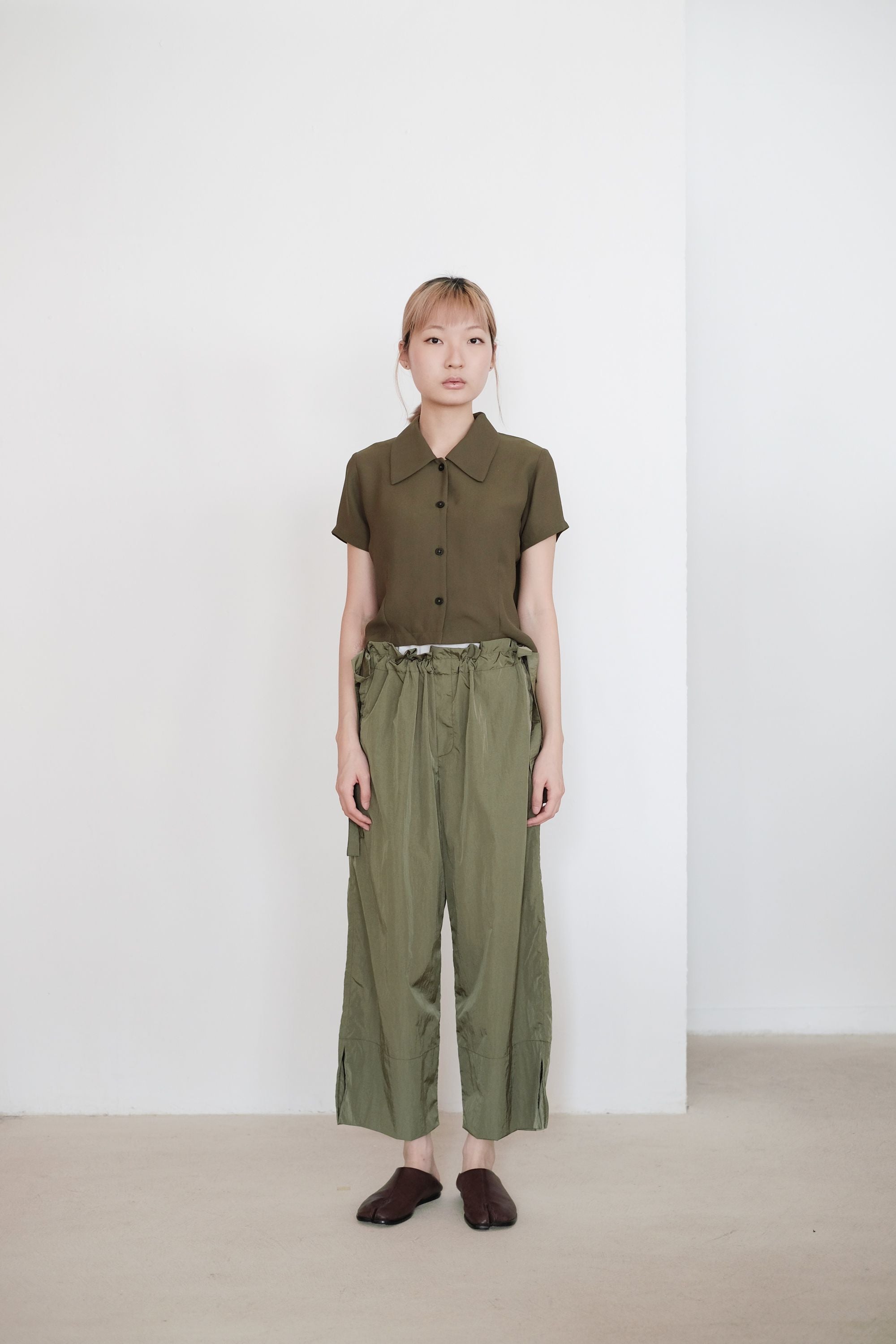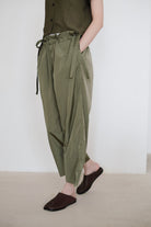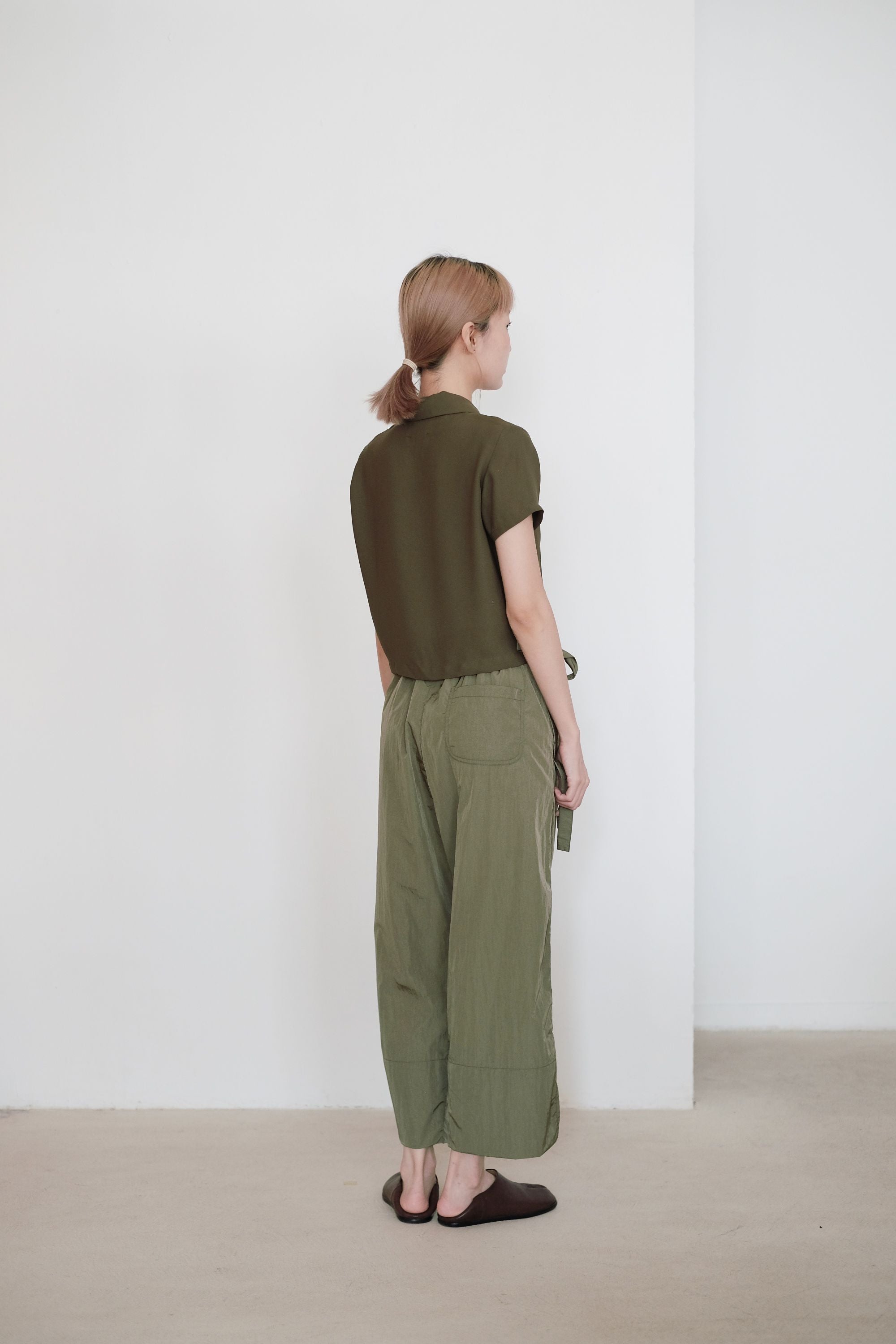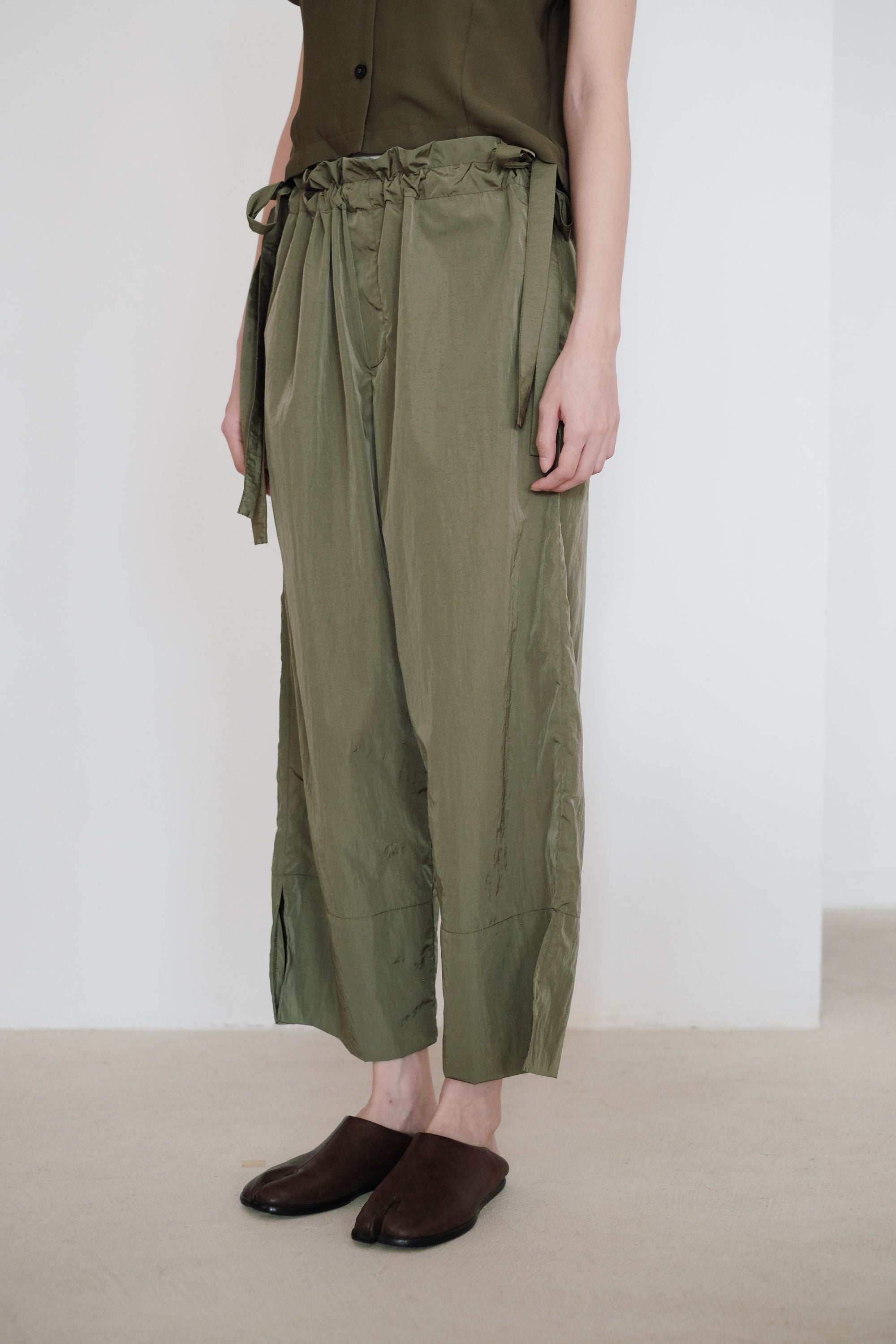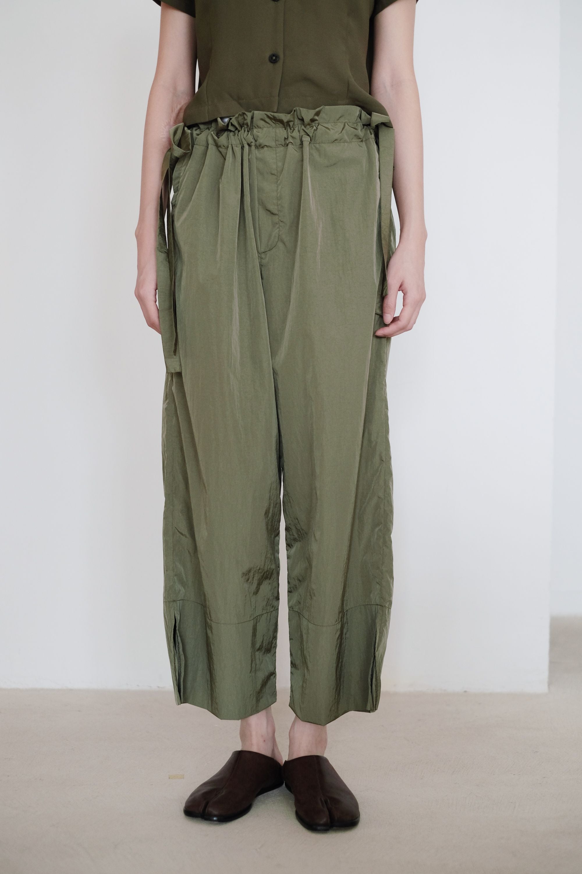 OI TROUSERS WITH DRAWSTRING (OLIVE) | 橄欖色左右綁繩長褲