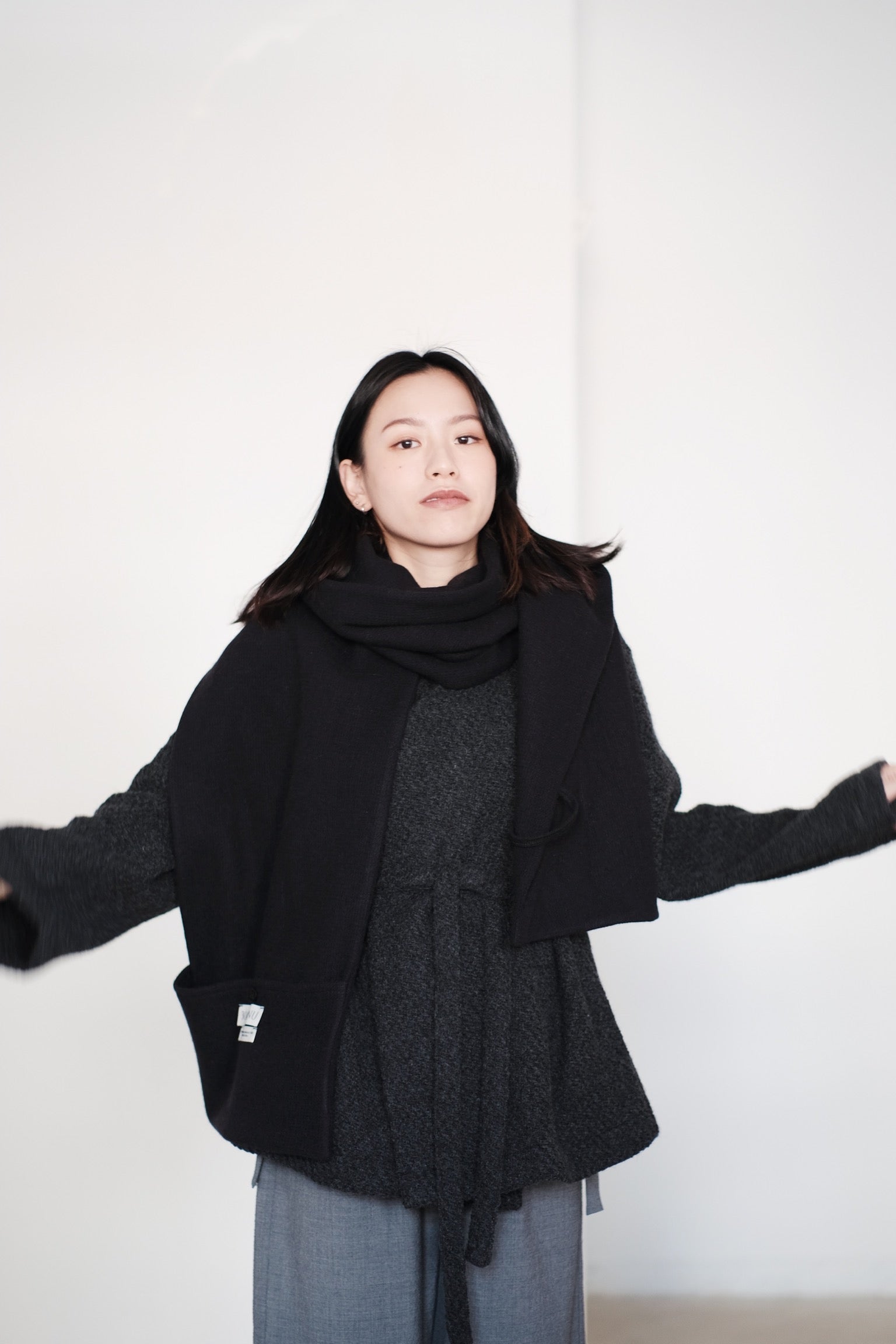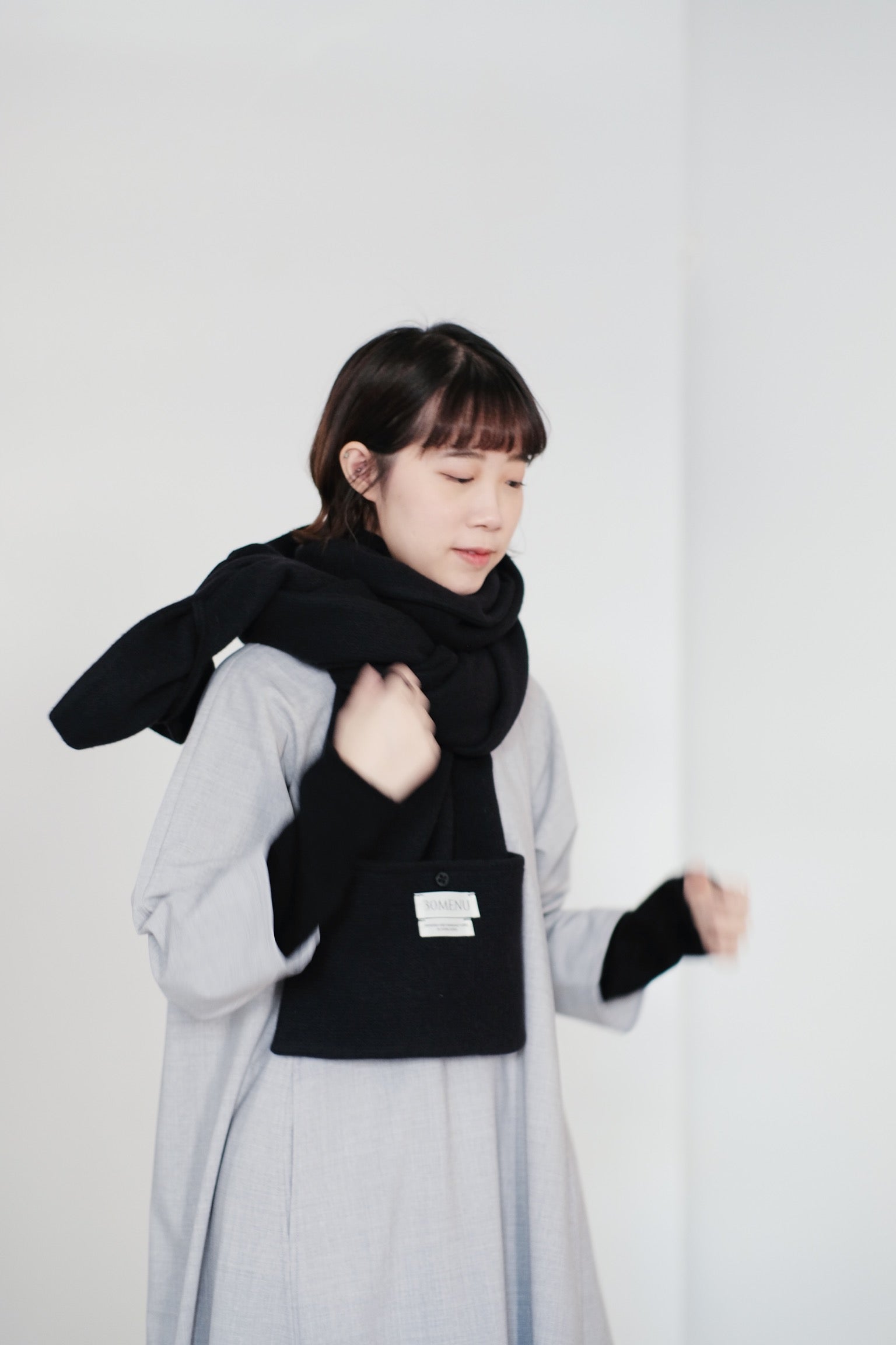頸巾末端的口袋設計