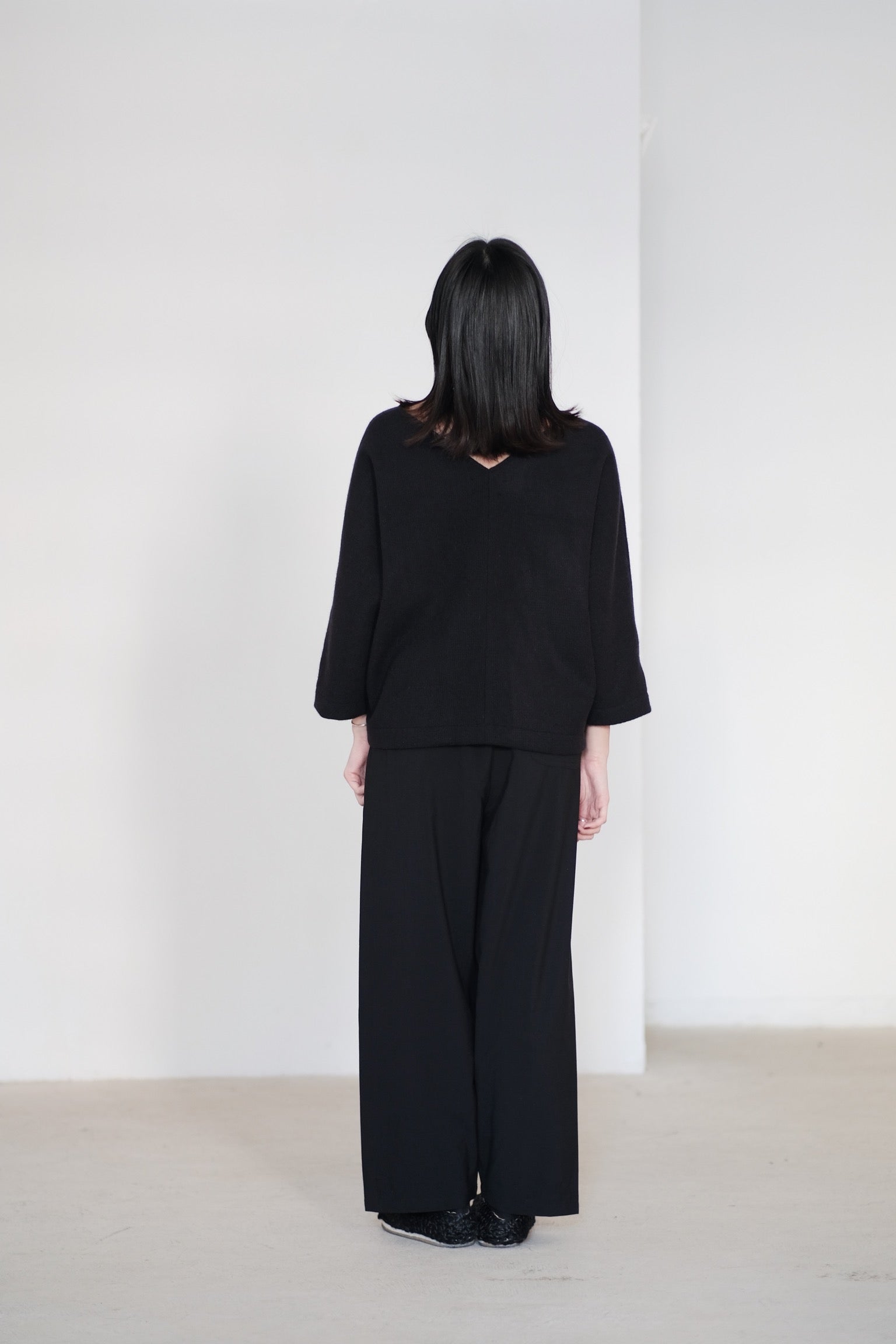 直筒型剪裁及前後V字型衣領