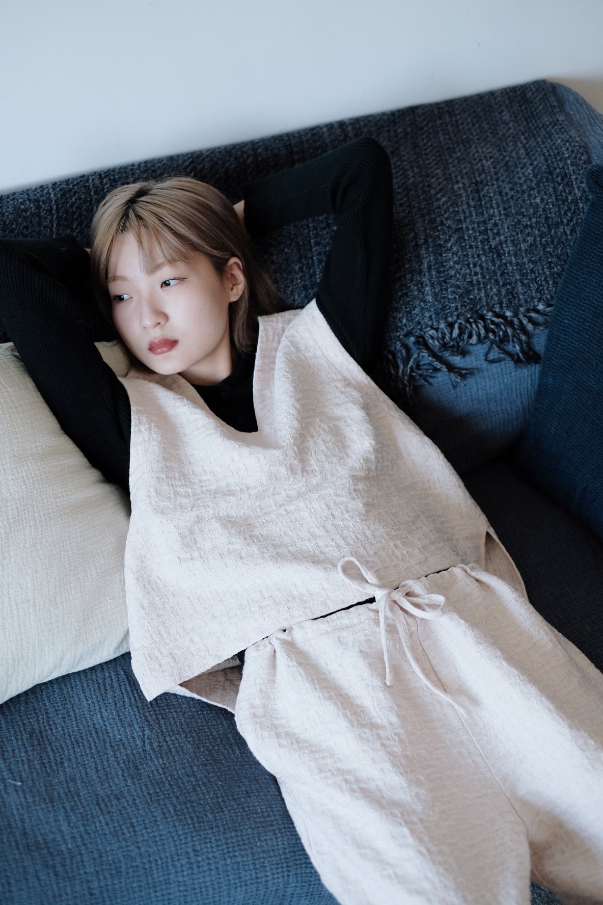 布料自帶不規則幾何形的紡織紋路