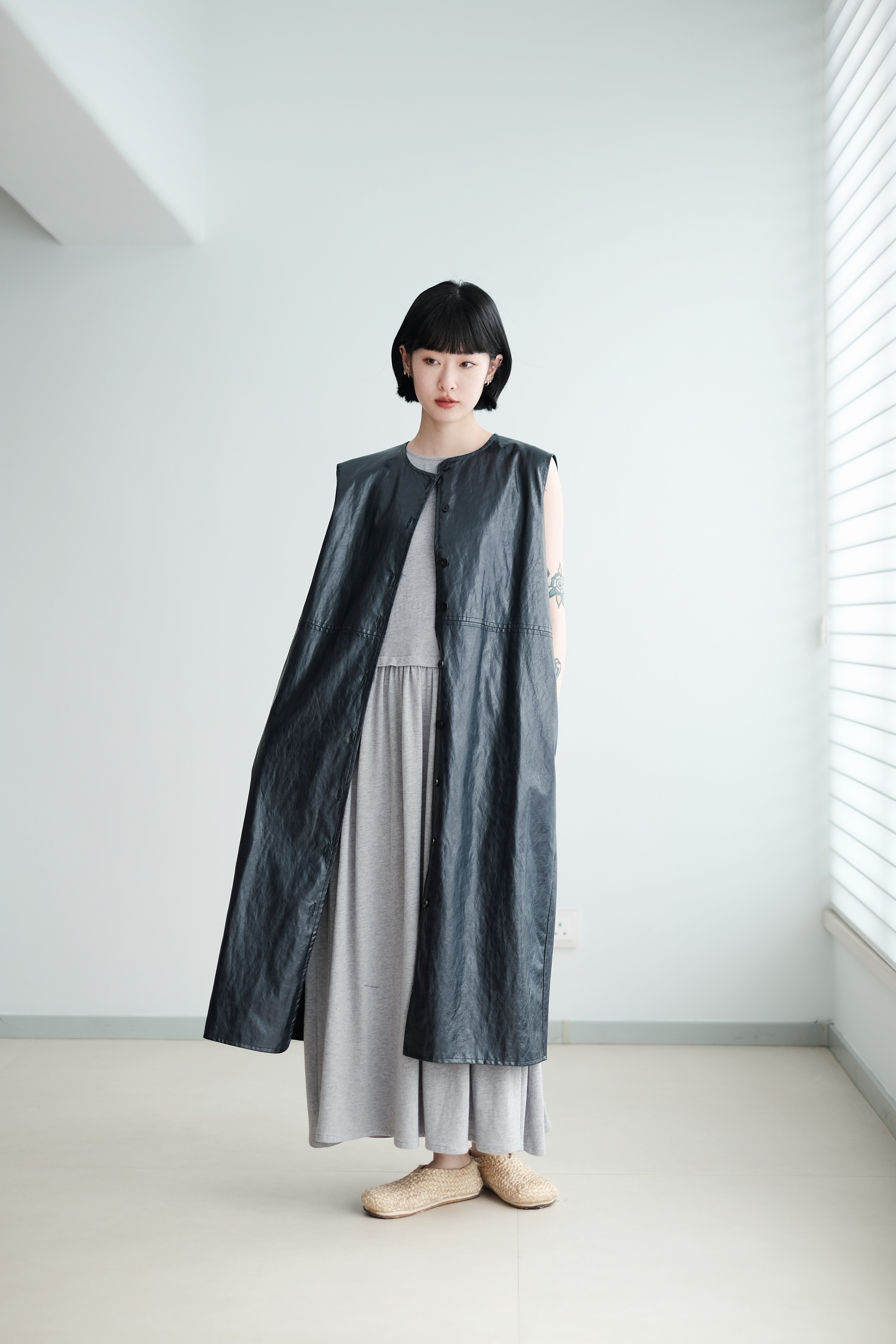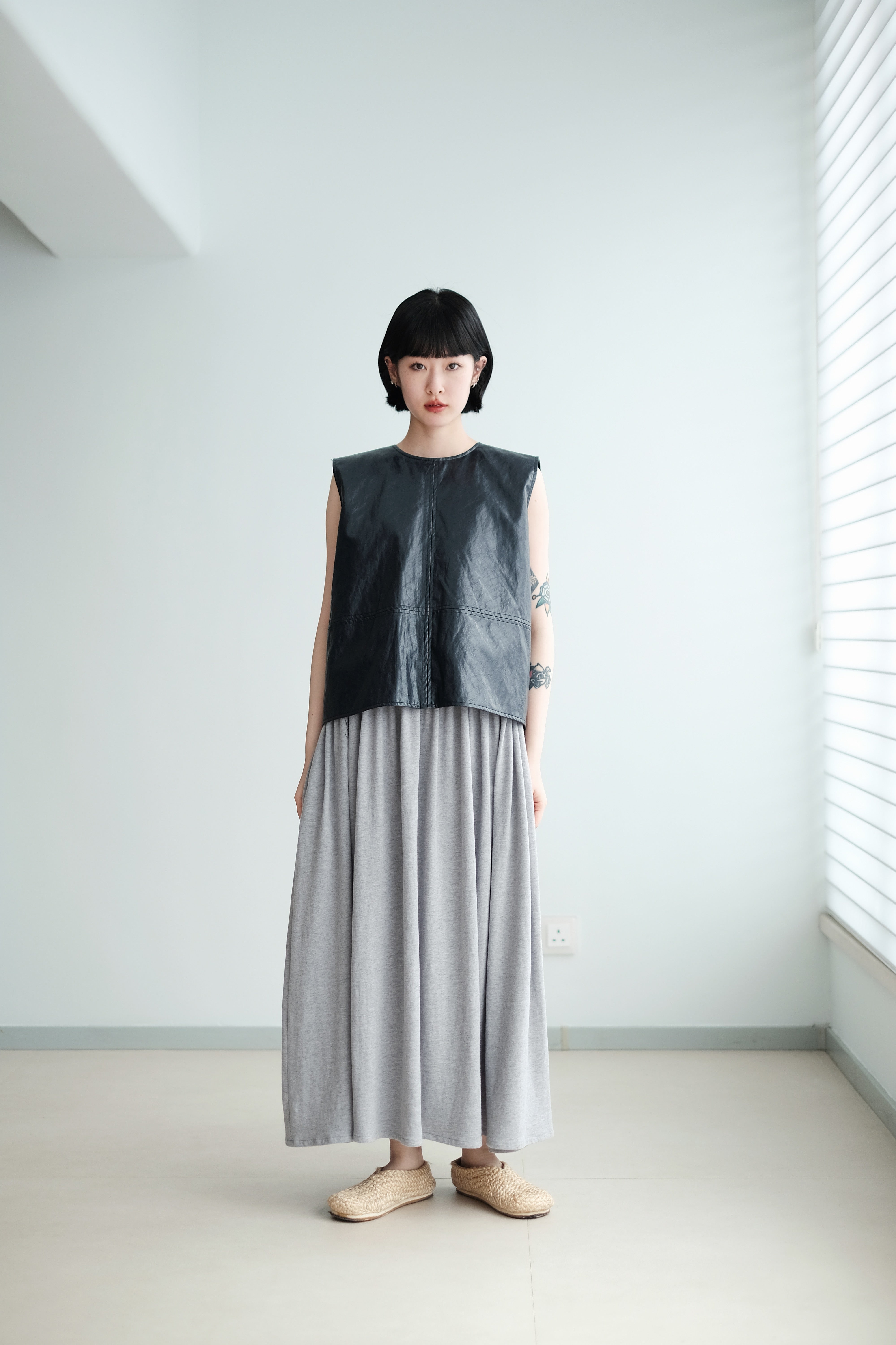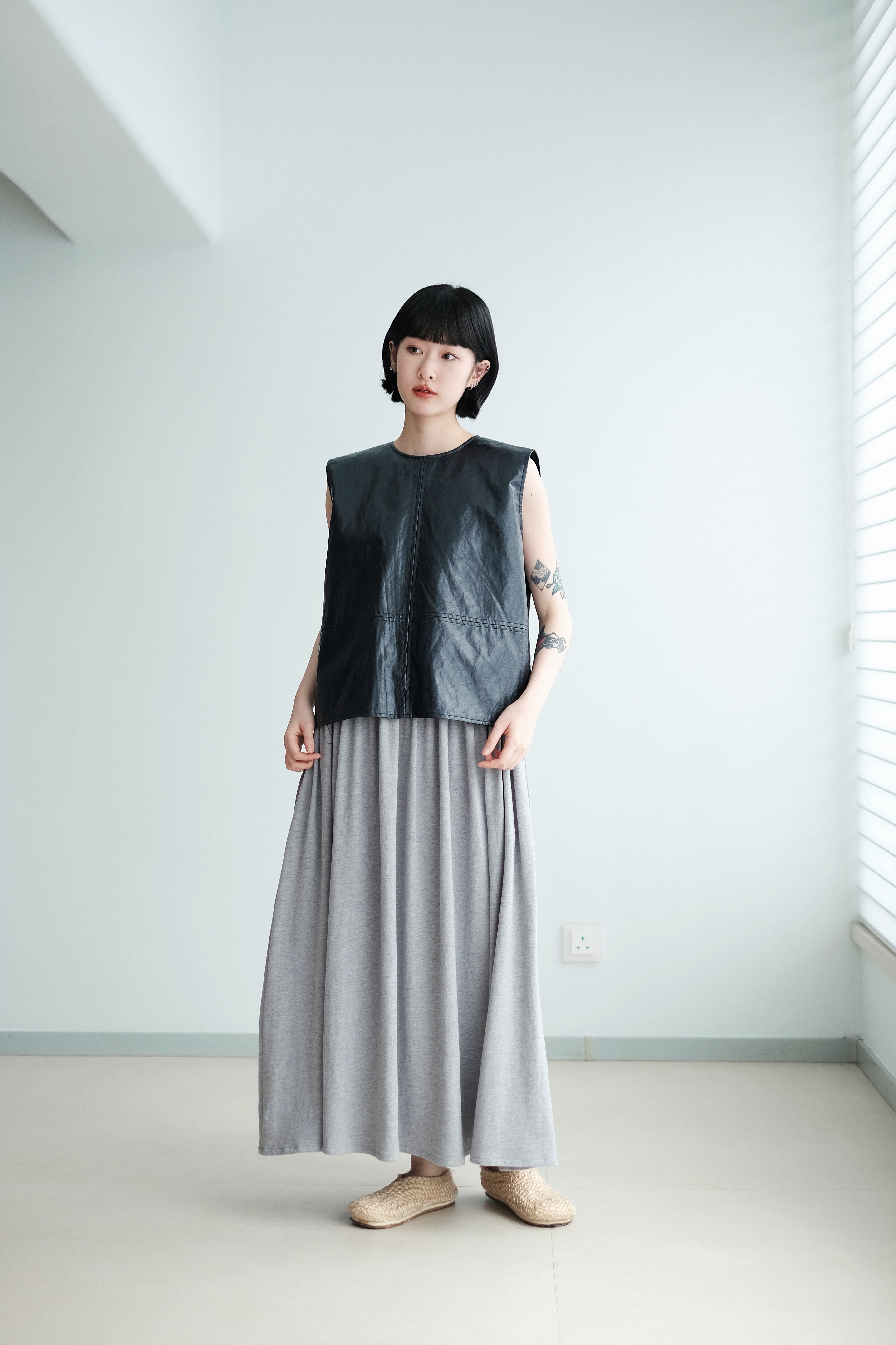 Designed with a relaxed fit, it allows ease of movement while subtly elongating the body line. Whether worn alone or layered over a long-sleeve top, it transitions effortlessly across seasons, making it a refined yet easy everyday piece.